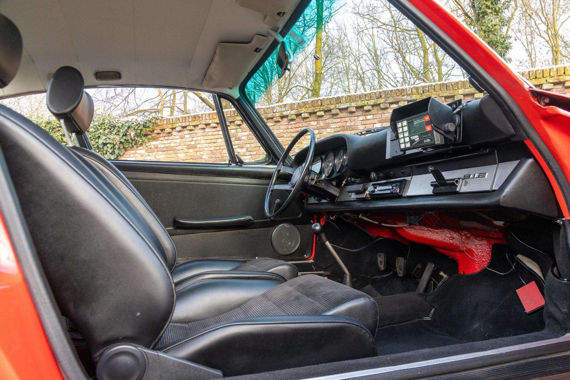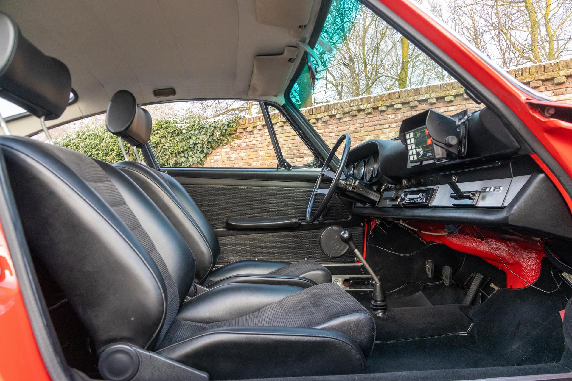 The car is presented in Polo Red, a color that complements the restrained lines of the early 911 and 912 bodywork beautifully. Combined with a black interior and sporty Recaro seats, the overall appearance reflects the era in which the car was originally configured.
