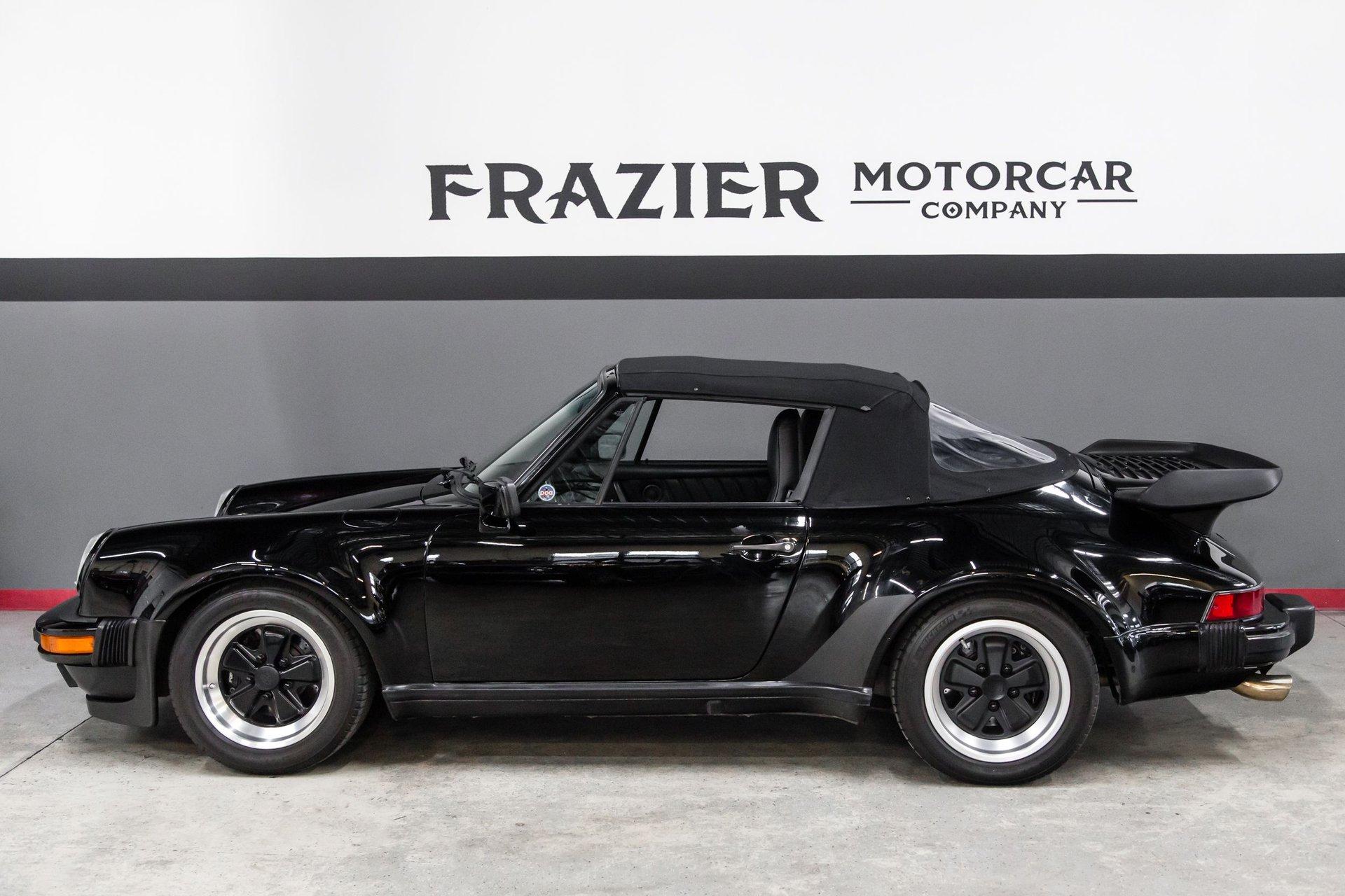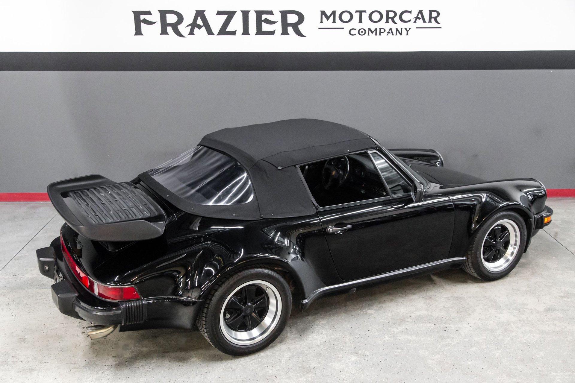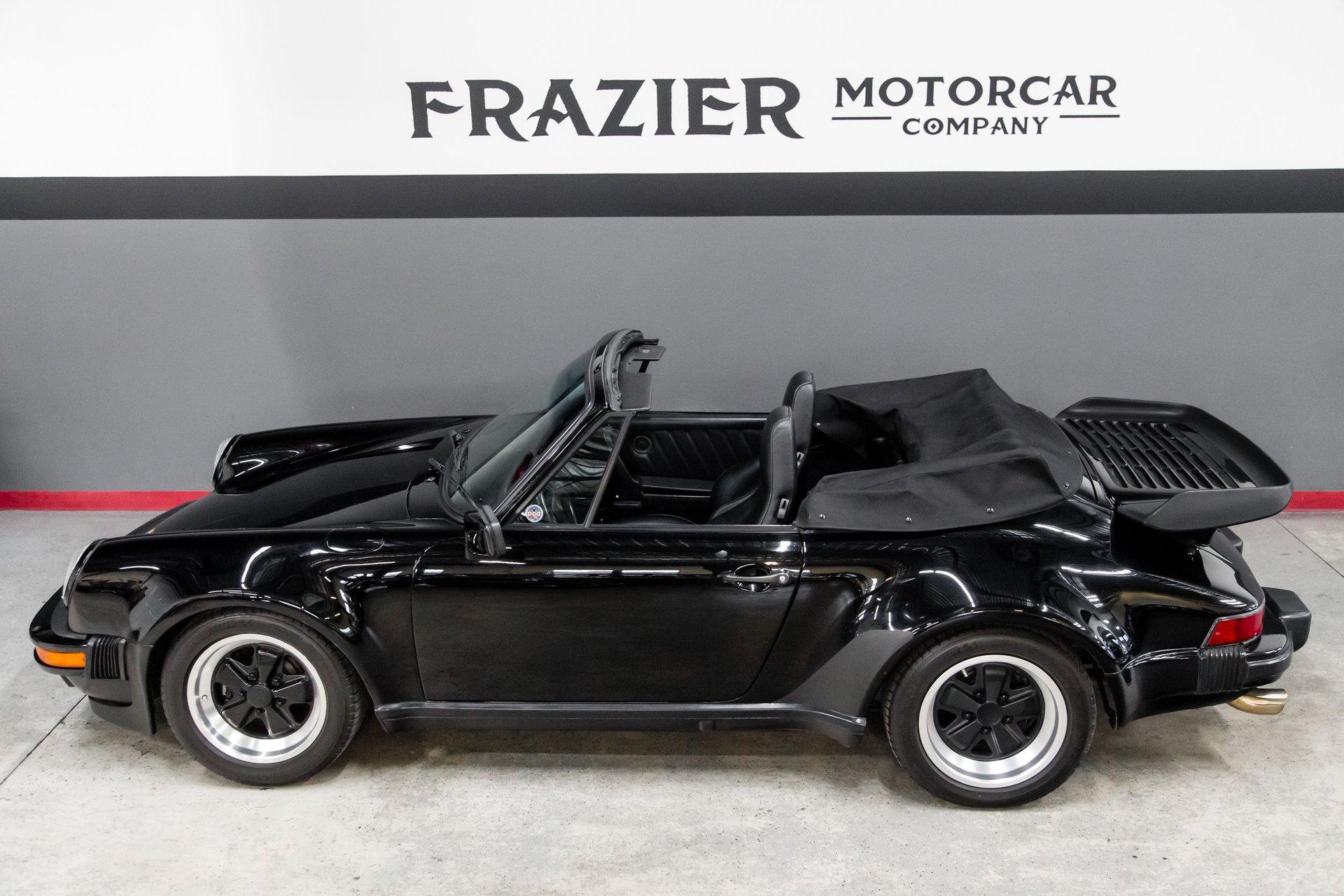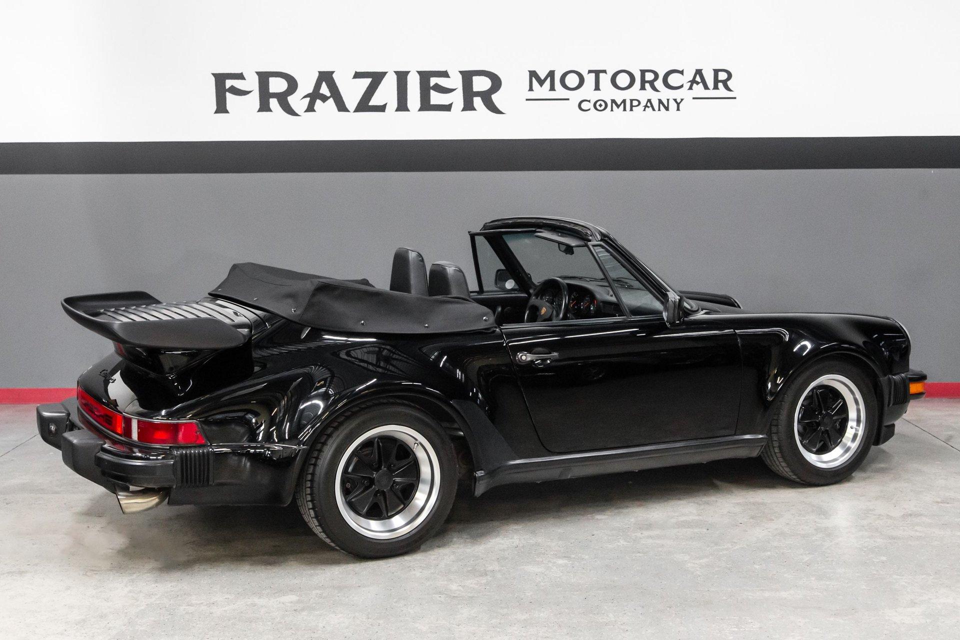 This black-on-black 1985 Porsche 911 Carrera cabriolet was optioned with the M491 “Turbo Look” package, which added front and rear spoilers as well as wider rear bodywork. Powered by a 3.2-liter flat-six paired with a 915 five-speed manual transaxle, the car is equipped with a limited-slip differential, 16″ Fuchs-style wheels, power-adjustable sport seats, cruise control, and air conditioning, and has been fitted with Bilstein dampers, a Bluetooth-capable Continental head unit, and an aftermarket exhaust system The M491 package included Turbo-specification brakes, anti-roll bars, trailing arms, and torsion bars, and Bilstein dampers have been added. An engine-out service was completed approximately 1k miles ago, at which time the transmission is said to have been rebuilt by Porsche expert Wicky Laurie.. An aftermarket exhaust system is fitted. Additional work just completed was the upgrade of Griffith's air conditioning, new leather on seats and dash pad, suspension, and brake work, as well as fuel lines. The Carfax report shows no accidents or other reported damage since its first entry in November 1989. The paint is spectacular on the car as reflected in the pictures posted. The car recently received a new, correct soft top. Records are included in the thick file of service receipts. Review the 100-plus pictures posted for your discernment.If the car holds interest, contact Jeff Frazier at 615-971-4409 or email Jeff@JPFRAZIER.com The car is located in our indoor facility 25 miles east of downtown Nashville Tn. Independent inspections by a marque specialist are welcomed and encouraged. This and other European Collectibles may be reviewed at WWW.JPFRAZIER.com E-DISCLAIMER: This vehicle description is accurate to the best of our knowledge at the time posted All information provided is true to our best efforts, but not guaranteed, and we assume no liability for any omissions or errors. We do sell classic cars in a variety of conditions, and may not see every imperfection or issue per vehicle. Our cars are sold as-is and without warranty. Price does not include state, city, or county taxes, title, license, registration, or shipping. Independent inspections by marque specialists are welcomed and encouraged as all sales are final