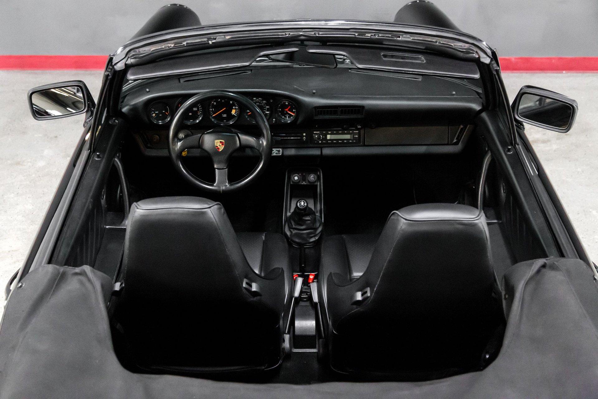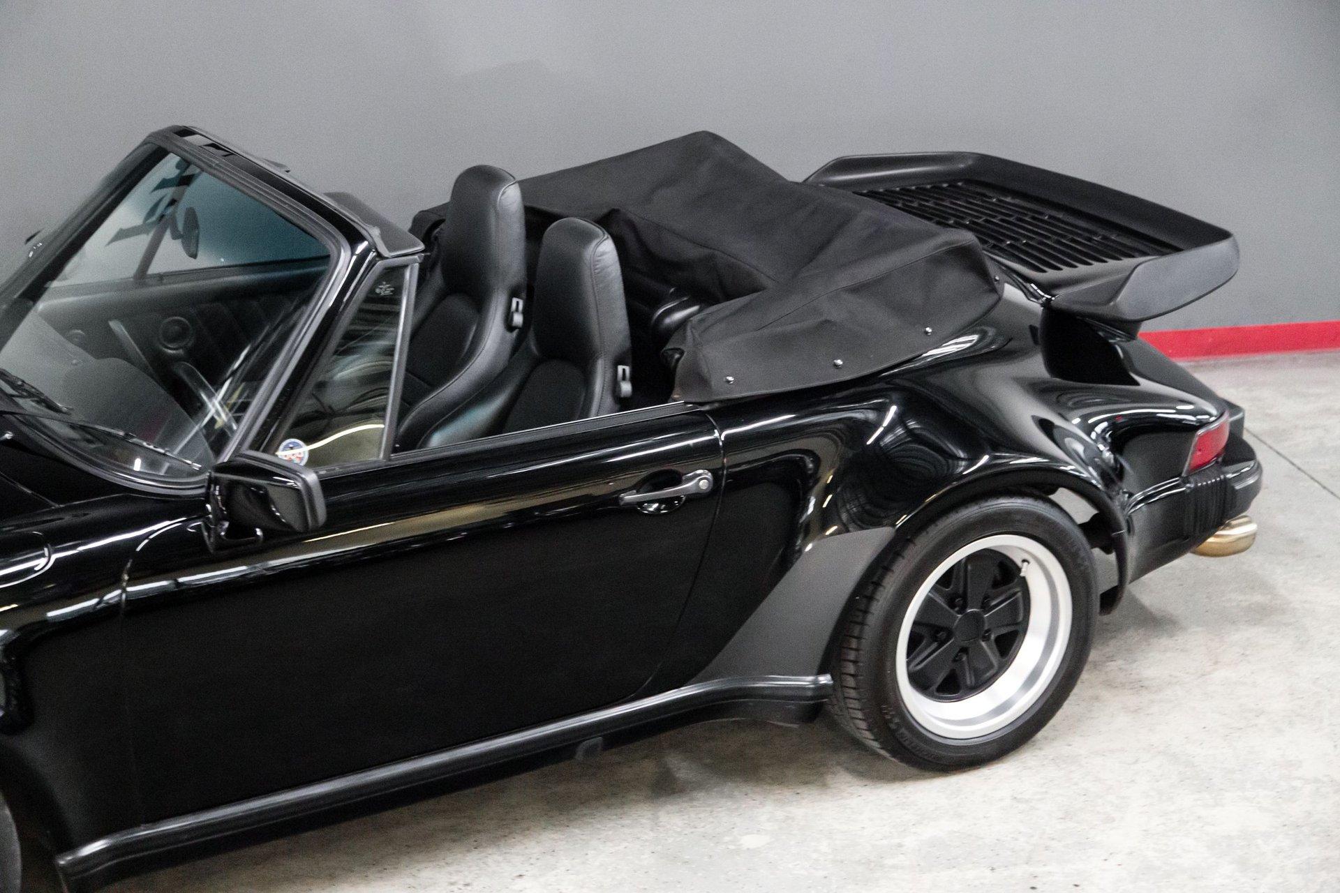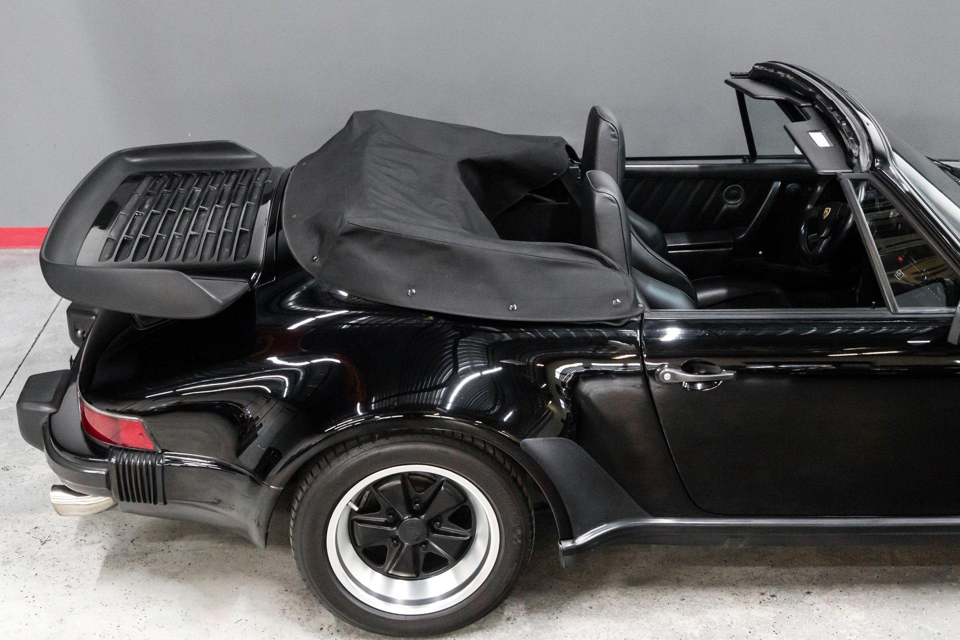 This black-on-black 1985 Porsche 911 Carrera cabriolet was optioned with the M491 “Turbo Look” package, which added front and rear spoilers as well as wider rear bodywork. Powered by a 3.2-liter flat-six paired with a 915 five-speed manual transaxle, the car is equipped with a limited-slip differential, 16″ Fuchs-style wheels, power-adjustable sport seats, cruise control, and air conditioning, and has been fitted with Bilstein dampers, a Bluetooth-capable Continental head unit, and an aftermarket exhaust system The M491 package included Turbo-specification brakes, anti-roll bars, trailing arms, and torsion bars, and Bilstein dampers have been added. An engine-out service was completed approximately 1k miles ago, at which time the transmission is said to have been rebuilt by Porsche expert Wicky Laurie.. An aftermarket exhaust system is fitted. Additional work just completed was the upgrade of Griffith's air conditioning, new leather on seats and dash pad, suspension, and brake work, as well as fuel lines. The Carfax report shows no accidents or other reported damage since its first entry in November 1989. The paint is spectacular on the car as reflected in the pictures posted. The car recently received a new, correct soft top. Records are included in the thick file of service receipts. Review the 100-plus pictures posted for your discernment.If the car holds interest, contact Jeff Frazier at 615-971-4409 or email Jeff@JPFRAZIER.com The car is located in our indoor facility 25 miles east of downtown Nashville Tn. Independent inspections by a marque specialist are welcomed and encouraged. This and other European Collectibles may be reviewed at WWW.JPFRAZIER.com E-DISCLAIMER: This vehicle description is accurate to the best of our knowledge at the time posted All information provided is true to our best efforts, but not guaranteed, and we assume no liability for any omissions or errors. We do sell classic cars in a variety of conditions, and may not see every imperfection or issue per vehicle. Our cars are sold as-is and without warranty. Price does not include state, city, or county taxes, title, license, registration, or shipping. Independent inspections by marque specialists are welcomed and encouraged as all sales are final