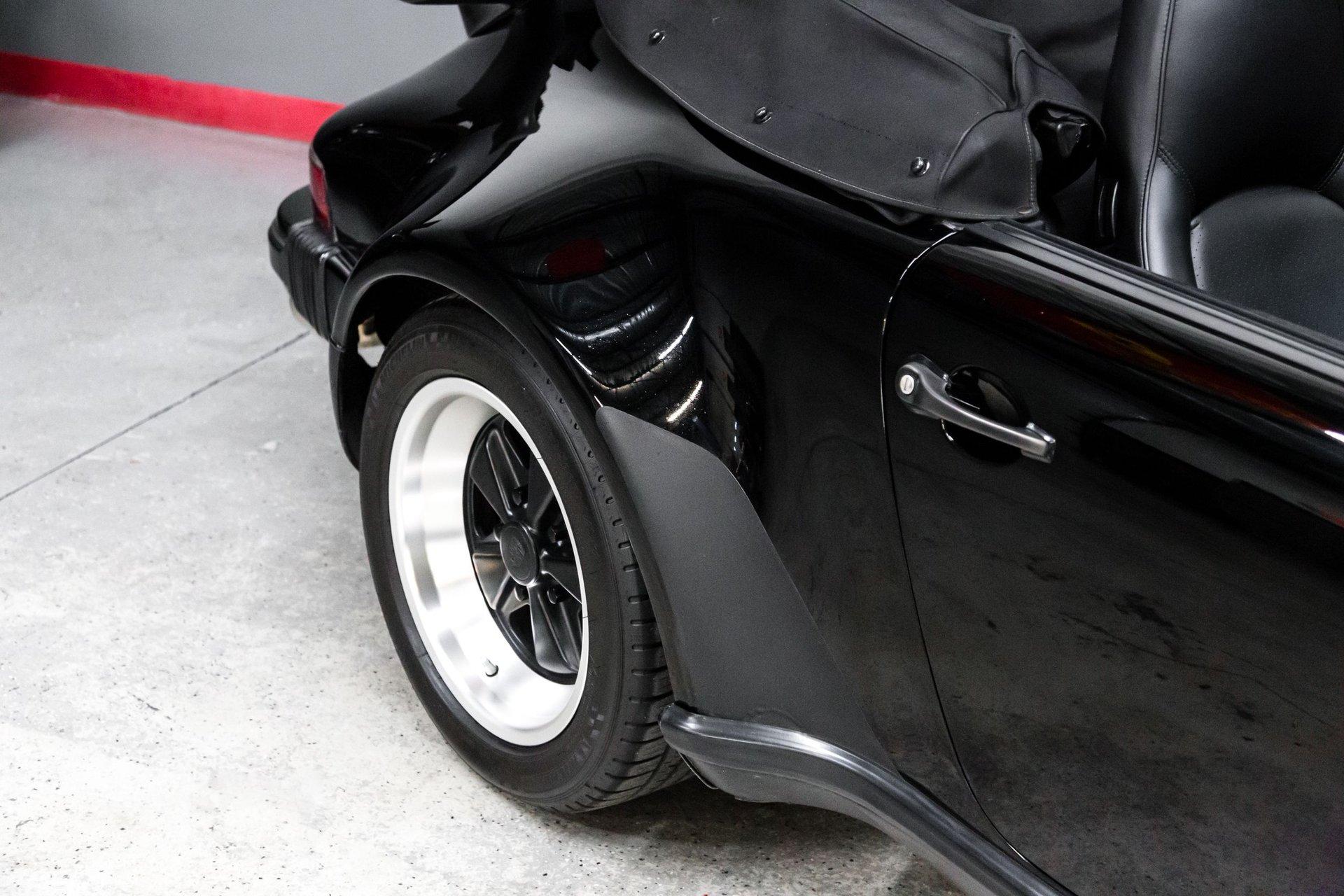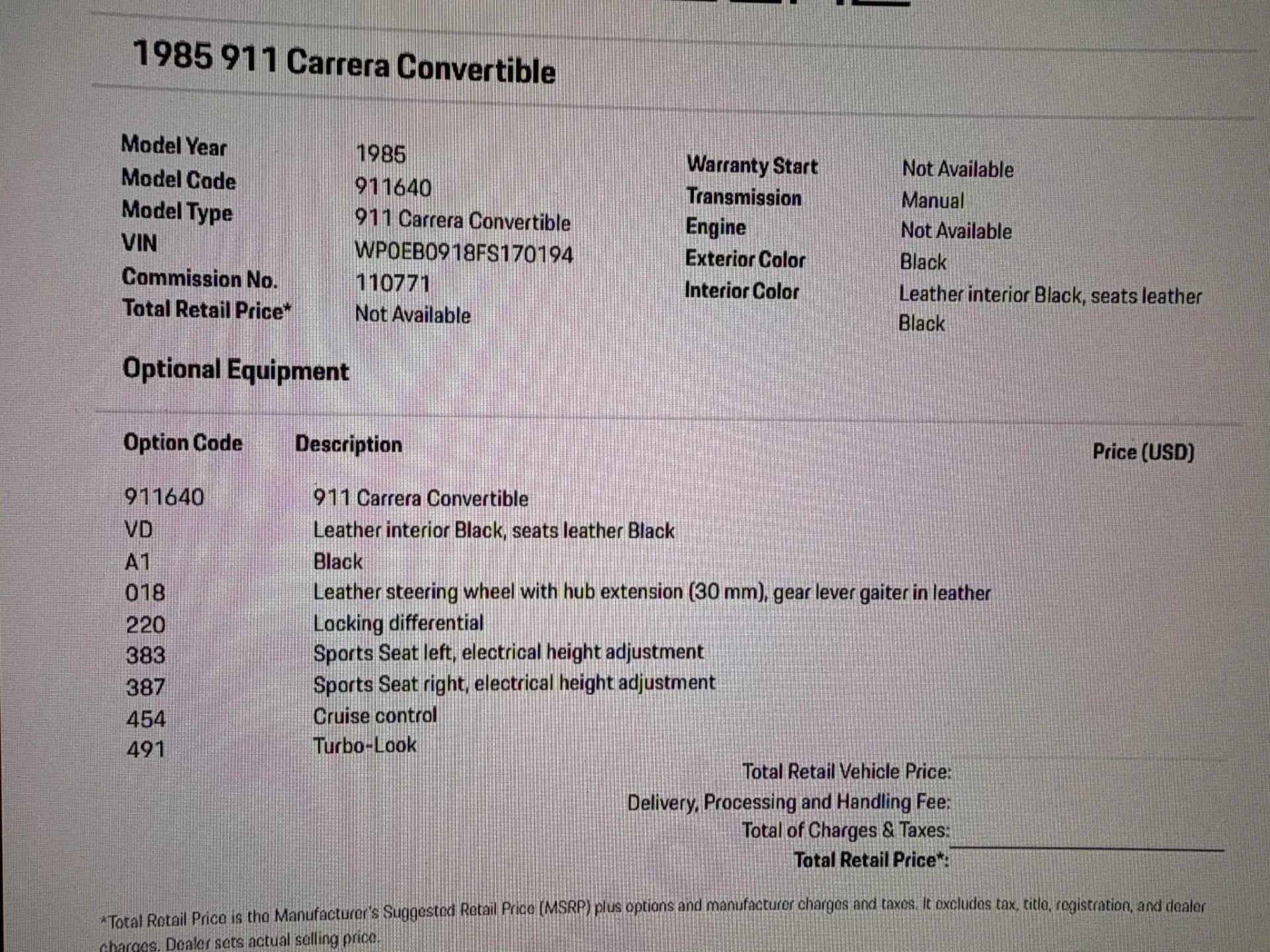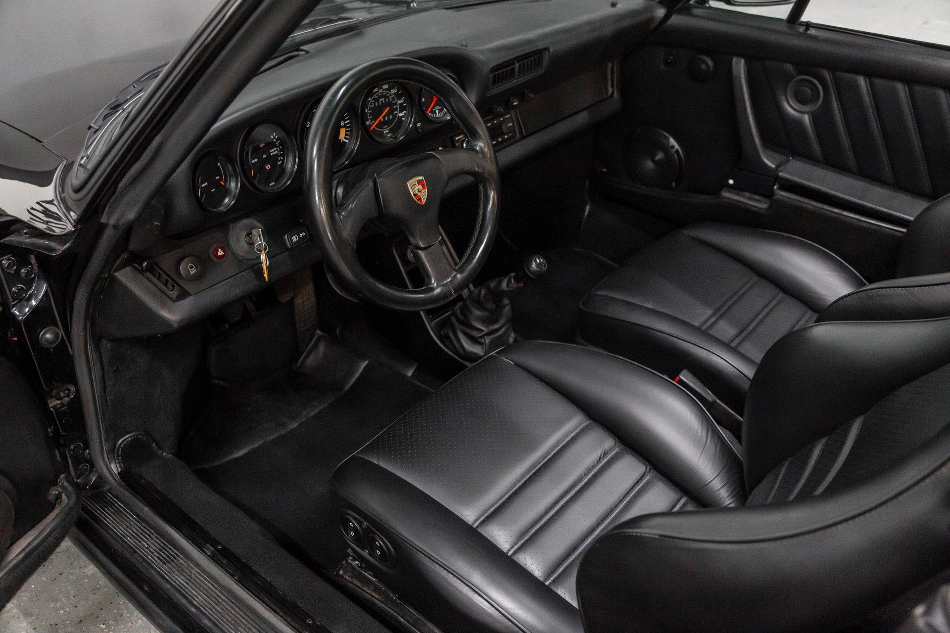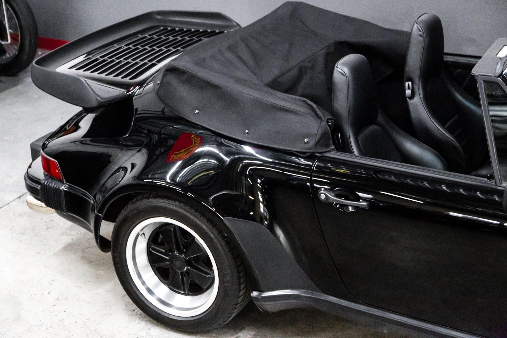 This black-on-black 1985 Porsche 911 Carrera cabriolet was optioned with the M491 “Turbo Look” package, which added front and rear spoilers as well as wider rear bodywork. Powered by a 3.2-liter flat-six paired with a 915 five-speed manual transaxle, the car is equipped with a limited-slip differential, 16″ Fuchs-style wheels, power-adjustable sport seats, cruise control, and air conditioning, and has been fitted with Bilstein dampers, a Bluetooth-capable Continental head unit, and an aftermarket exhaust system The M491 package included Turbo-specification brakes, anti-roll bars, trailing arms, and torsion bars, and Bilstein dampers have been added. An engine-out service was completed approximately 1k miles ago, at which time the transmission is said to have been rebuilt by Porsche expert Wicky Laurie.. An aftermarket exhaust system is fitted. Additional work just completed was the upgrade of Griffith's air conditioning, new leather on seats and dash pad, suspension, and brake work, as well as fuel lines. The Carfax report shows no accidents or other reported damage since its first entry in November 1989. The paint is spectacular on the car as reflected in the pictures posted. The car recently received a new, correct soft top. Records are included in the thick file of service receipts. Review the 100-plus pictures posted for your discernment.If the car holds interest, contact Jeff Frazier at 615-971-4409 or email Jeff@JPFRAZIER.com The car is located in our indoor facility 25 miles east of downtown Nashville Tn. Independent inspections by a marque specialist are welcomed and encouraged. This and other European Collectibles may be reviewed at WWW.JPFRAZIER.com E-DISCLAIMER: This vehicle description is accurate to the best of our knowledge at the time posted All information provided is true to our best efforts, but not guaranteed, and we assume no liability for any omissions or errors. We do sell classic cars in a variety of conditions, and may not see every imperfection or issue per vehicle. Our cars are sold as-is and without warranty. Price does not include state, city, or county taxes, title, license, registration, or shipping. Independent inspections by marque specialists are welcomed and encouraged as all sales are final
