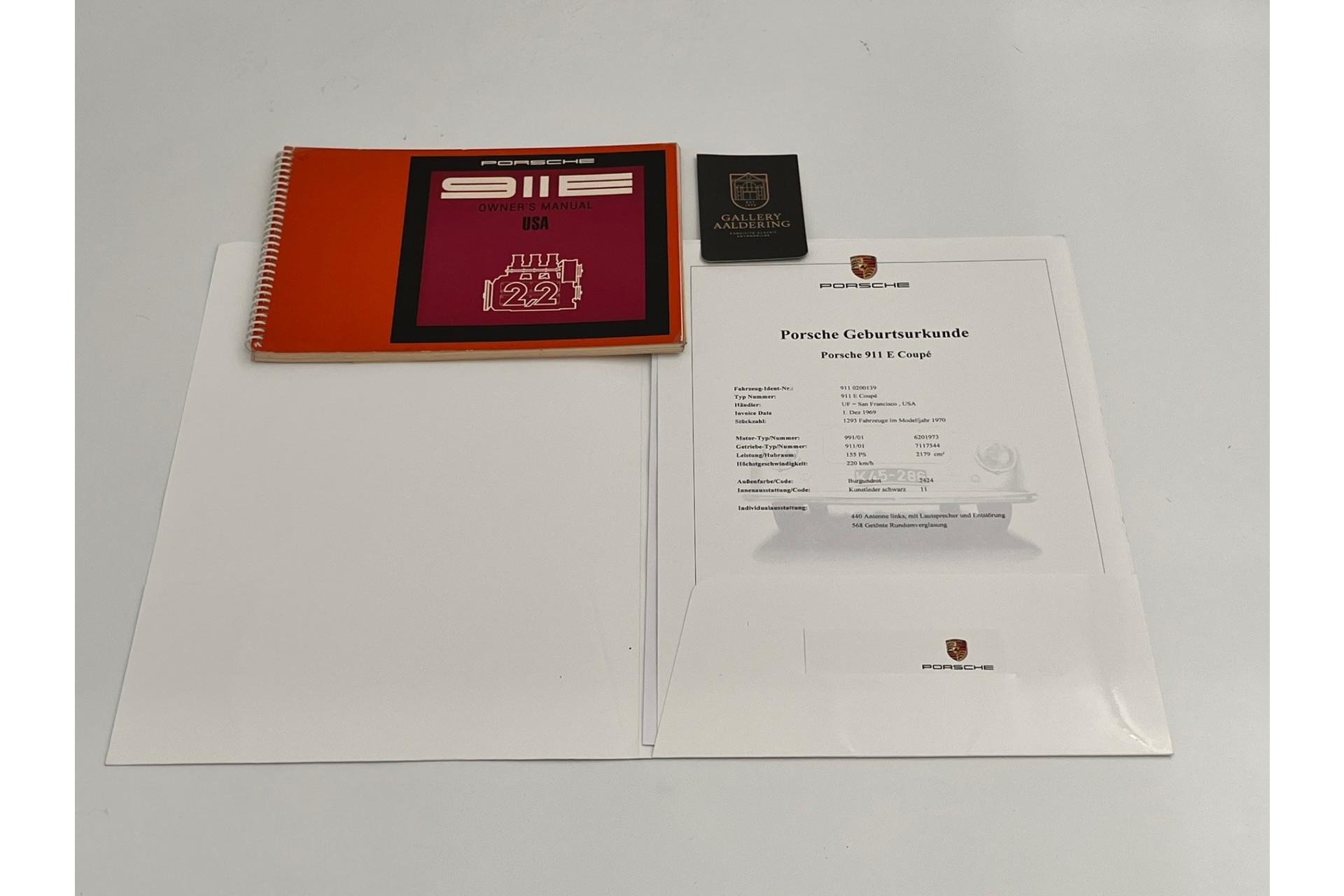 This matching-numbers 911E underwent a thorough restoration in the 1990s. Every component was carefully rebuilt, and the engine was overhauled by a renowned Porsche specialist. The mechanical condition remains solid, backed by over 30 years of invoices and paperwork, including the official “Porsche Geburtsurkunde.” The documentation alone is impressive.
