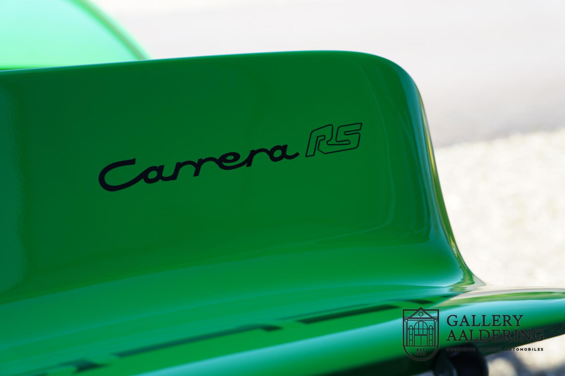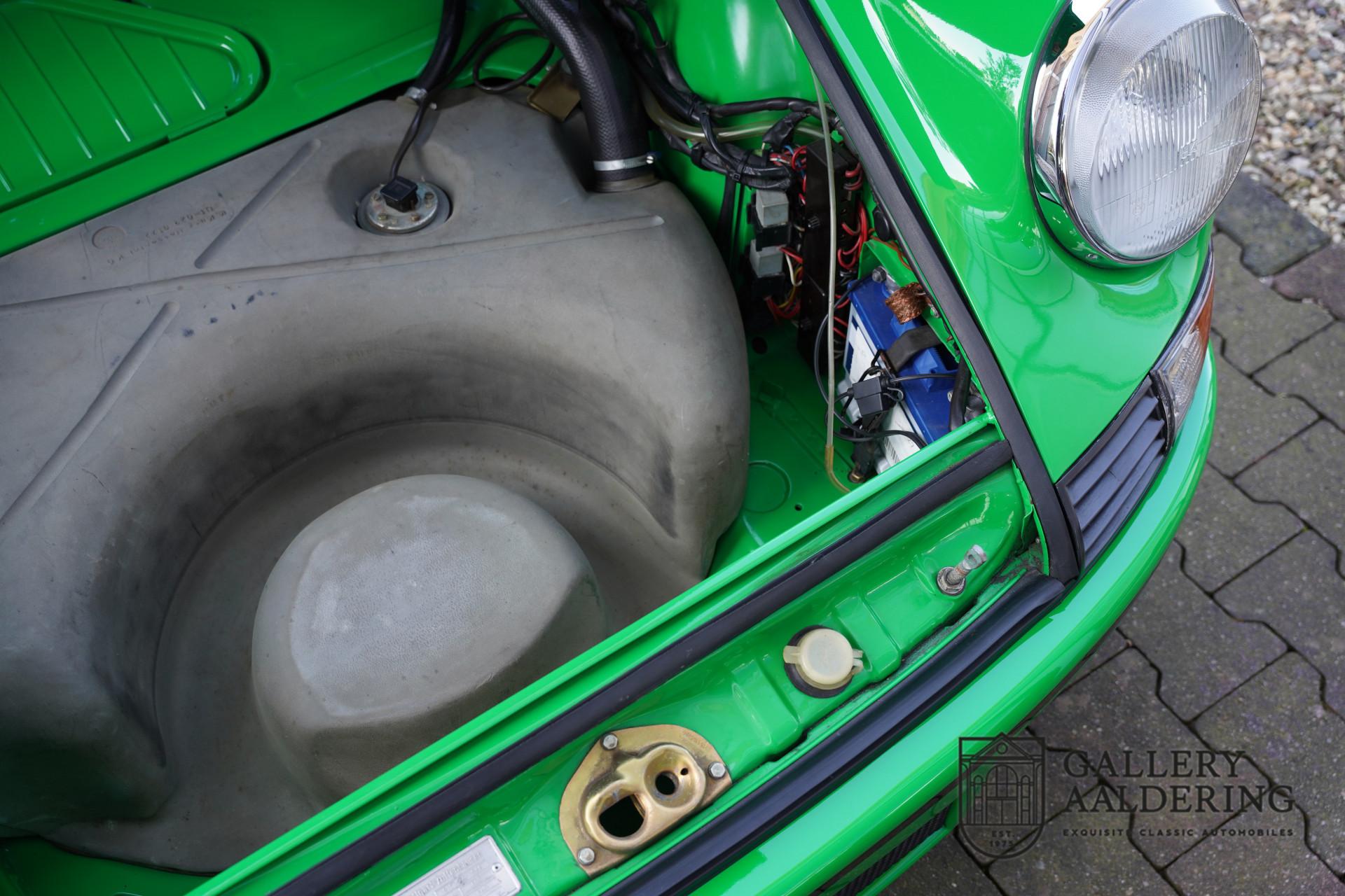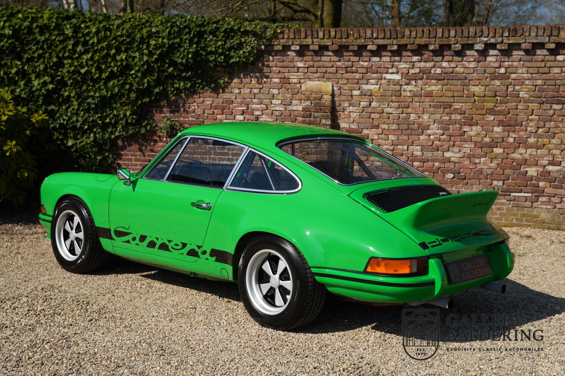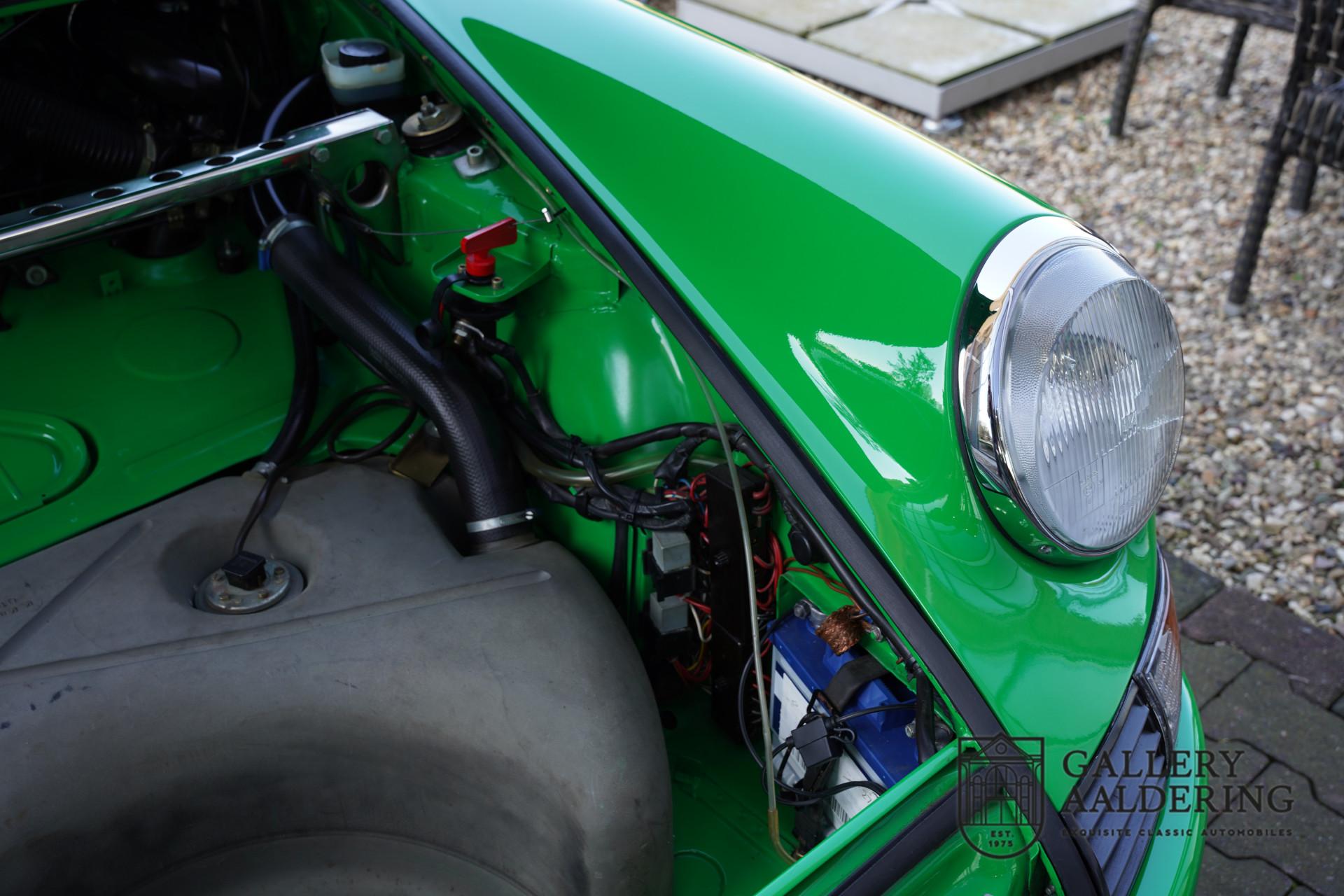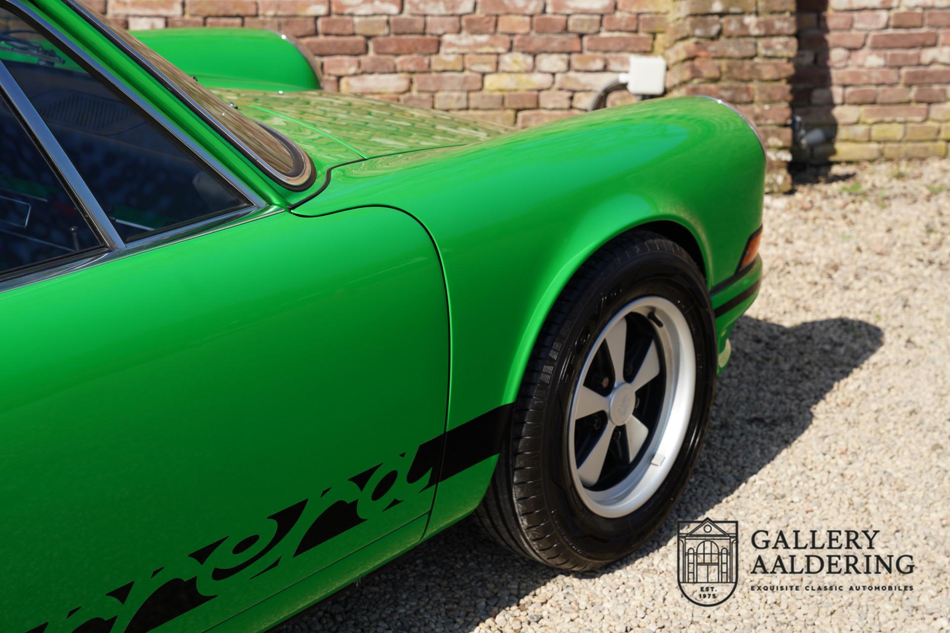 The body, the technology, the minimalist interior: everything looks in concours condition and has been restored down to the smallest details. A photo report of various photo folders size shows every step of the restoration process and makes it clear that no expense has been spared to create a unique 'RS recreation'. The appearance is phenomenal, with the bright green color finishing it off completely.
