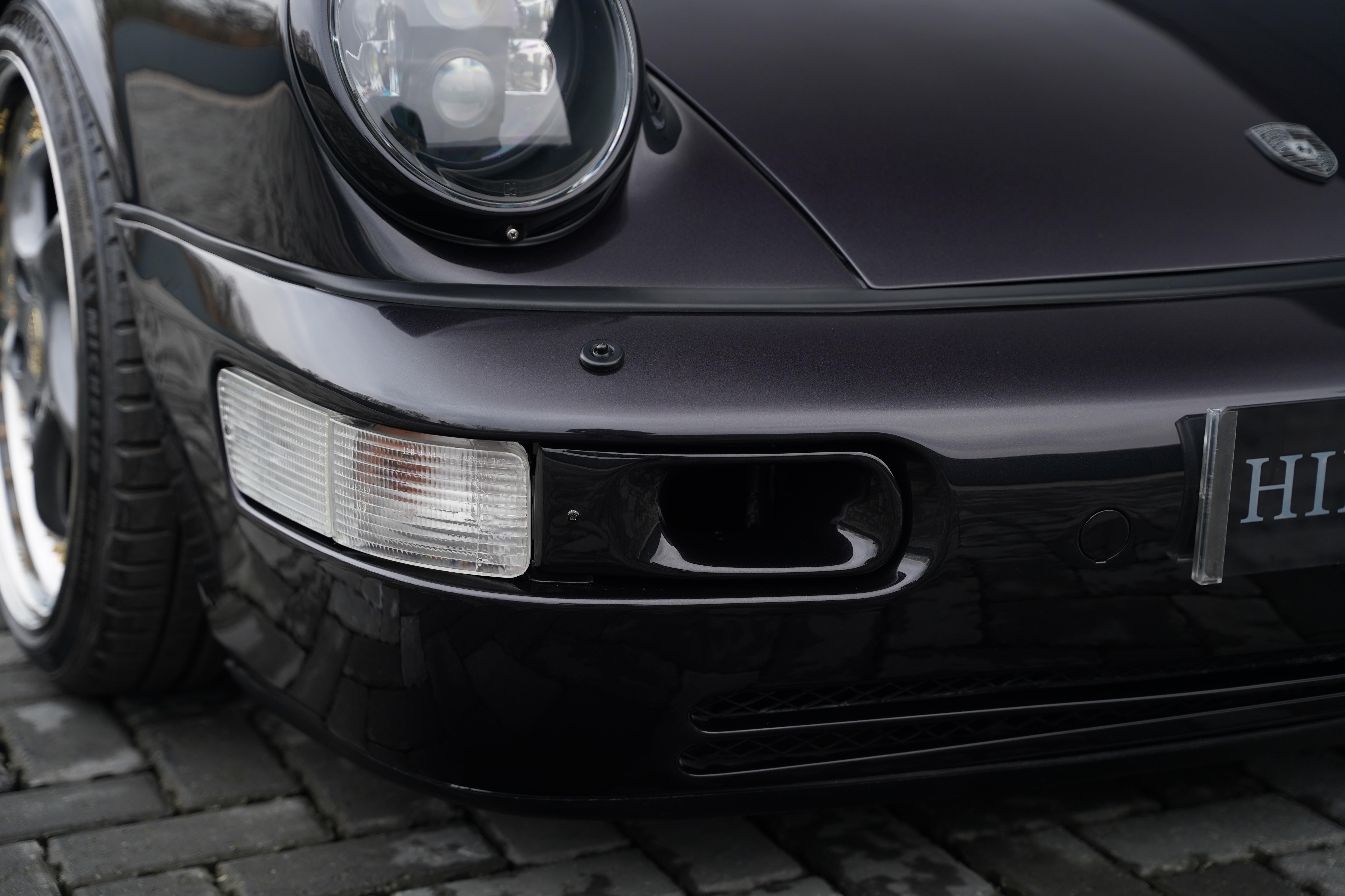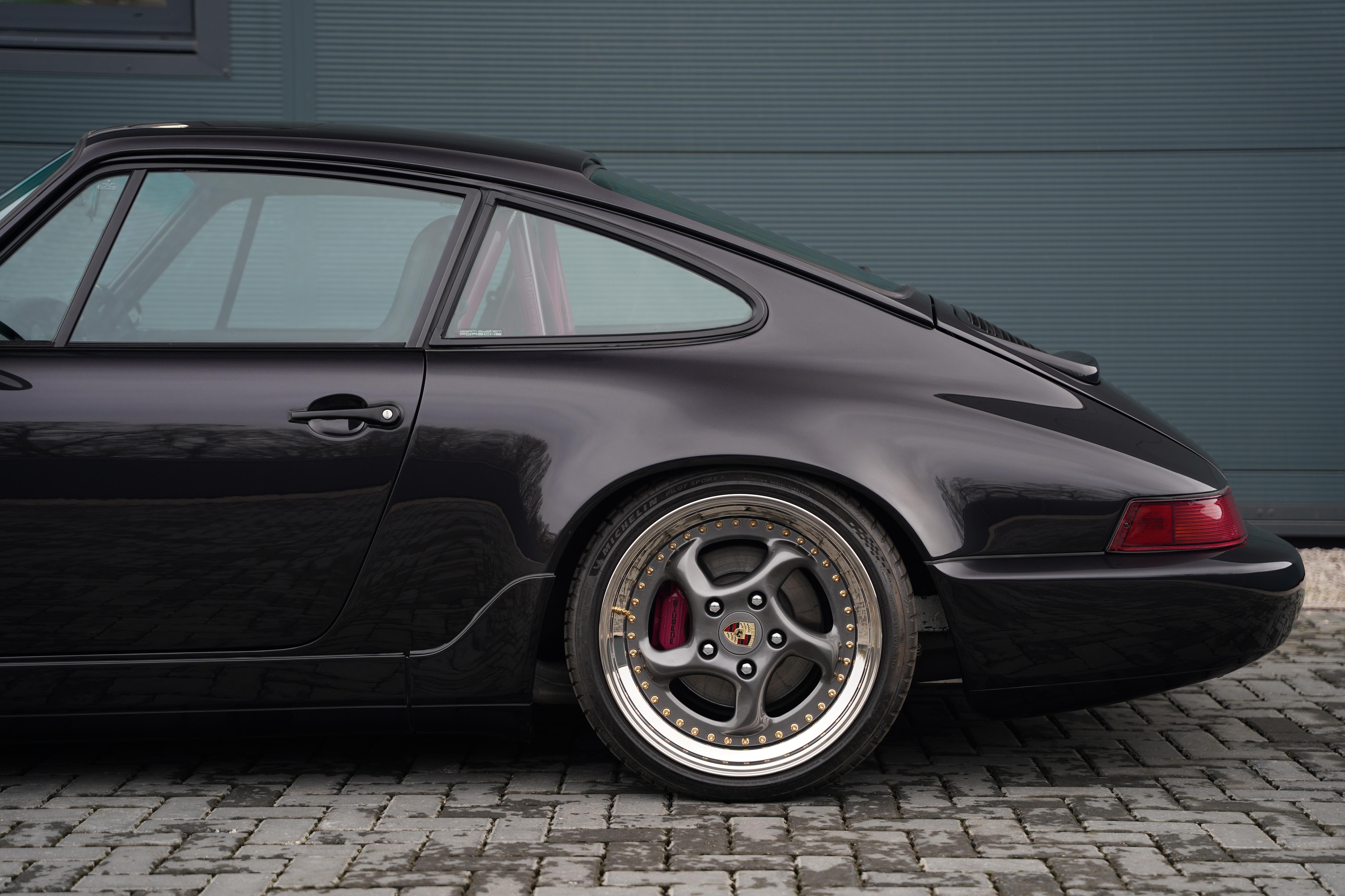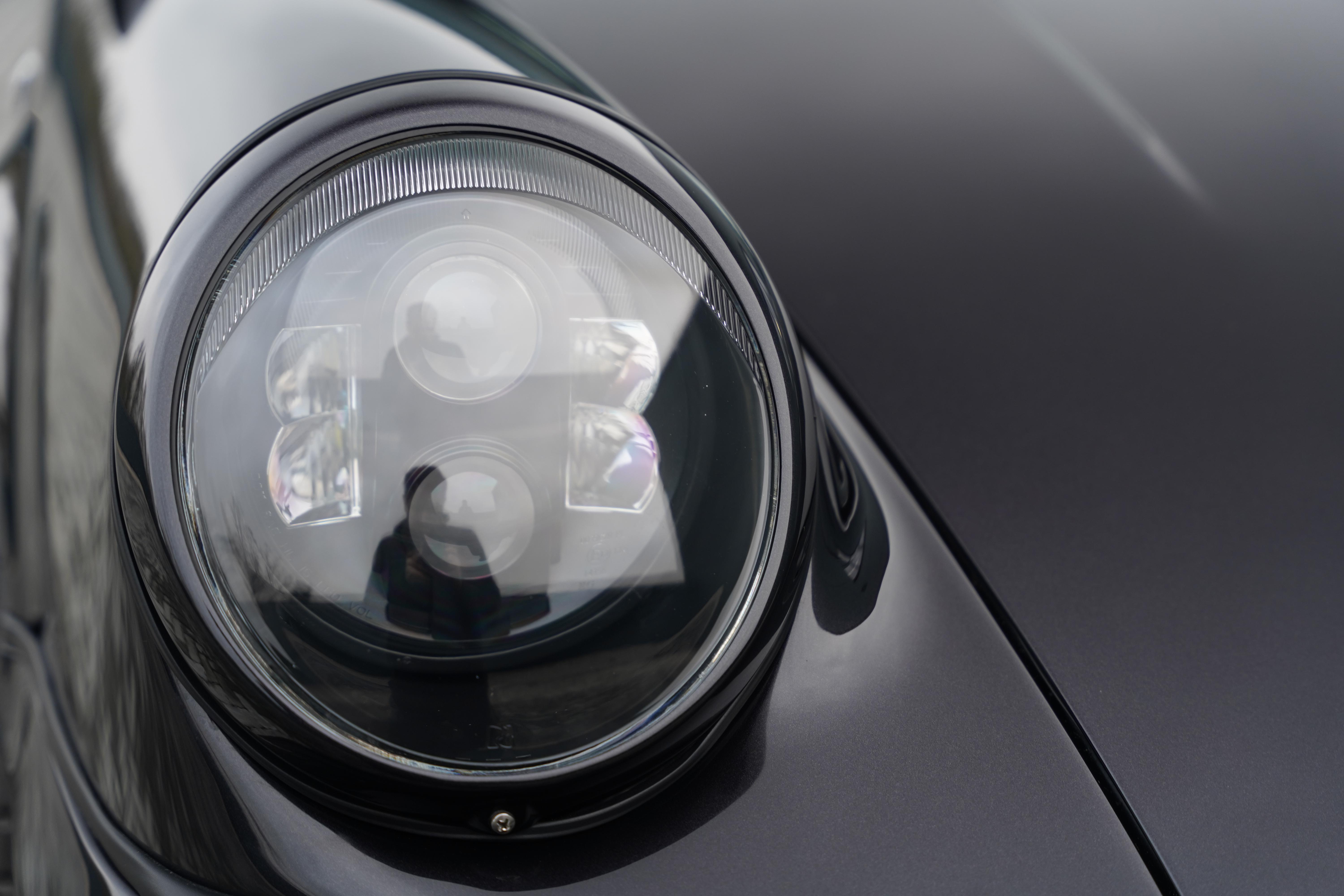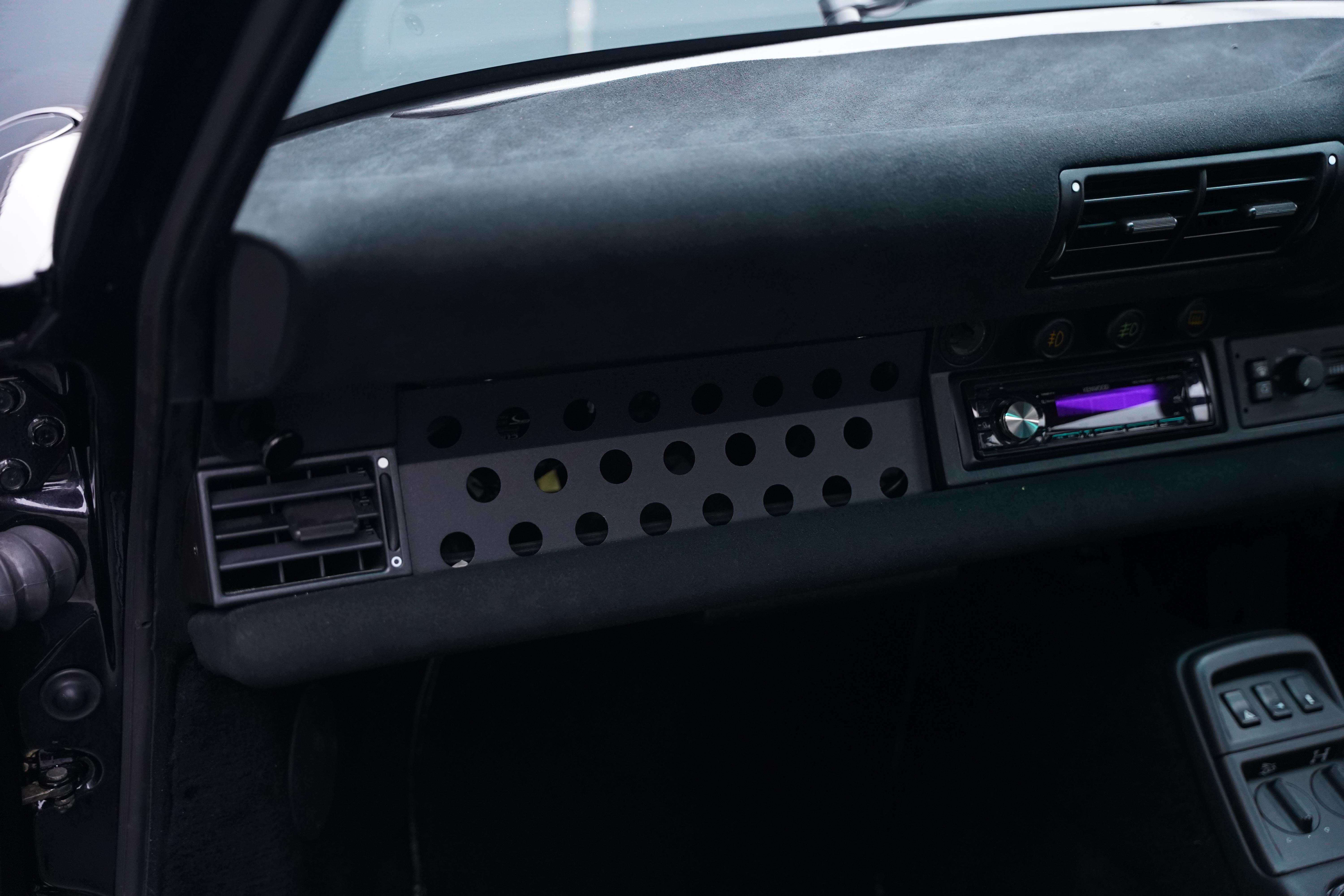 Hilton & Moss are pleased to present this fantastic example, first registered in April 1990. This 964 is fresh from a full external respray by the Hilton & Moss team. Although a fine example already, the previous keeper operated with a ‘no expense spared’ attitude and wanted to ensure this 911 looked better than when it left the factory. The client commissioned a complete ‘panel off’ respray correcting any previous works that had been completed over the last 35 years of the car’s life. Following on from the variety of high end restomods already completed on the vehicle it was decided that the car would be finished in the premium colour of Porsche Basalt Black, a modern colour that carries real depth with an elegant metallic fleck.