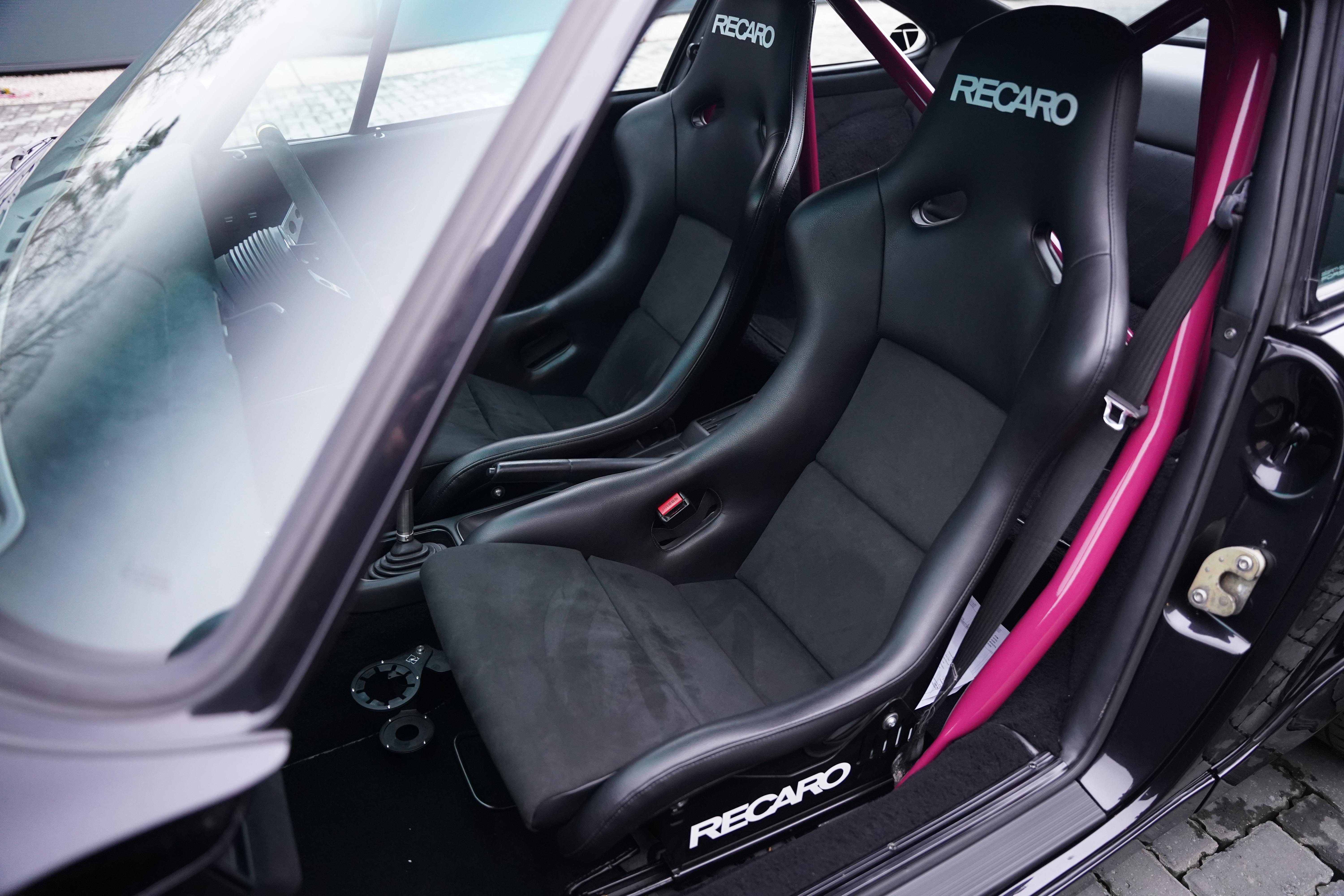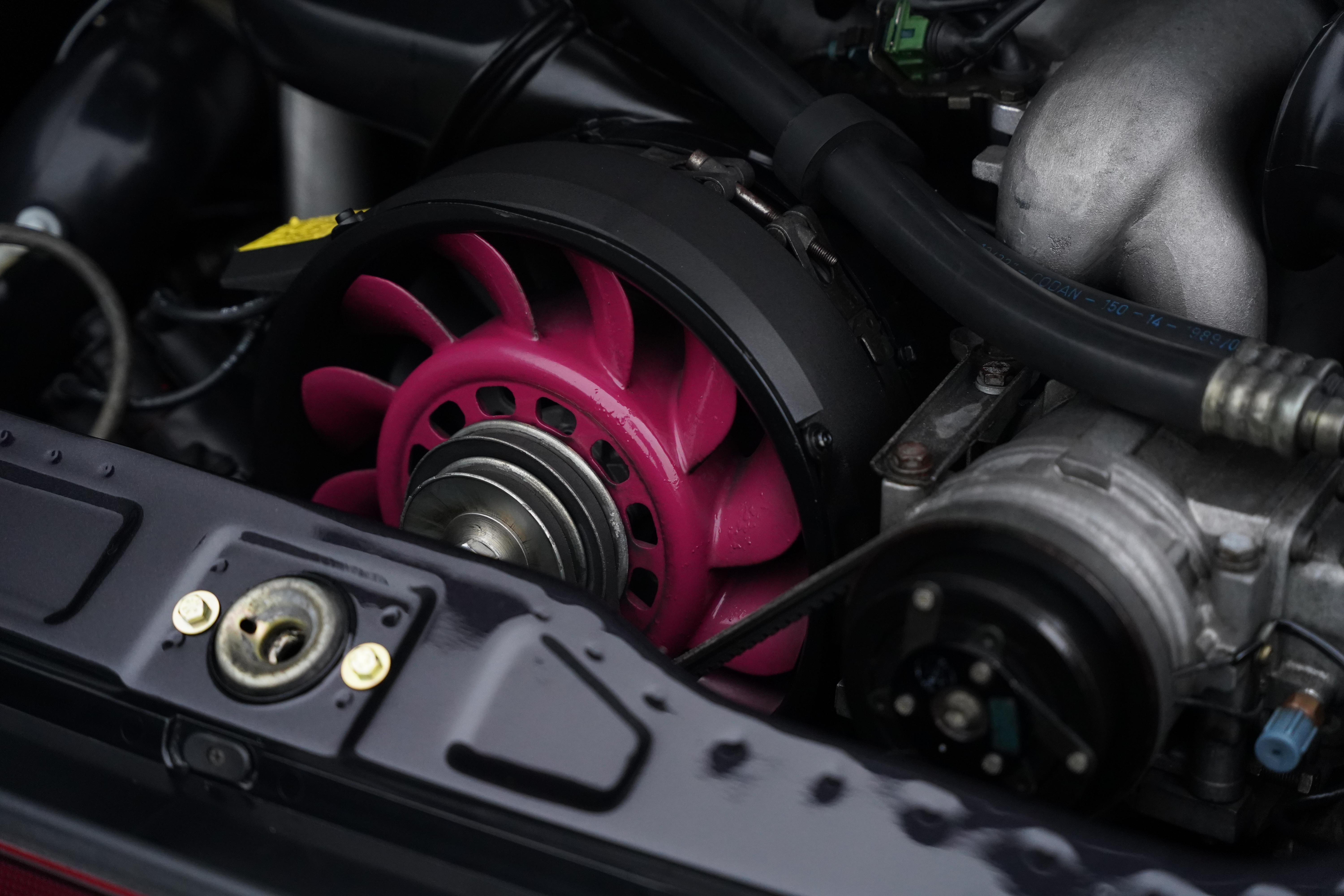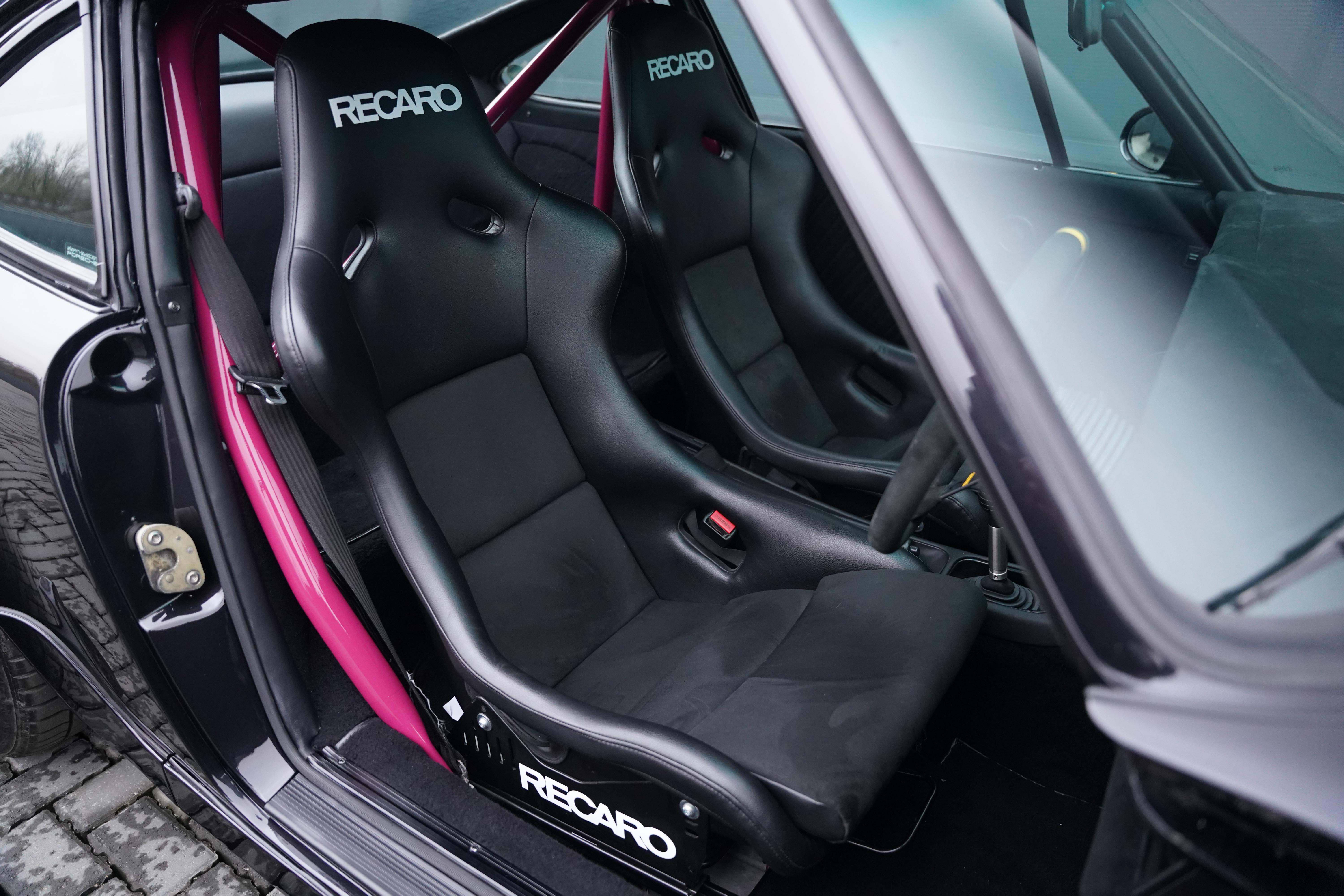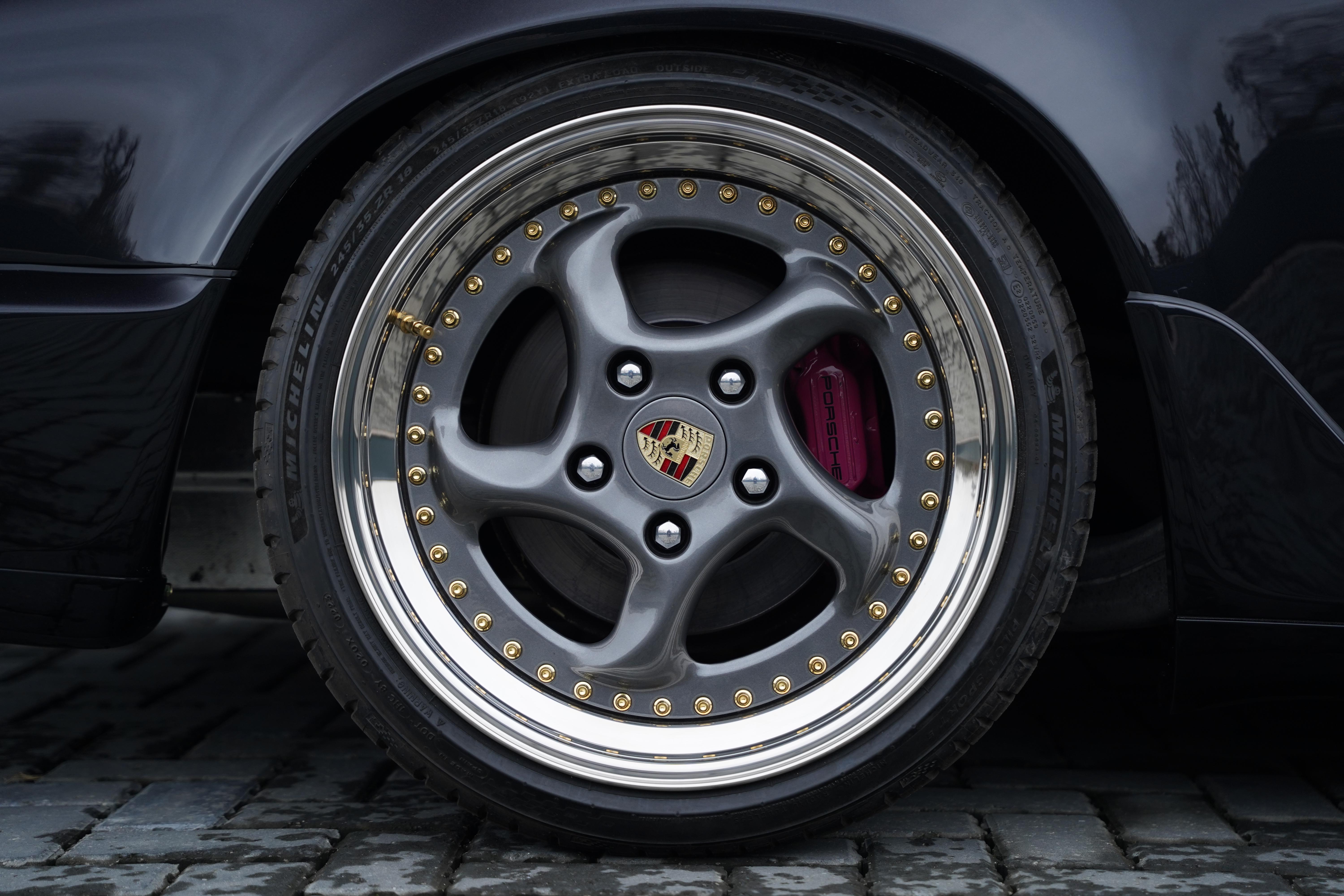 Hilton & Moss are pleased to present this fantastic example, first registered in April 1990. This 964 is fresh from a full external respray by the Hilton & Moss team. Although a fine example already, the previous keeper operated with a ‘no expense spared’ attitude and wanted to ensure this 911 looked better than when it left the factory. The client commissioned a complete ‘panel off’ respray correcting any previous works that had been completed over the last 35 years of the car’s life. Following on from the variety of high end restomods already completed on the vehicle it was decided that the car would be finished in the premium colour of Porsche Basalt Black, a modern colour that carries real depth with an elegant metallic fleck.