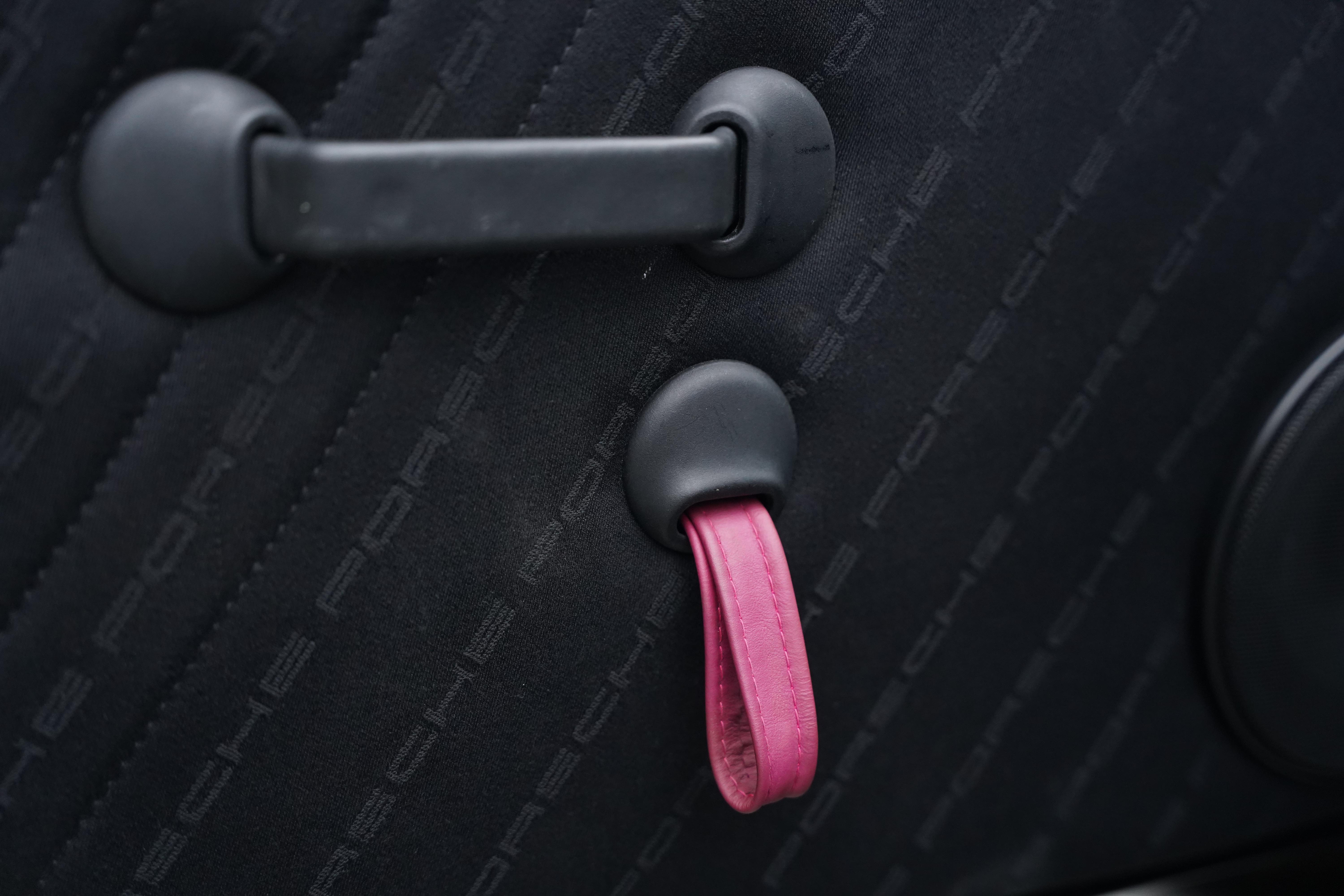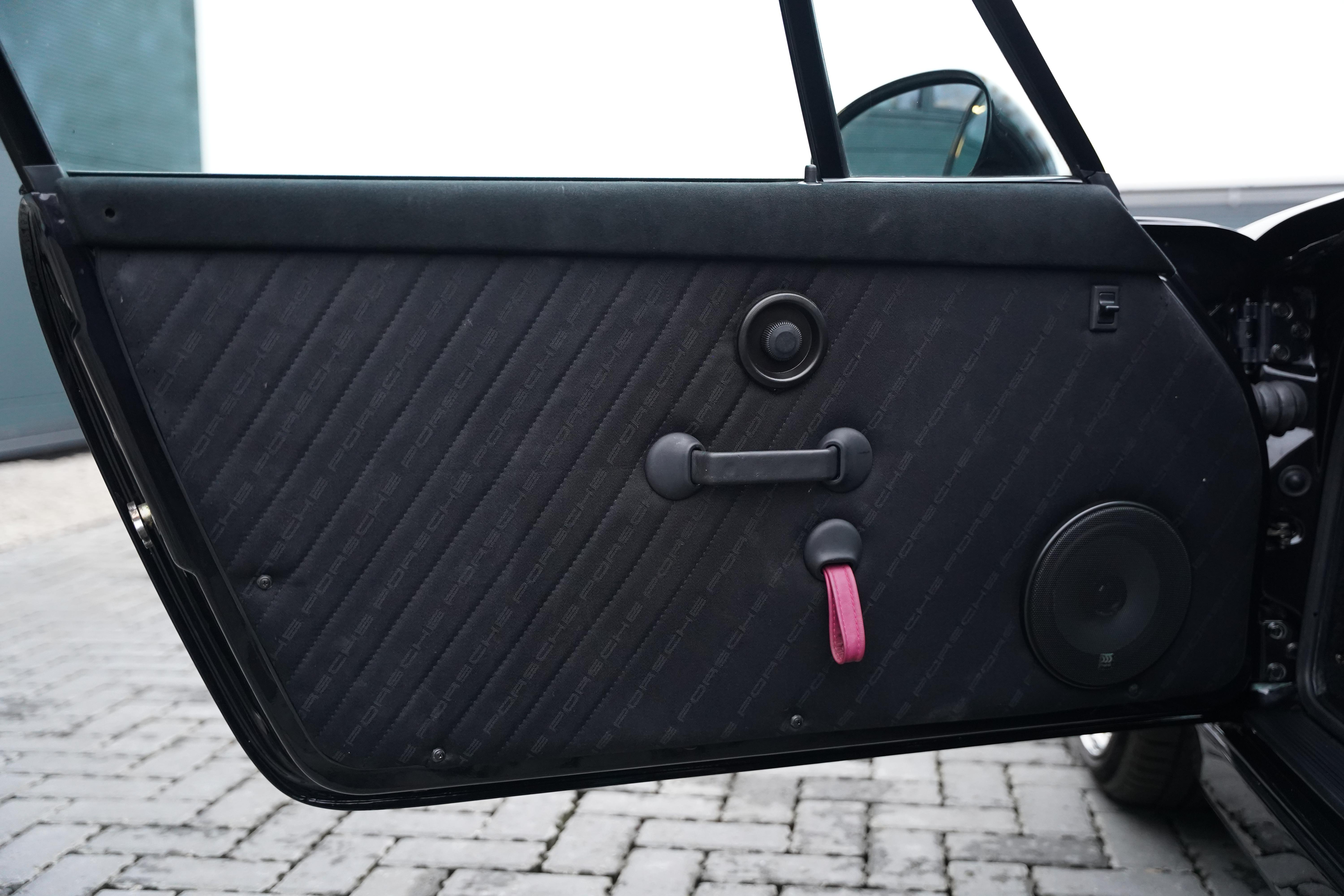 Custom door panels with RS door pulls and pinstripe Porsche logo