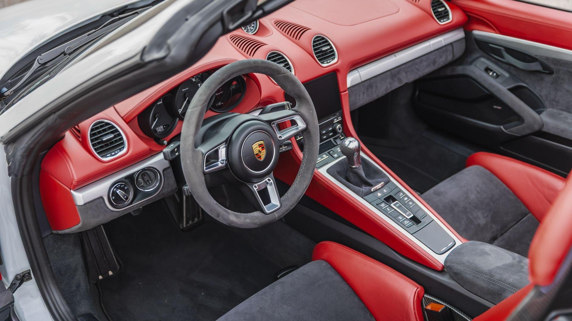 Chassis No. WP0CC2A86MS240071 Fans of the Porsche brand are notoriously fickle; their preferences rooted in both nostalgia and an intense expectation of continuous improvement. As a result, the Stuttgart marque must carefully thread the needle with each new model and update. Introduced in 2019, the 718 Spyder stands as perhaps the finest modern evocation of Porsche’s original 356 No. 1 and the racing Spyders of the mid-1950s—its name historically linked to the type number of the famous RSK model. The technical specification, as expected, is quite impressive. Mounted amidships, the naturally aspirated 4.0-liter flat-six produces 414 horsepower mated to a six-speed manual transmission that powers the rear wheels. Performance is exceptional as well, with the run to 60 mph flashing by in 4.2 seconds on the way to a top speed of 187 mph. These impressive numbers match the spectacular driving dynamics with Car and Driver stating “it goes and stops like a slot car with a just-cleaned commutator.” Those who have experienced the Spyder’s all-around performance, like the original owner of this optional Carrara White Metallic example, can certainly share the sentiment! Ordered via Prestige Porsche, now known as Porsche Denver West, this example was additionally ordered with High Gloss Black Brake Calipers and LED Headlights with Porsche Dynamic Light System Plus (PDLS+) on the exterior. The interior features the highly desirable Spyder Classic Interior Package for $2,800 that decorates cabin and Full Bucket Seats with a warm two-tone leather and Alcantara. Additionally, the interior is optioned with Illuminated Stainless Steel Door-Sill Guards, Navigation including Porsche Connect, and BOSE Surround Sound System. All told, these factory-fitted options added $16,530 to the price with the car retailing at an impressive $115,180. The Spyder remained with the original Colorado-based owner, servicing at Porsche Tucson and Stevinson Porsche, now Porsche Littleton. According to the clean CARFAX Vehicle History Report, the car changed hands at approximately 5,000 miles and again at 8,200. It was acquired by the consignor at 9,000 miles as a Porsche Certified Pre-Owned example from Hilton Head Island Porsche—a certification that is noted to remain with the car and is transferrable to the new owner. In their care, the car has continued its regular maintenance schedule with Flat Edge Autoworks with invoices on file and has been enjoyed on the Palmetto lined backroads of the American Southeast. A copy of a Vehicle Information report indicates a small number of stage 3 overspeed ignitions. It is now offered with a low count of 13,338 miles at cataloging, a clean CARFAX Vehicle History Report, the balance of its Porsche CPO warranty, and the expectation that it will deliver its next owner the same thrilling blend of precision, engagement, and open-air performance that defines the 718 Spyder.