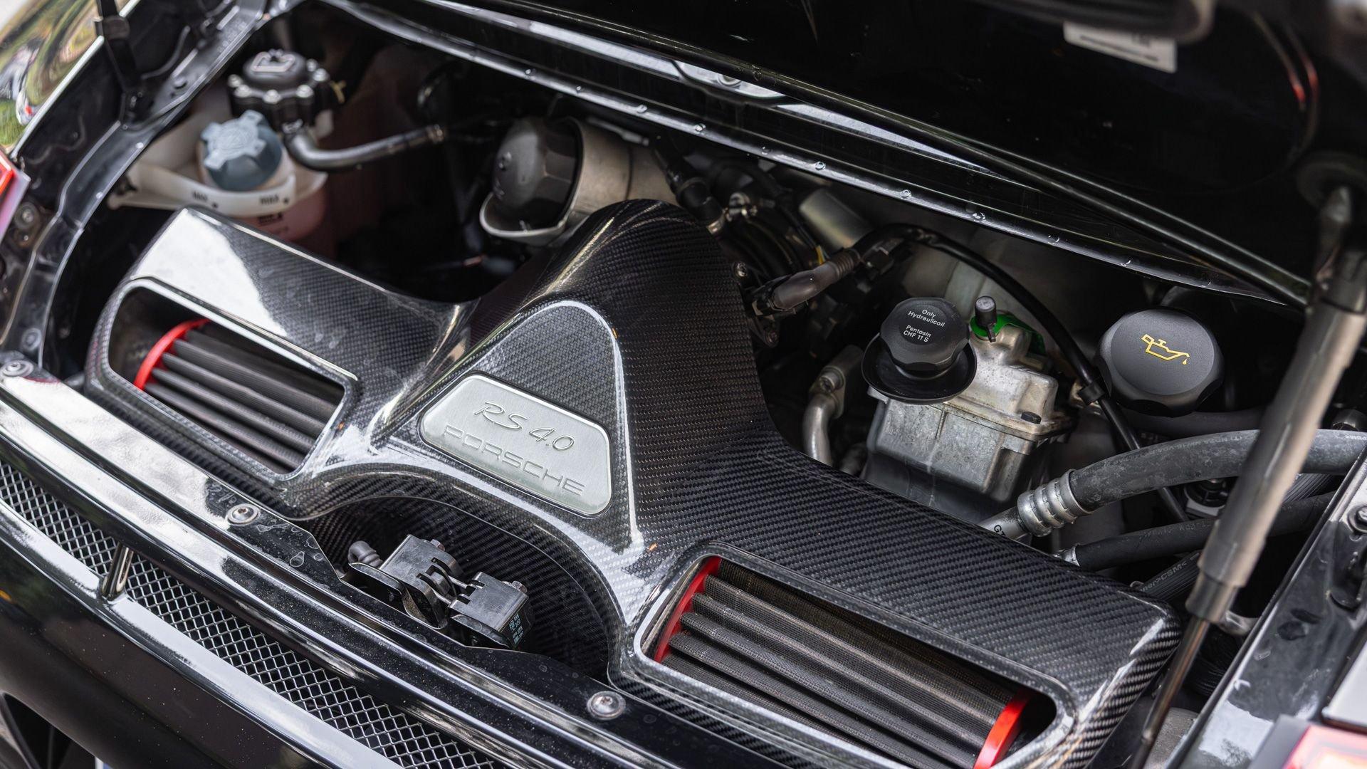 Chassis No. WP0ZZZ99ZBS785205 GT3 RS 4.0 No. 197/600 For the RS 4.0, allocations, waiting lists, and deposits weren’t yet the norm—unlike today, in the early 2010s buyers could still spec one new at MSRP. The RS 4.0 was the ultimate 997-generation 911, a limited-edition swan song that built on the already-celebrated RS 3.8. Porsche’s engineers enhanced it with lightweight carbon panels, a wider body, increased downforce, and bespoke suspension geometry with monoball components, delivering a driving experience unmatched by the GT3 RS 3.8 or any other Rennsport 911. This car also marked the final chapter for the legendary flat-six Metzger engine, a rear-mounted masterpiece that powered every 911 since 1964 and dominated racing—from Le Mans to Paris-Dakar. Andreas Preuninger, Porsche’s head of GT cars, emphasized the RS 4.0 was “built around the engine.” Key upgrades included a crankshaft borrowed from the 911 GT3 RSR and forged pistons with titanium connecting rods. At four liters, it was the largest 911 engine ever, producing 500 horsepower at 8,250 rpm—125 PS per liter—from a naturally aspirated unit, all sent through a six-speed manual, the last Rennsport 911 with a stick. The RS 4.0s, especially those with the optional and highly desirable Clubsport package, were recognized as a special edition yet designed to be driven. Porsche’s marketing showcased stripped-down examples racing around the world, with a remarkable Nürburgring lap time of 7:27. First delivered via Centre Porsche Nantes, this GT3 RS 4.0, one of only 35 French-market examples, was assigned limitation number 197 of 600 produced for the worldwide market. Ordered as just one of 131 in the world in highly sought after Black, it is just one of only five so finished for French delivery with the vast majority painted Carrara White. Its VIN Analytics build sheet records number 197 was optioned with the highly desirable 003 Clubsport Package that included a body-color roll cage, fire extinguisher, and six-point Schroth harnesses among other items. Furthermore, it was selected with a large 90-liter fuel tank, wheels painted in Black versus the standard Silver Metallic, six-point passenger seat belts, Lightweight Headlights, and a carbon fiber center console rear section. Following its delivery on 29 September 2011, as noted in its stamped service book, this RS 4.0 Clubsport has been regularly serviced. Accompanying invoices show maintenance at Centre Porsche Rennes in Cesson-Sévigné, France, between 2013 and 2023. In 2014 the service book reveals a replacement flat-six installed at 9,510 kilometers. Invoices record the RS 4.0’s most recent service in July 2024 with only 19,133 kilometers on the odometer. During this service, the seller noted that it received an extended two-year limited warranty (transferable to a private party) that expires on 6 October 2026. Today, at the time of consignment, it has traveled only 19,318 kilometers, just 185 km since its last Porsche dealership service. In addition to its excellent condition, the consignor notes that the car retains its original Black paintwork and factory-applied Black wheel finish. Opportunities to acquire a low-mileage, well-specified RS 4.0 finished in Black are rare. One of Porsche’s finest Metzger-engined creations, it combines engineering brilliance with historic significance to deliver pure driver engagement. The 911 GT3 RS 4.0 stands among the definitive Rennsport 911s—a car for collectors, enthusiasts, and anyone who understands what makes a 911 truly extraordinary.