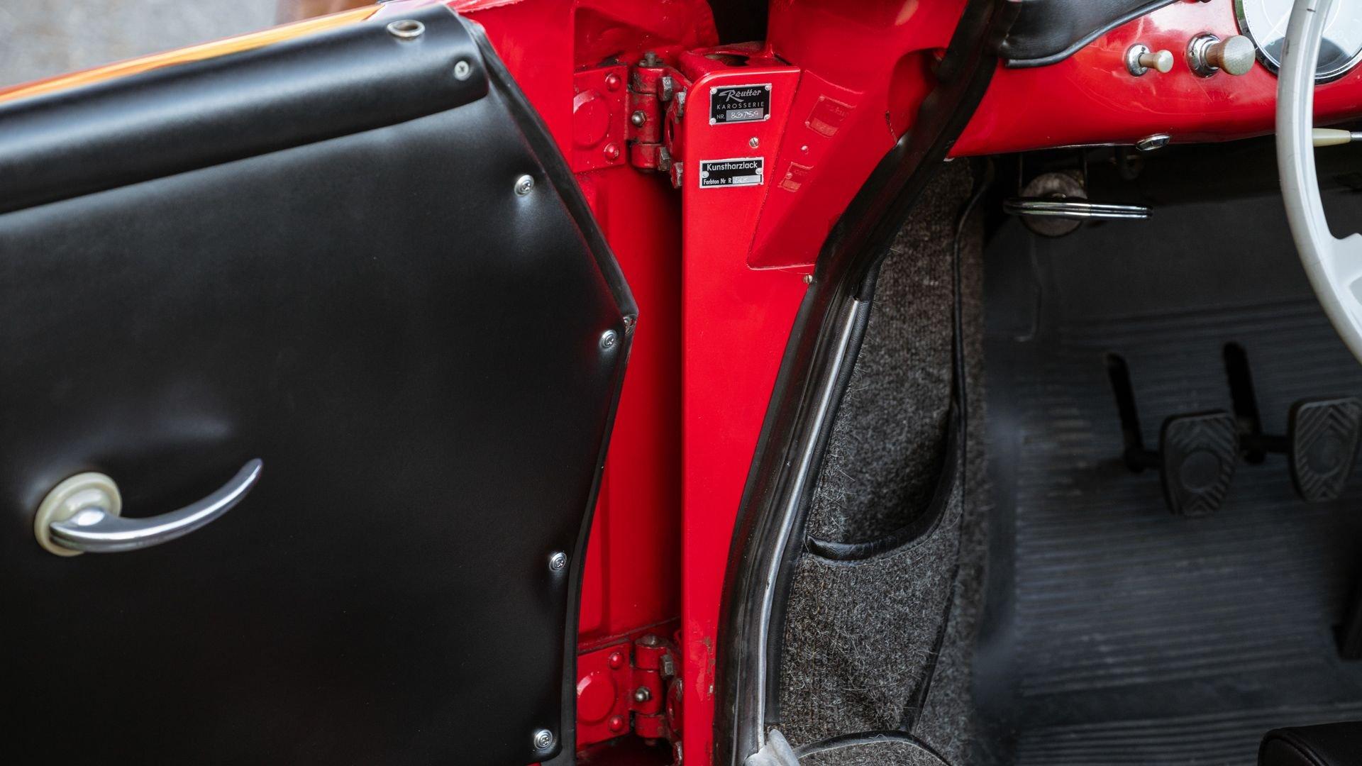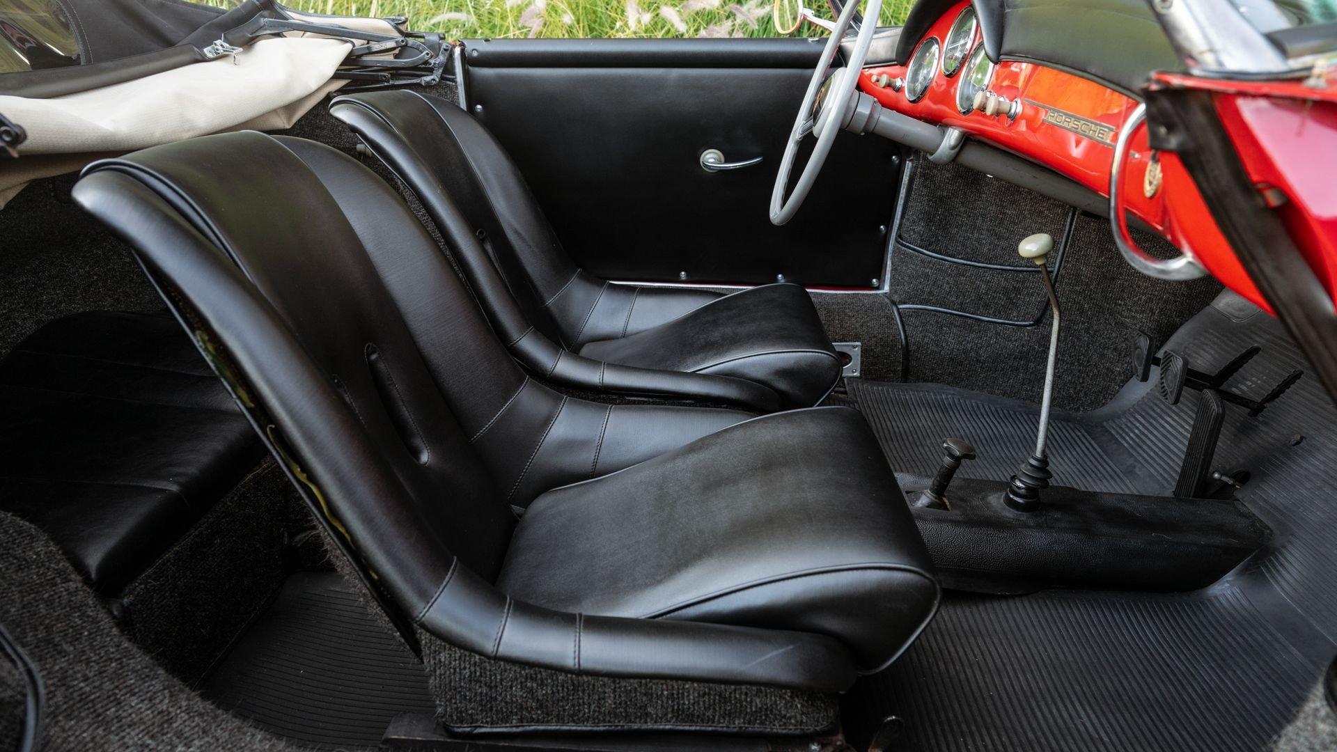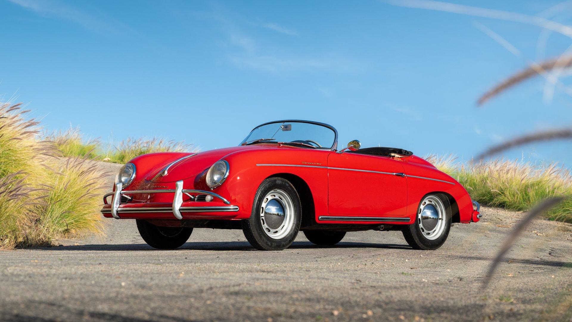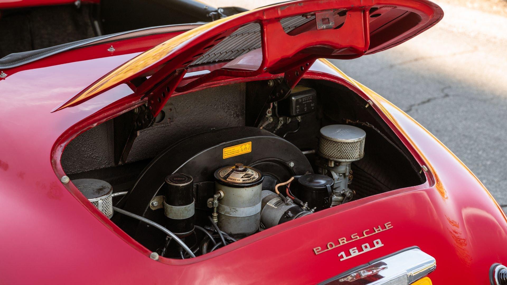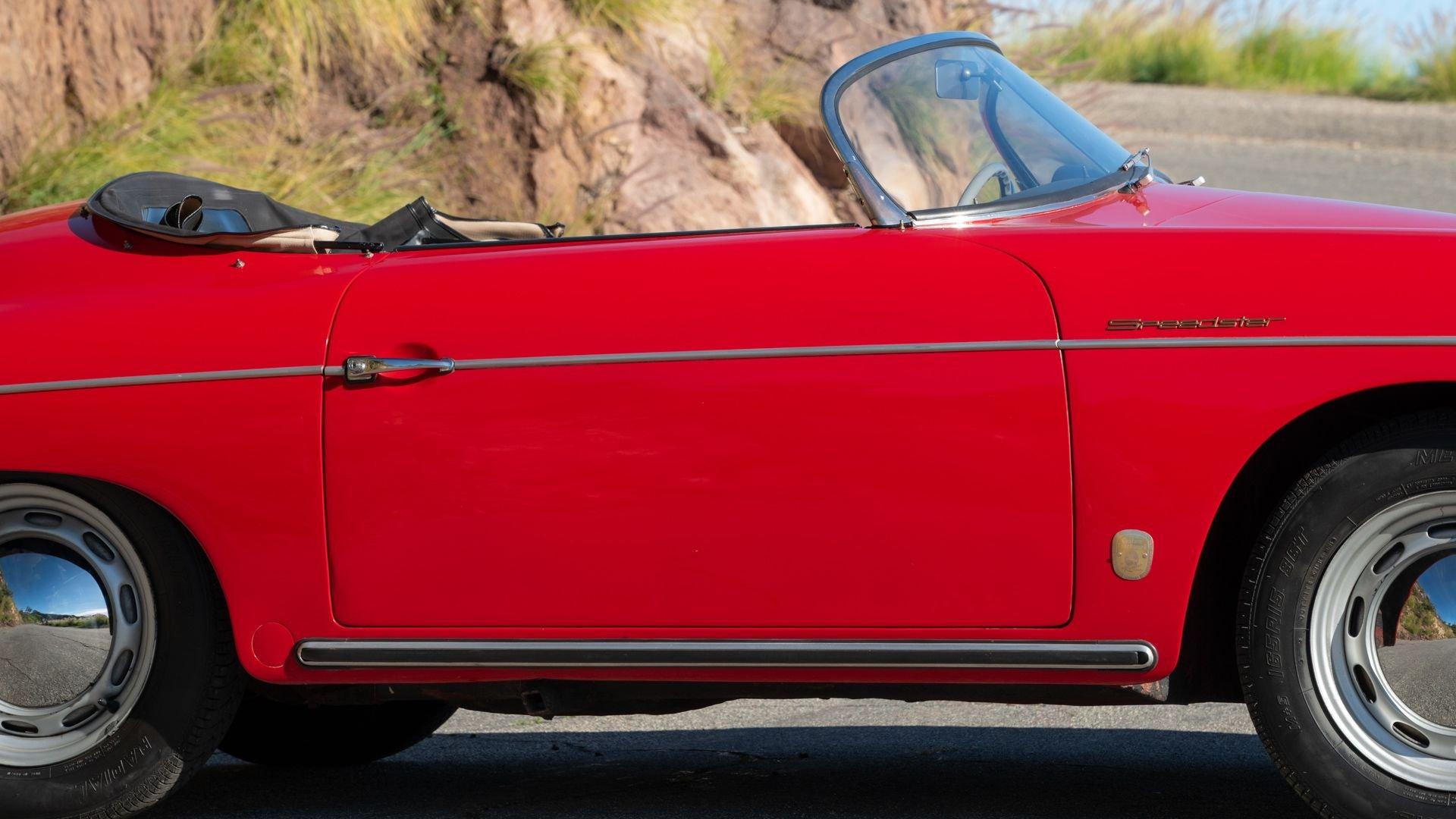 The chassis registry contained with the seminal Porsche Speedster Typ 540, reveals that 1957 356 A Speedster chassis number 82759 was originally finished in Red with a 1,600 cc Type 616/1 engine. At a time when Porsche continued to offer their 1,300 cc engine, the 60 horsepower 616/1 was the second most powerful pushrod engine in Porsche's flat-four lineup. A copy of the Speedster's Kardex warranty card records additional detail. Delivered on 26 November 1956, like nearly every Speedster brought to the United States, it entered through The Hoffman Motorcar Co. with limited options that included U.S.-market sealed beam headlights and bumpers. Furthermore, the Kardex lists both the original engine and transmission serial numbers, with both numbers matching units remaining with this preserved example today. Additionally, upon inspection, the Type 616/1 flat-four retains all three matching pieces stamped “868” at the factory. It's not just the drivetrain that has stood the test of time. The Speedster wears an older cosmetic restoration and is believed to have spent most-if not all-of its life in Southern California collections; most recently in San Diego and the greater Los Angeles area. As a result, the body and numerous date stamped and serialized components such as the fuel tank, sending unit, spare wheel, front hood hinge, engine lid (both stamped “759”) remain original to the car. In its current state, it may be the ideal vessel that captures the aura of cool that surrounds 356 Speedsters, especially those patinated examples that can be driven and enjoyed with confidence.