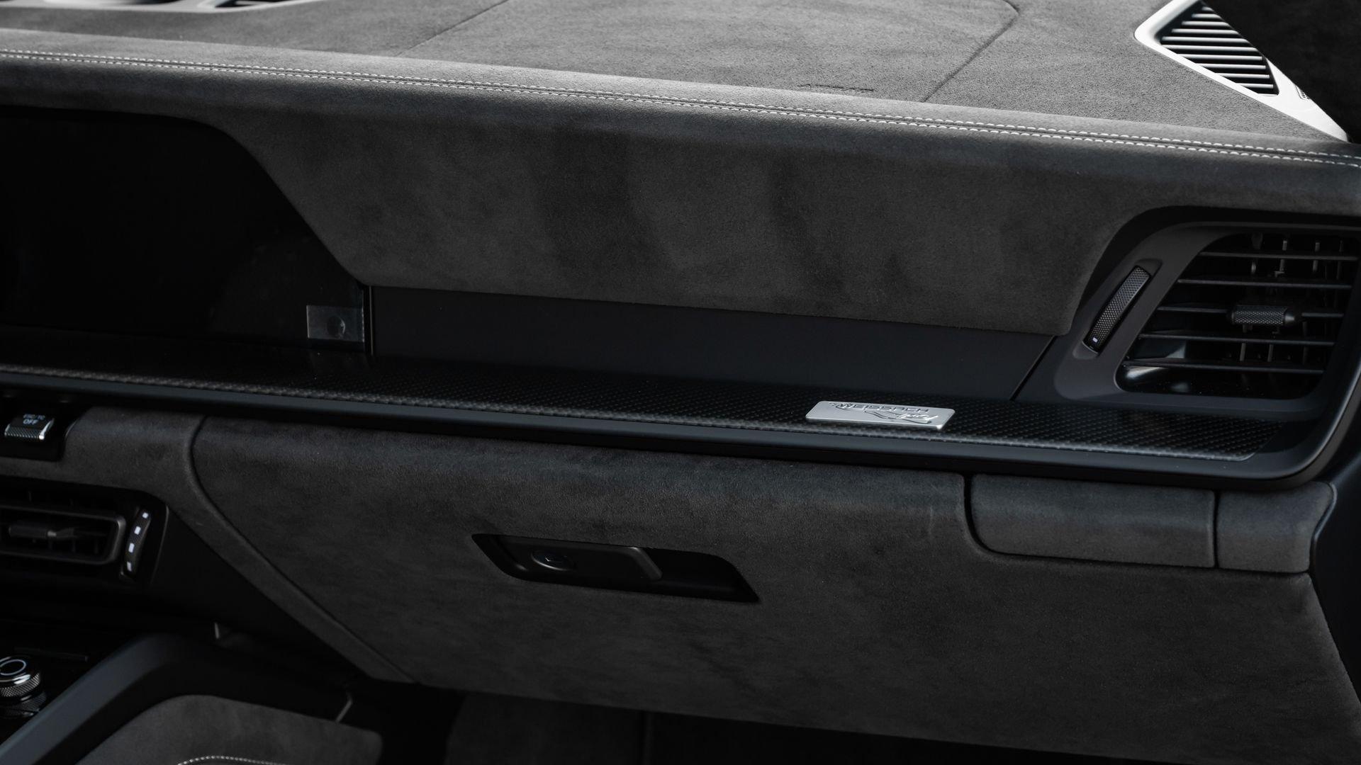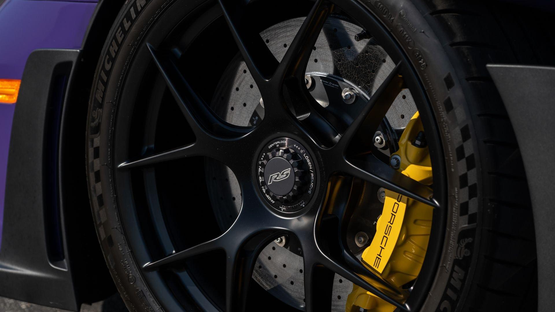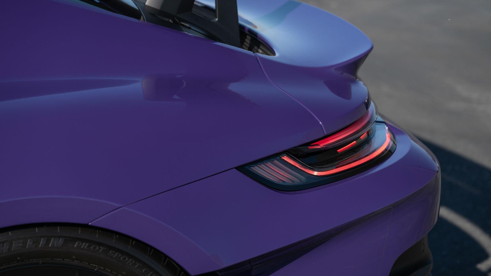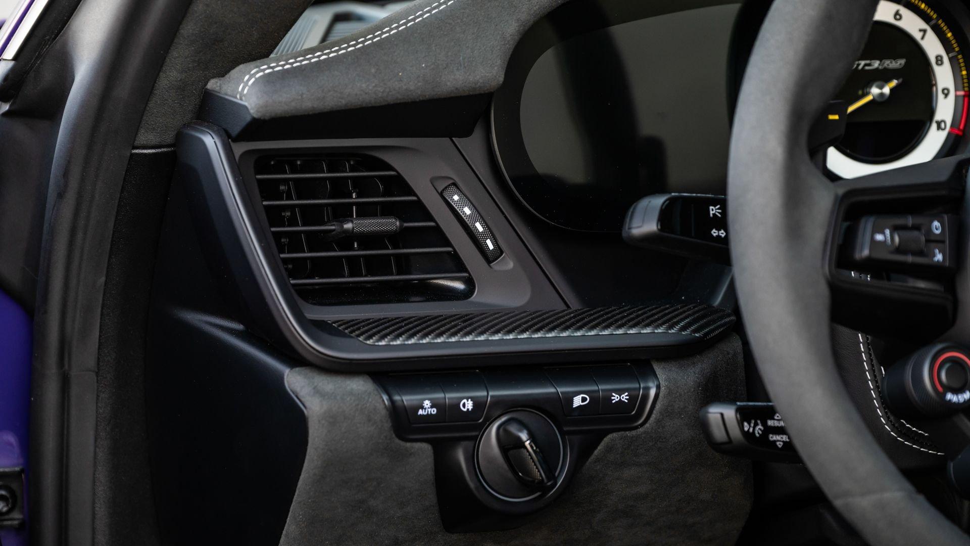 Finished in Paint to Sample Ultraviolet-a deep, saturated violet applied at a cost of $21,720-over a Black Leather/Race-Tex interior with GT Silver stitching, the car carries a number of desirable extras. The aggressive exterior package is completed by Porsche Ceramic Composite Brakes (PCCB) with Yellow calipers, Satin Black-finished forged magnesium wheels, LED-Matrix headlights in Black with PDLS+, and Exclusive Design taillights. Inside, the driver is faced with a White central tachometer and Chrono stopwatch dial, while details such as the Pebble Grey deviated stitching, illuminated matte carbon-fiber door-sill guards, Race-Tex sun visors, and aluminum pedals and footrest complement the car's thoughtful interior specification. A front axle lift system and a BOSE Surround Sound System add a welcome measure of refinement to this highly focused machine.