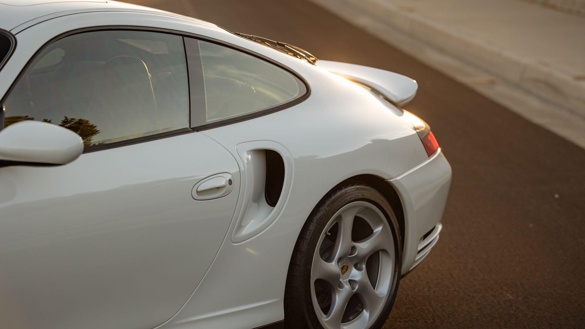 Offered with a digital build sheet, a clean CARFAX, toolkit, spare, and jack, this low-mileage 911 Turbo is one for the performance minded collector ordered in rare Biarritz White and exceptionally optioned with the help of Porsche Exclusive. Accompanied by its six-speed manual transmission and desirable factory and aftermarket performance upgrades, it represents a standout example of the 996 Turbo with both rarity and driver-focused appeal.