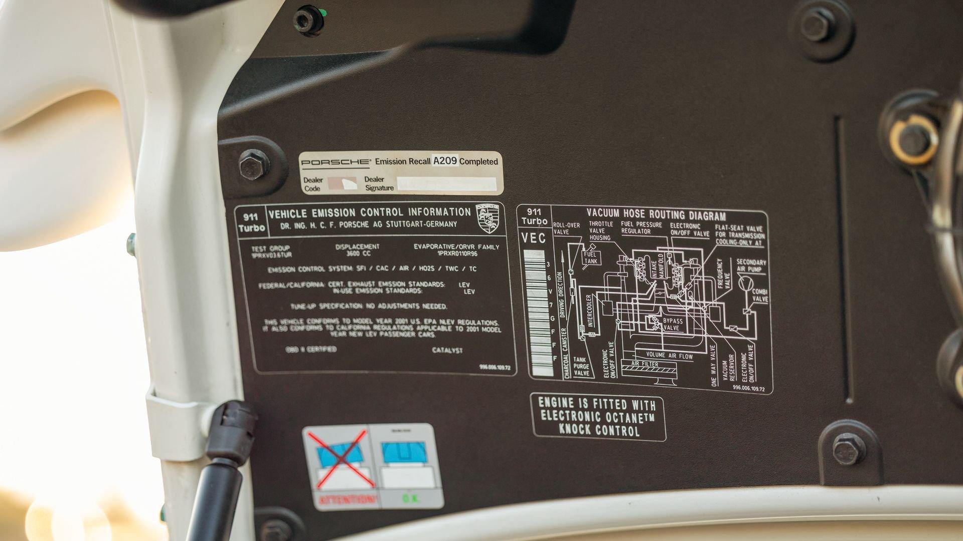 The clean CARFAX Vehicle History Report reveals a small string of Southern California-based owners with minimal miles added in the past 20 years. In fact, this rare Biarritz White 911 Turbo features just 15,996 miles at cataloging and is exceptionally well-kept inside and out. In 2004 Schatz Motorsport of Camarillo, California was enlisted to install a select group of performance enhancements that included an FVD 996 TT Control Unit, 996 GT2 intercoolers, and billet air recirculating valves to enhance engine performance. An M030 Suspension Package and short shift kit were added to enhance the Turbo's already sporting feel.