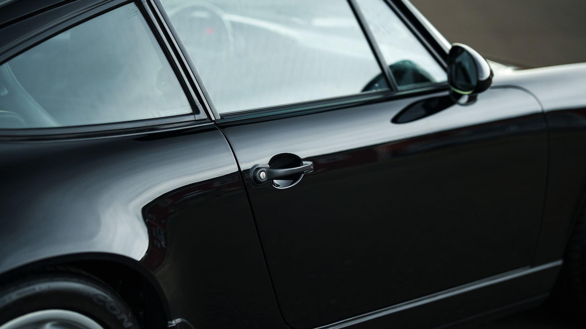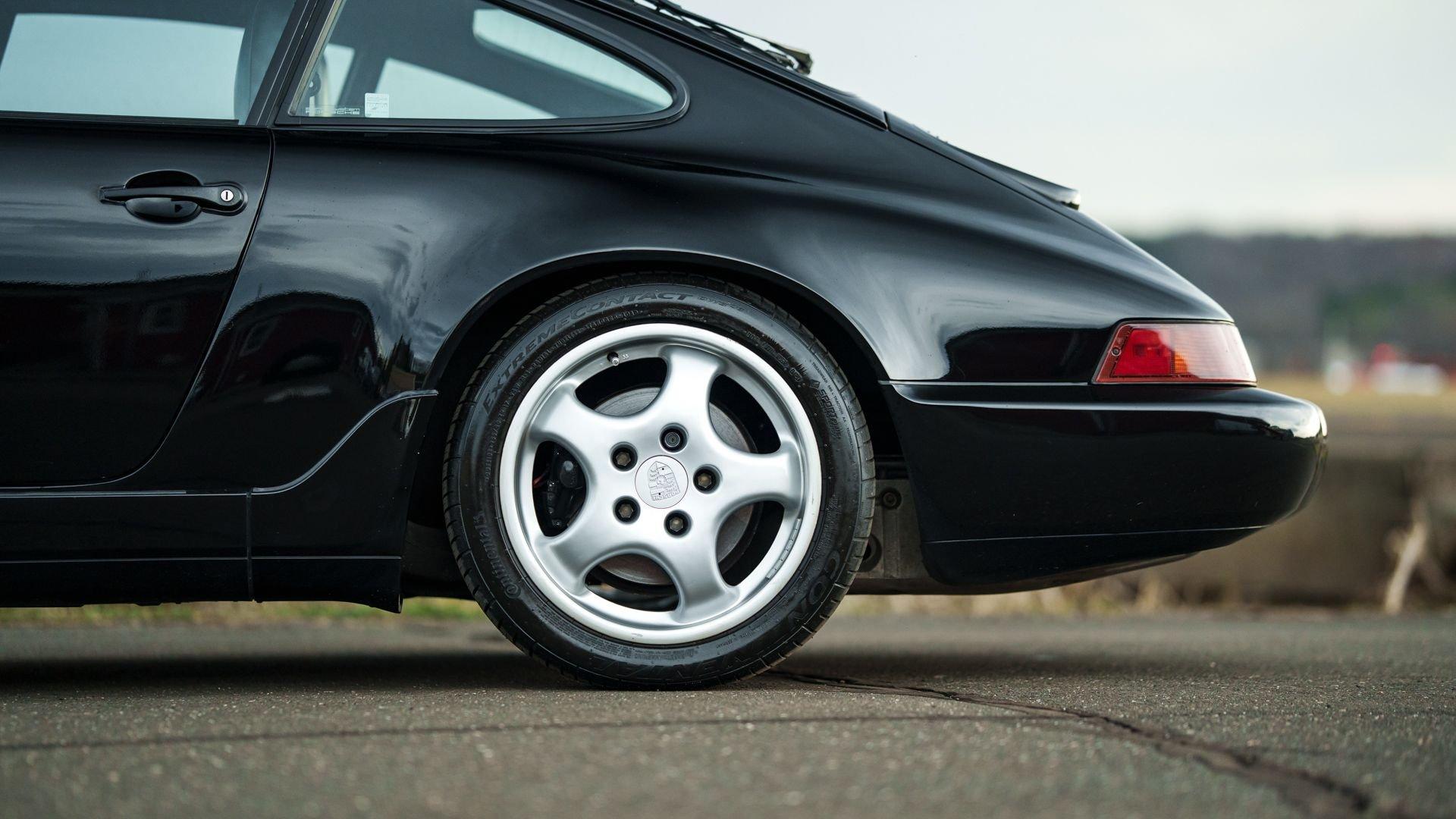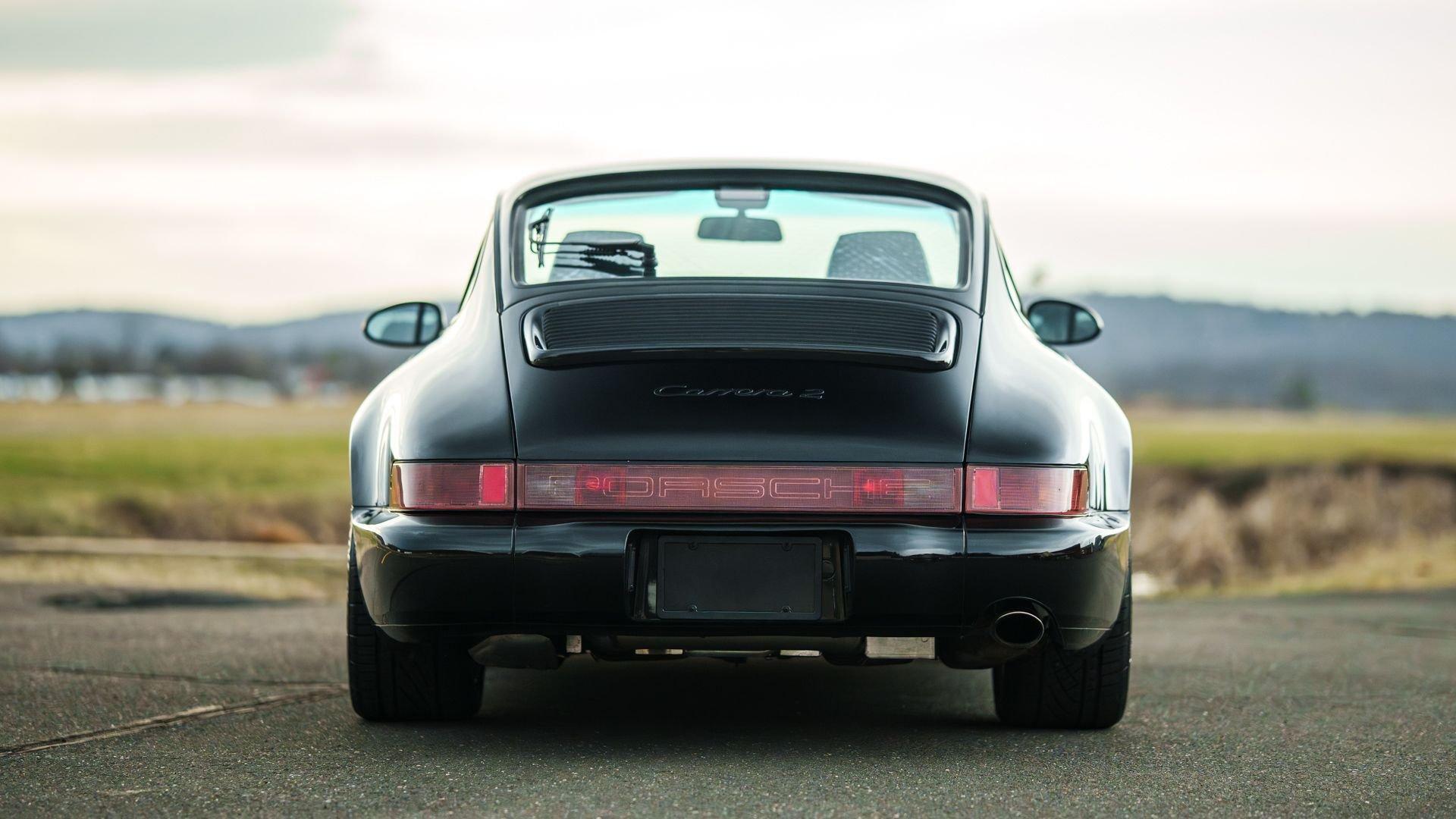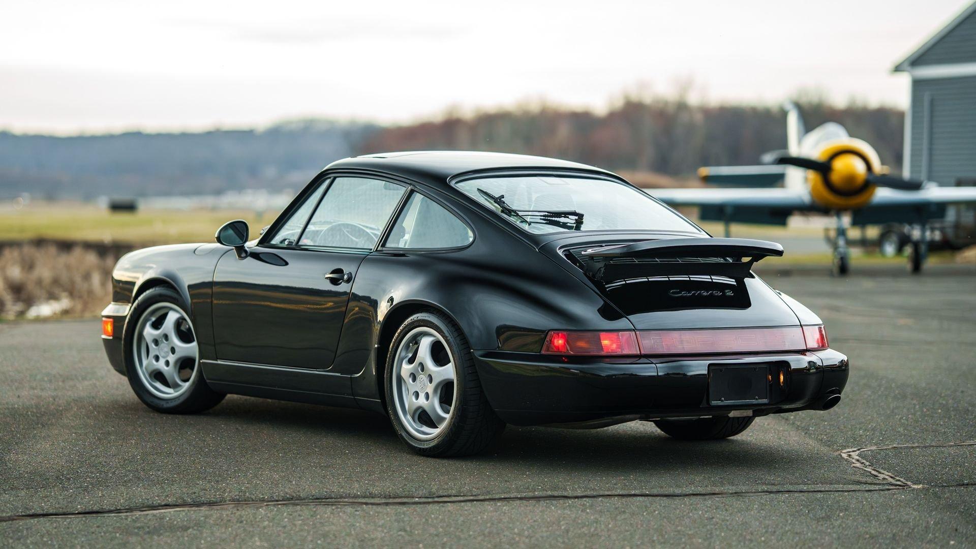 Produced 21 November 1989, this 1990 Porsche 911 Carrera 2 Coupe was finished from factory in matching non-metallic Black over a Black leather interior. It was equipped from the factory with the desirable five-speed manual transmission, limited-slip differential, electric sliding sunroof, and Blaupunkt Reno radio with additional amplifier. This example is additionally fitted with 'aero' mirrors and Cup 1 wheels, further honing its timeless design.