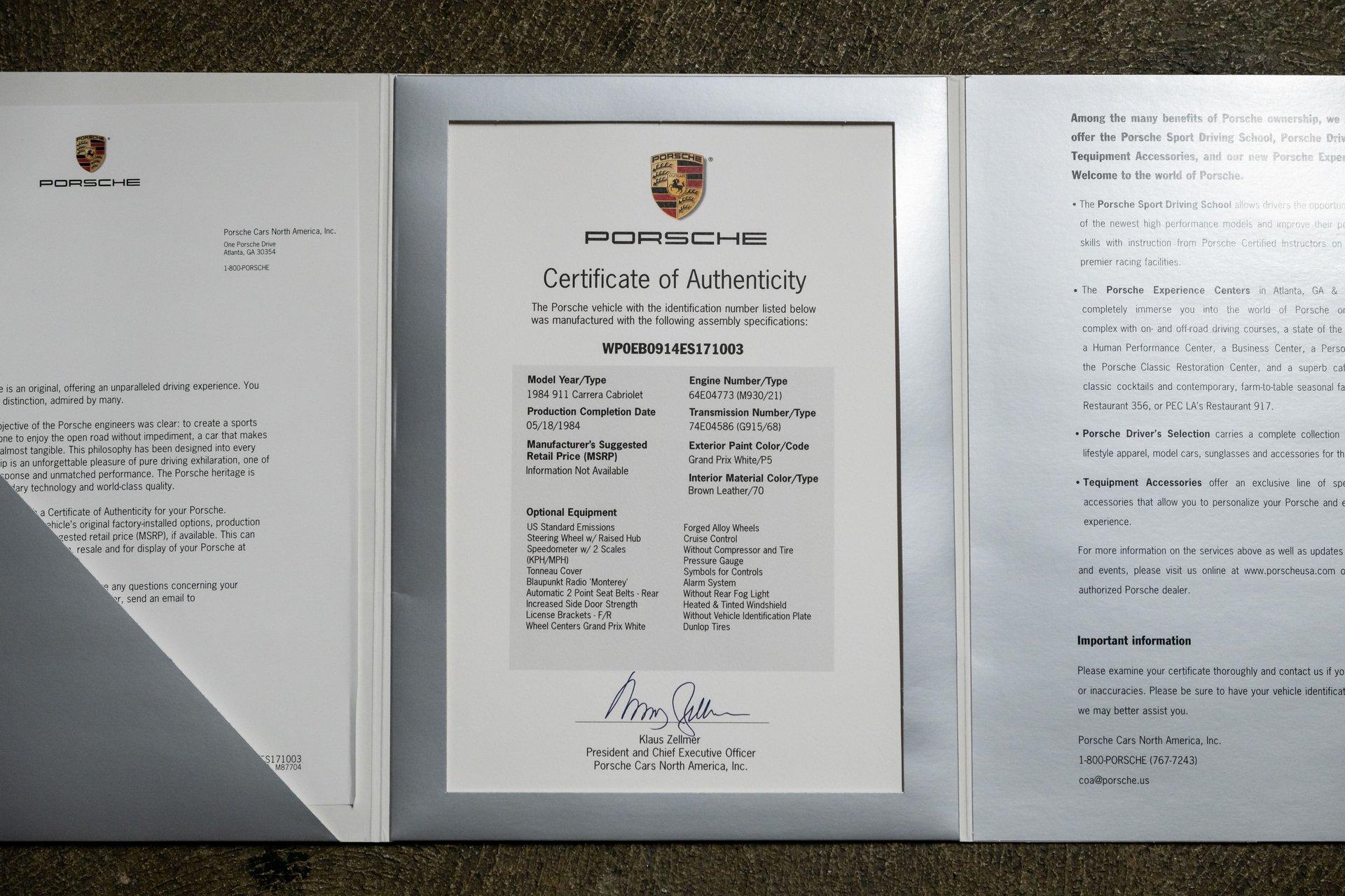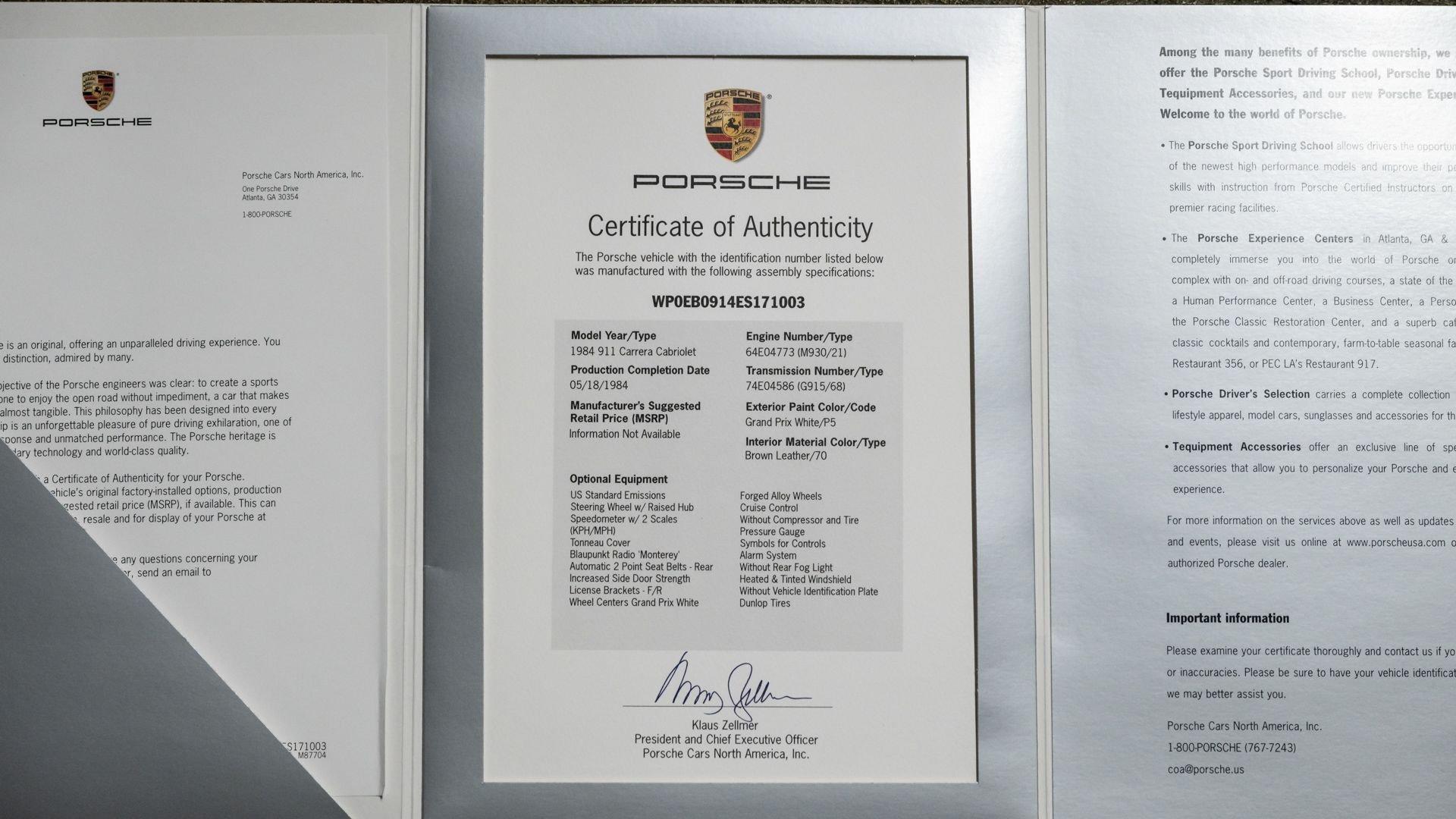 The CARFAX Vehicle History Report begins in Minnesota in May 1992, when it passed an emissions inspection with just 9,000 miles shown. In December 1998, the car was relocated to Texas with just 10,052 miles. In 2018 it was acquired for The White Collection via Porsche Austin by Broad Arrow's own Director of Research and elevated to the collection's strict standard of excellence where it remained through December 2023. Today, the car presents in exceptionally preserved condition, having covered only 17,521 miles at cataloging, and is still powered by its original matching-numbers 3.2-liter flat-six and five-speed manual transmission. It is furnished with numerous delivery accessories, including its original window sticker, tonneau cover, and tools, along with its Porsche-issued Certificate of Authenticity.