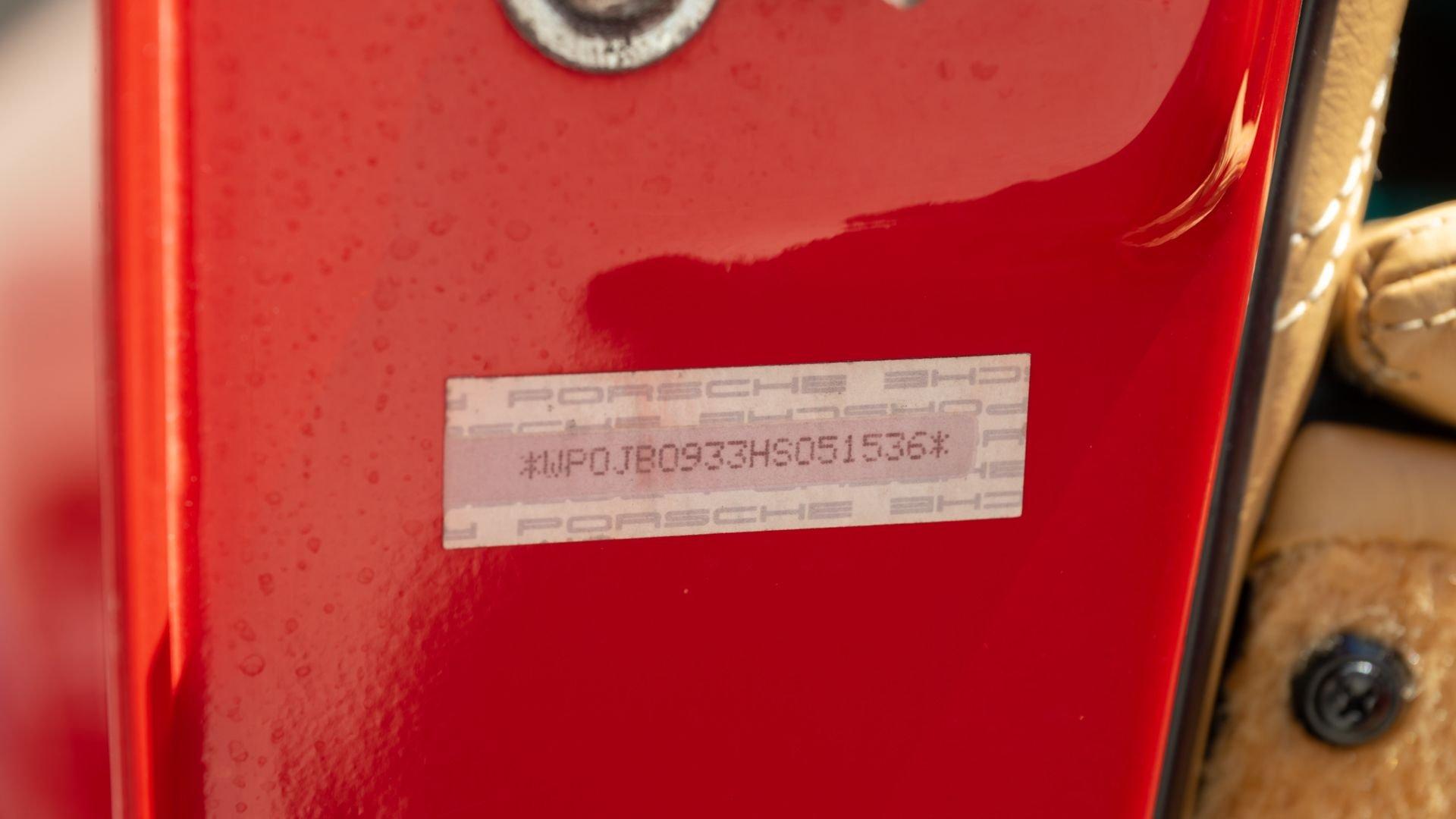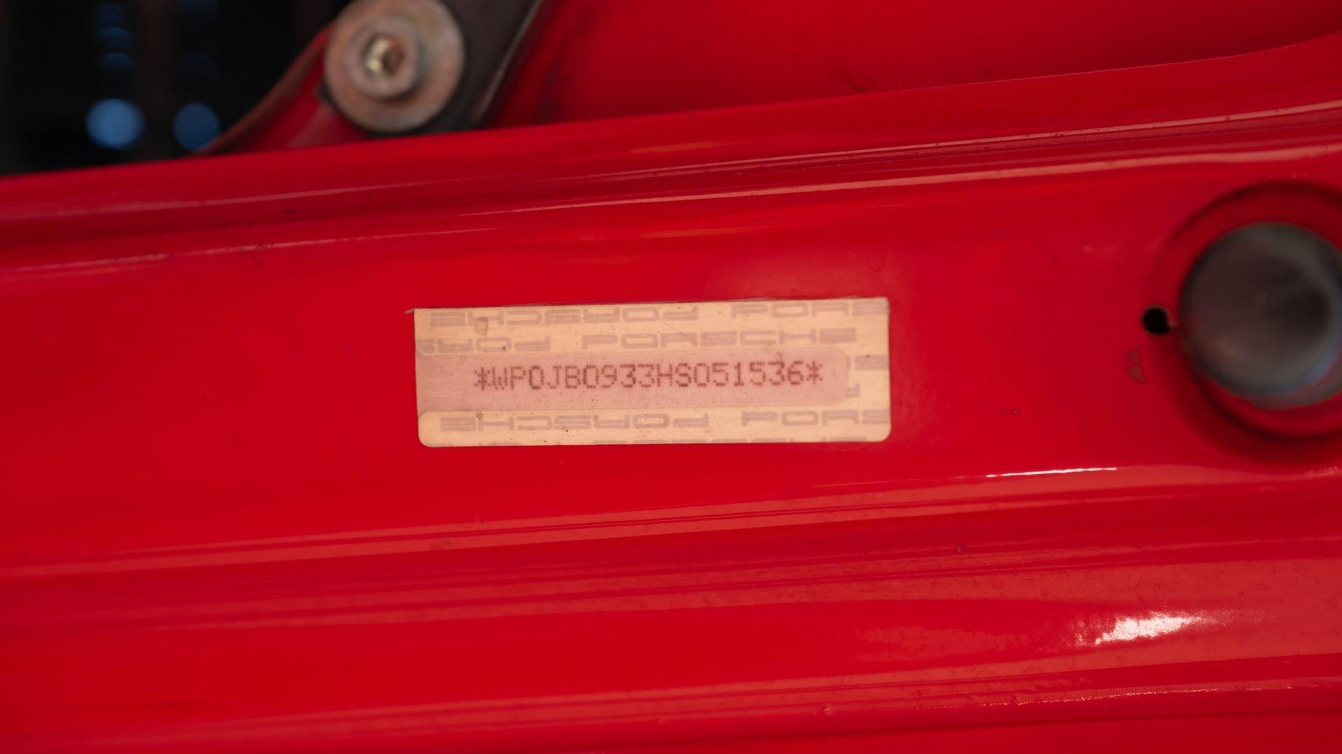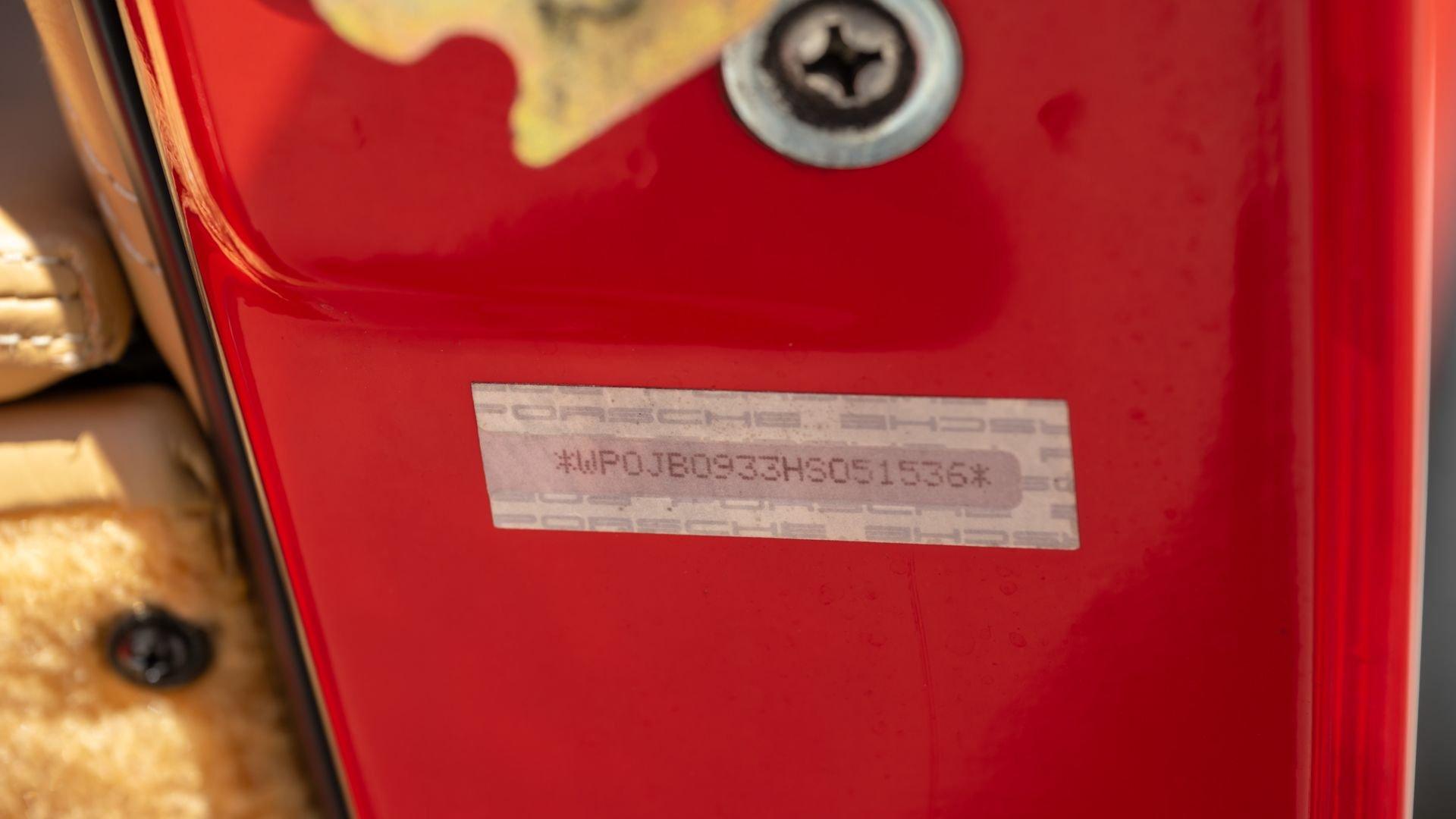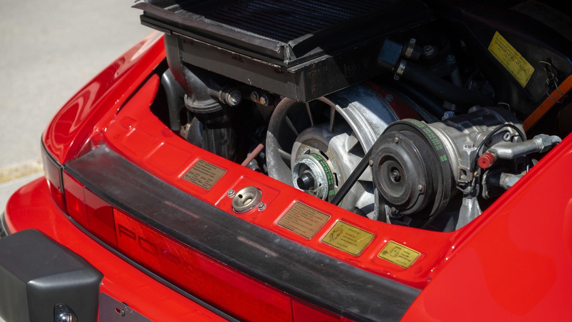 Completed on 15 June 1987 and delivered new through Jim Ellis Porsche of Atlanta, chassis number 51536 was specified in classic Guards Red over Champagne leather and ordered with the coveted M505 Slantnose package, giving the 930 Turbo its dramatic 935-inspired front end, boxed rocker panels, and rear fender intakes. A copy of the original window sticker notes a new price of $86,907 and documents factory options including an electric sunroof, driver lumbar support, Blaupunkt Reno radio, stone guard decals, and a velour-trimmed luggage compartment. One of just 144 U.S.-market Slantnose Turbo Coupes produced for the model year, it retains its matching-numbers 3.3-liter flat-six and four-speed manual transaxle, with correspondence from Porsche Cars North America recording that serial numbers 68H01602 and 77H02366 are original to the car.