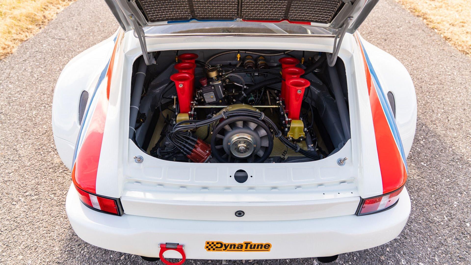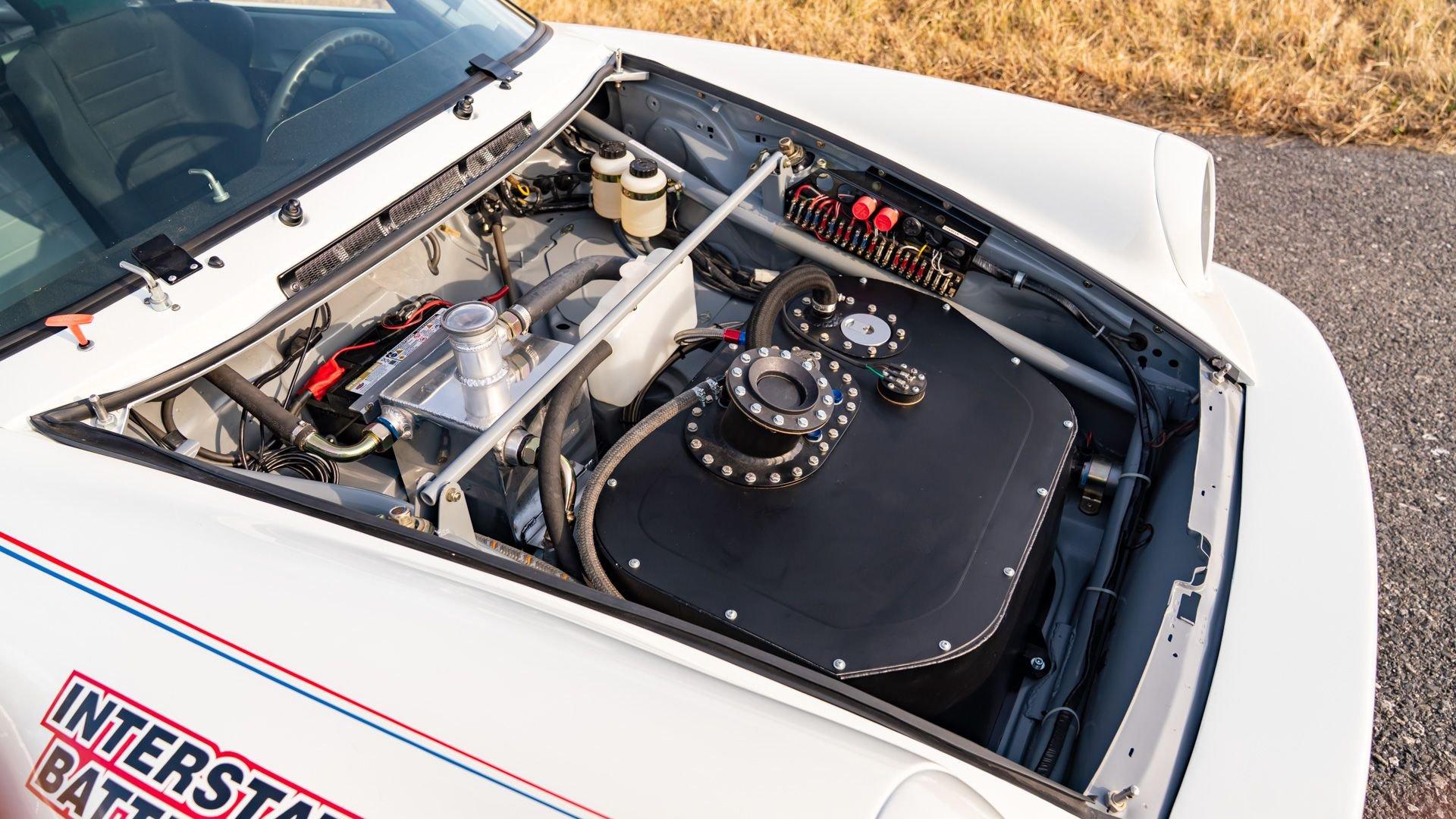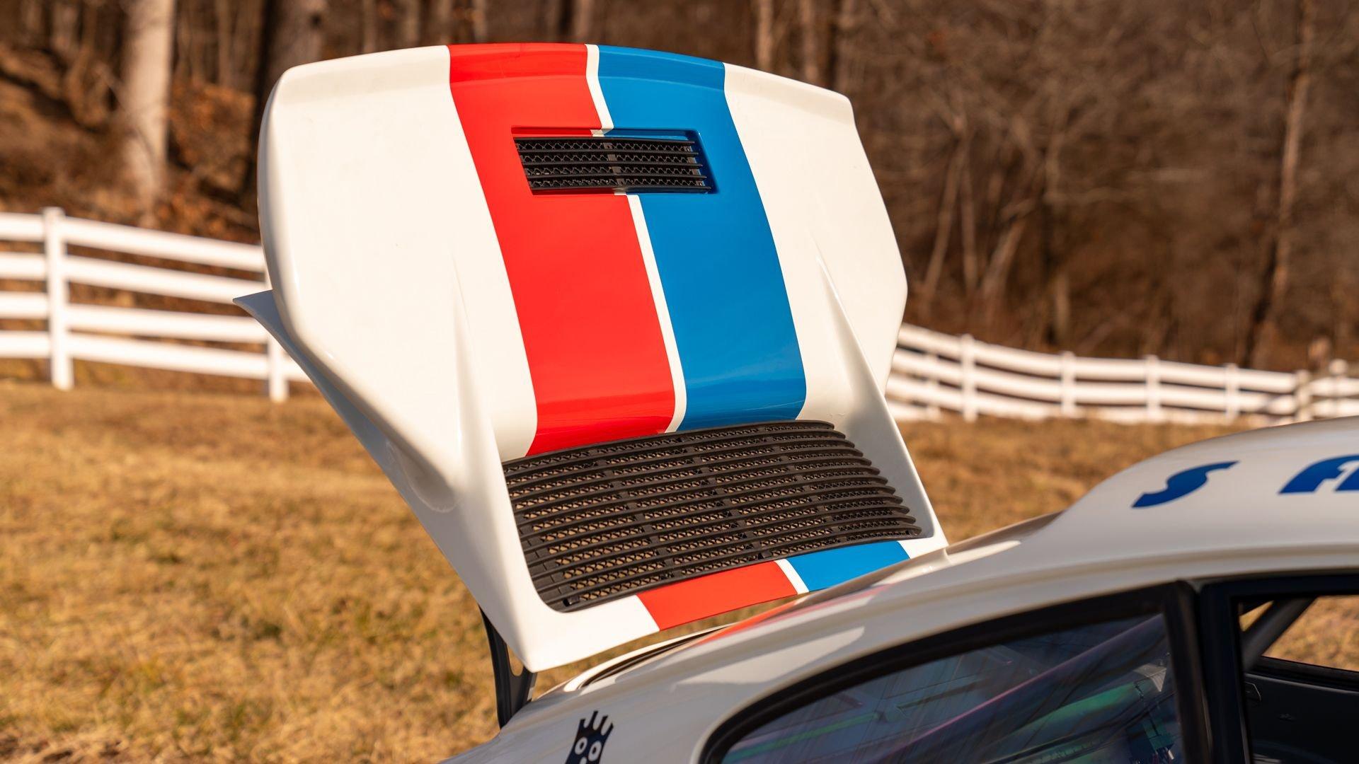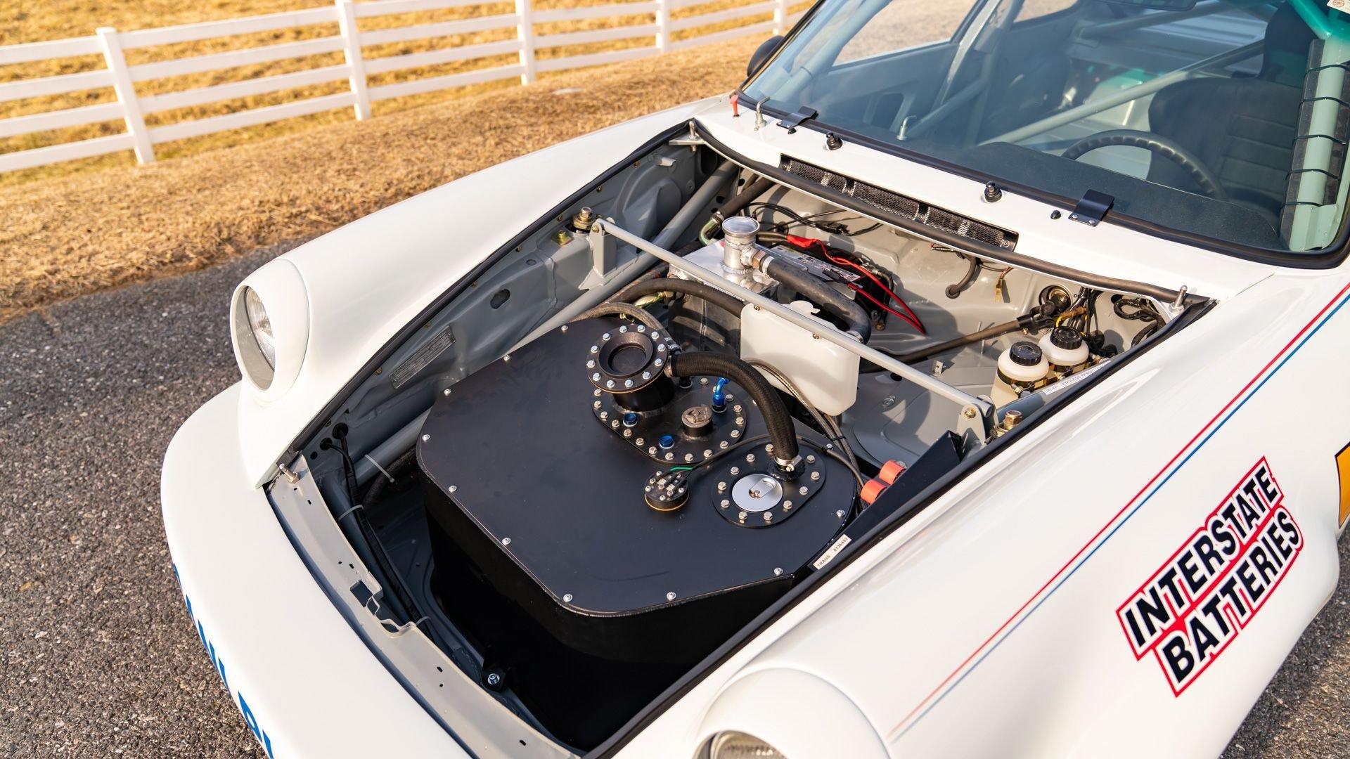 The car underwent a complete, ground-up restoration by the talented team at Gunnar between 2008 and 2016. The RSR body was fully stripped, blasted, and tidied before a fresh coat of white paint followed by Brumos' famous red and blue stripes. It features a fully overhauled Type 930/60 3.2-liter short-stroke twin-plug flat-six that breathes through a motorsport slide valve mechanically-injected induction system and exhales through a megaphone exhaust. The 915 gearbox was rebuilt, along with the RSR's coil-over suspension and large RSR-style brakes framed by lightweight five-spoke wheels with proper center-lock hubs. A new seat, harnesses, fuel cell with quick-fill, and fire suppression system completed the immediate build, which tipped the scales at 1,890 pounds.