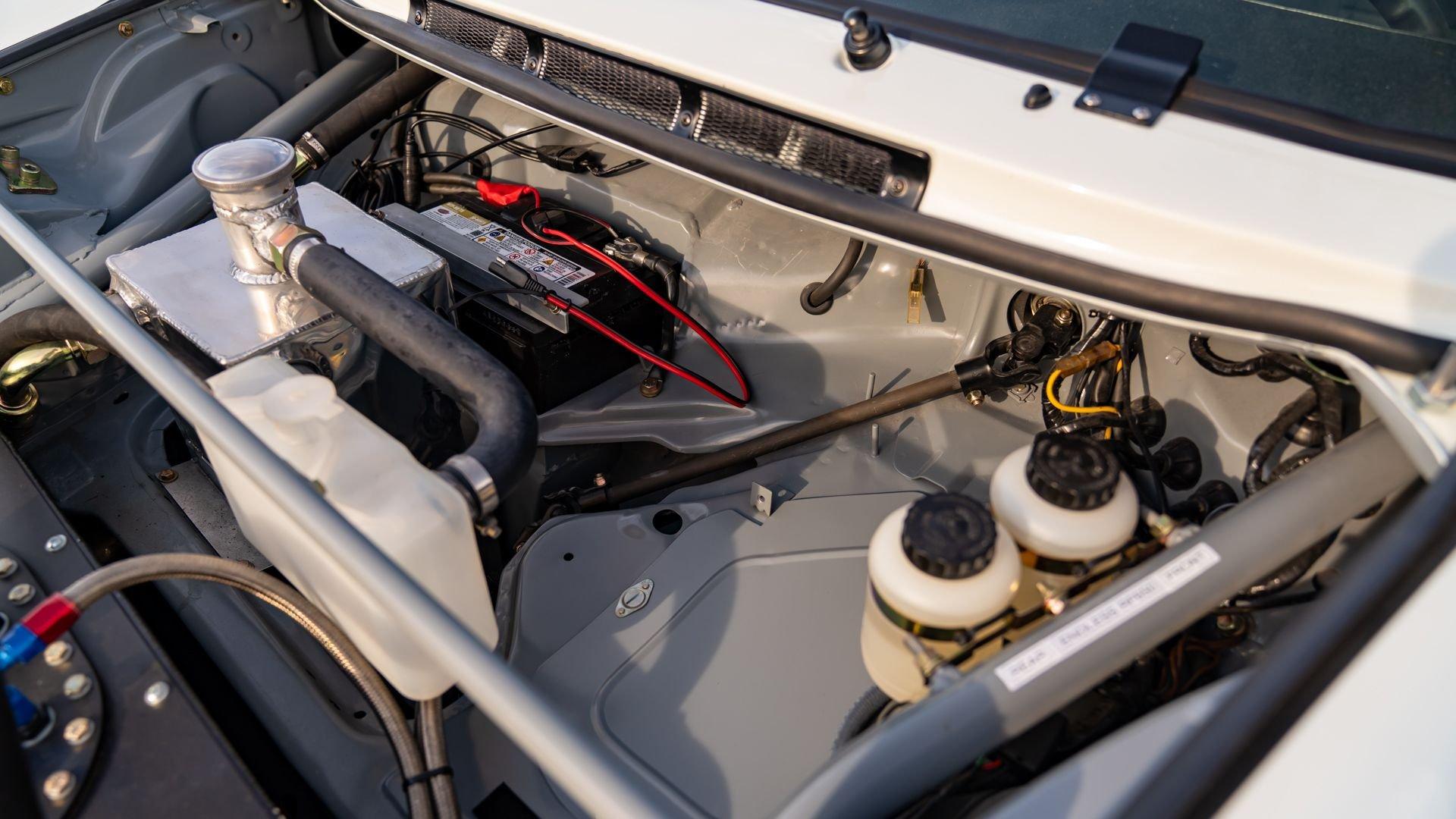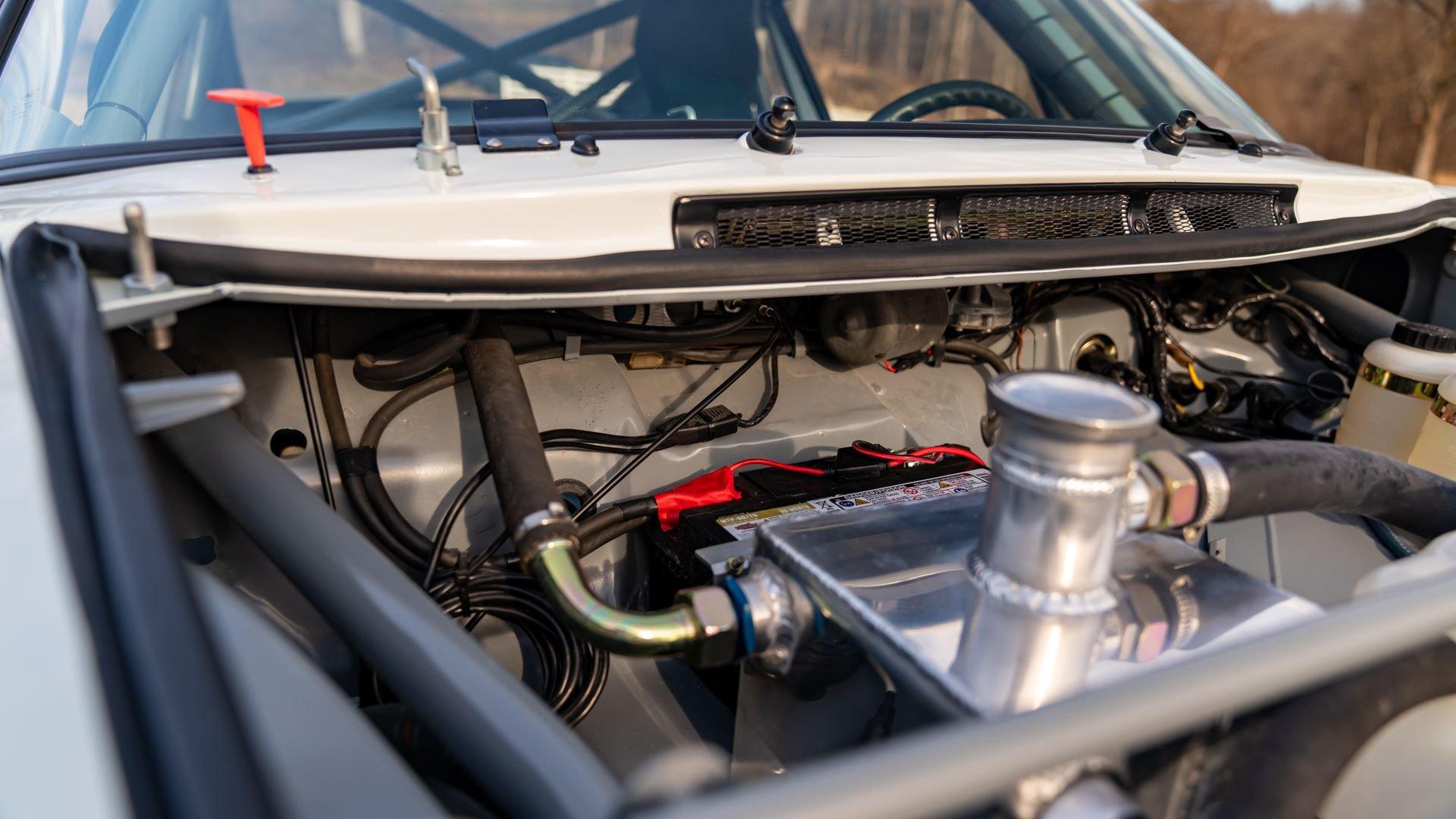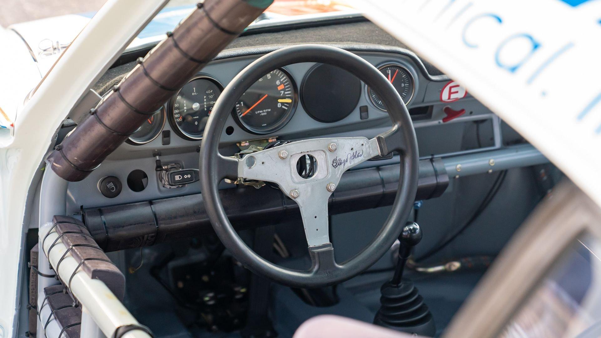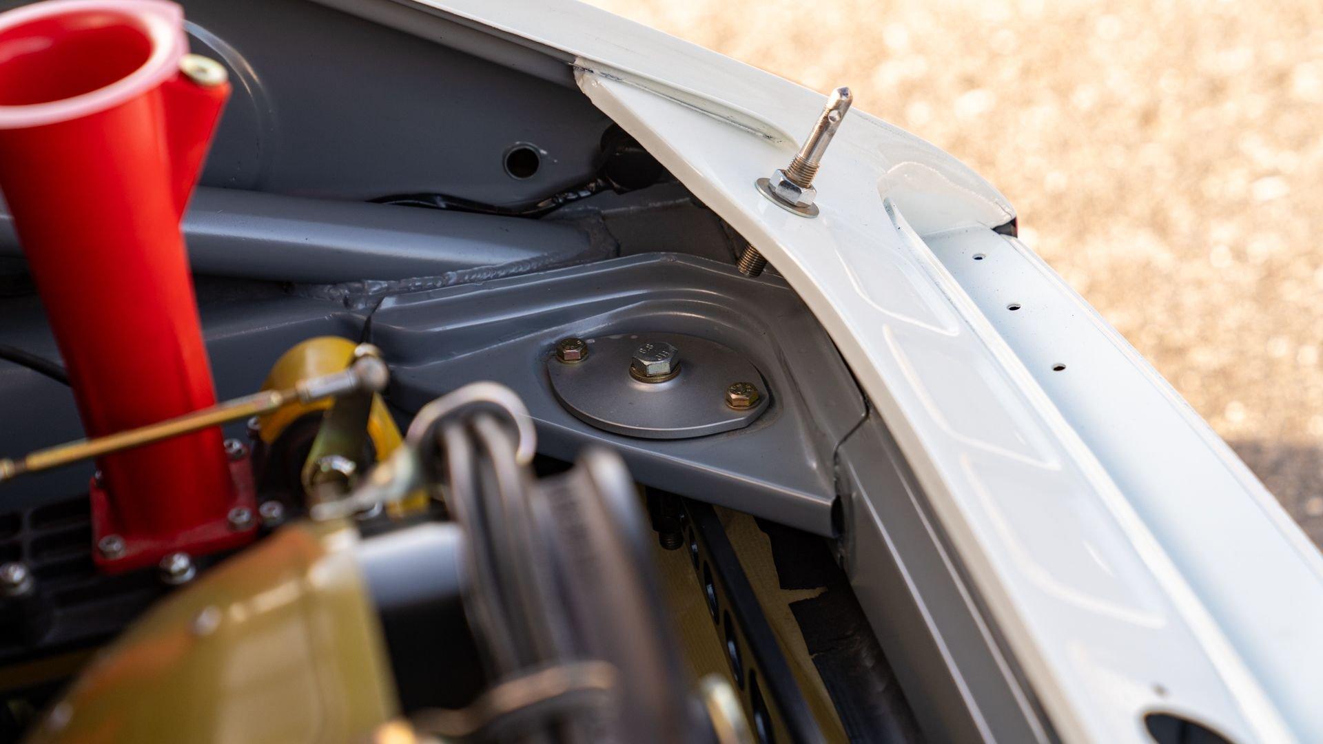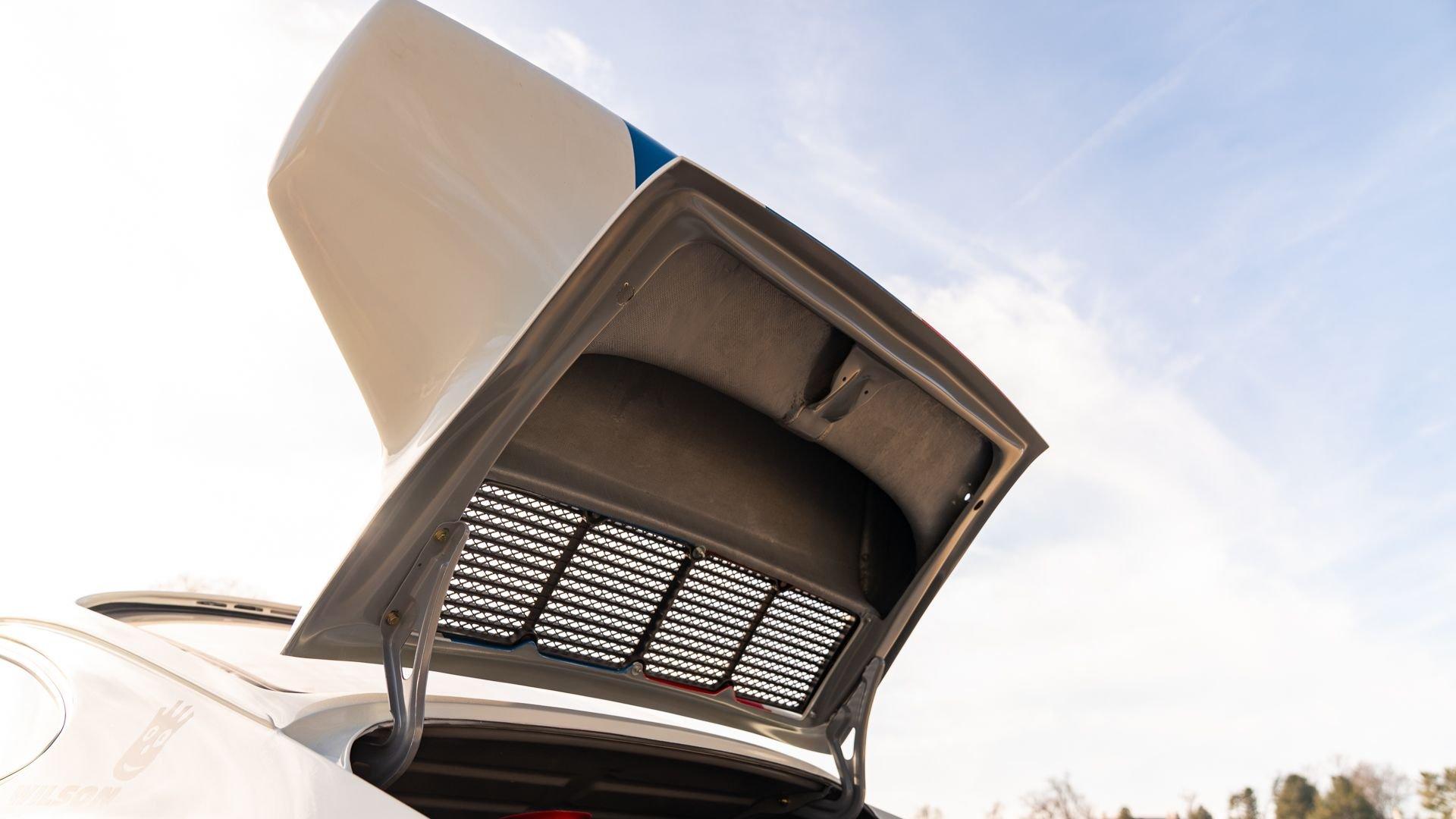 The car underwent a complete, ground-up restoration by the talented team at Gunnar between 2008 and 2016. The RSR body was fully stripped, blasted, and tidied before a fresh coat of white paint followed by Brumos' famous red and blue stripes. It features a fully overhauled Type 930/60 3.2-liter short-stroke twin-plug flat-six that breathes through a motorsport slide valve mechanically-injected induction system and exhales through a megaphone exhaust. The 915 gearbox was rebuilt, along with the RSR's coil-over suspension and large RSR-style brakes framed by lightweight five-spoke wheels with proper center-lock hubs. A new seat, harnesses, fuel cell with quick-fill, and fire suppression system completed the immediate build, which tipped the scales at 1,890 pounds.