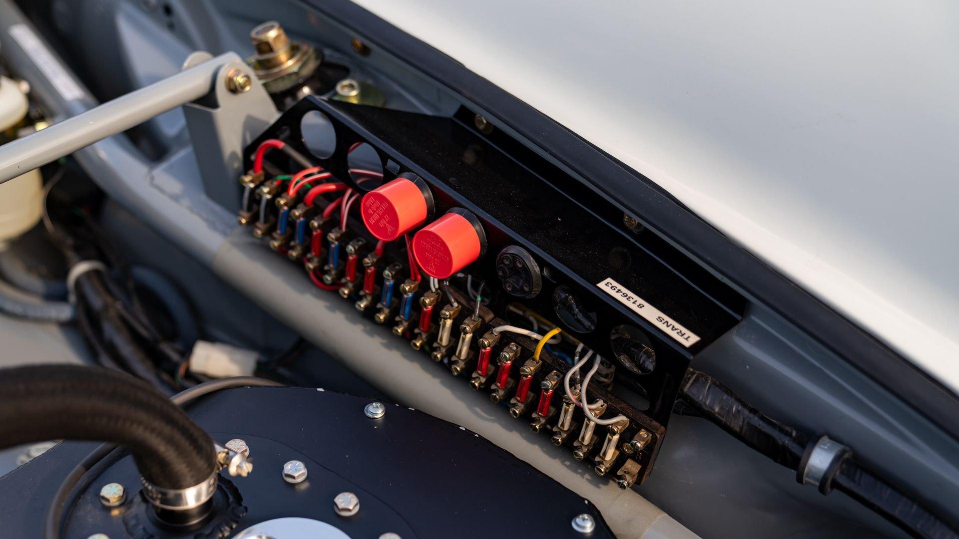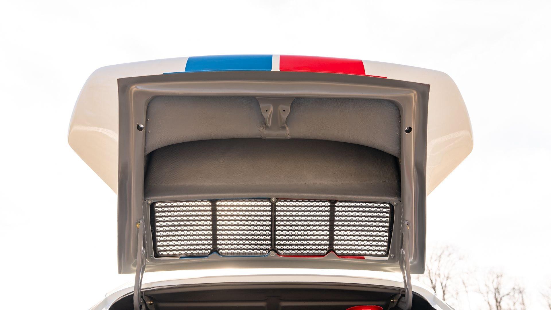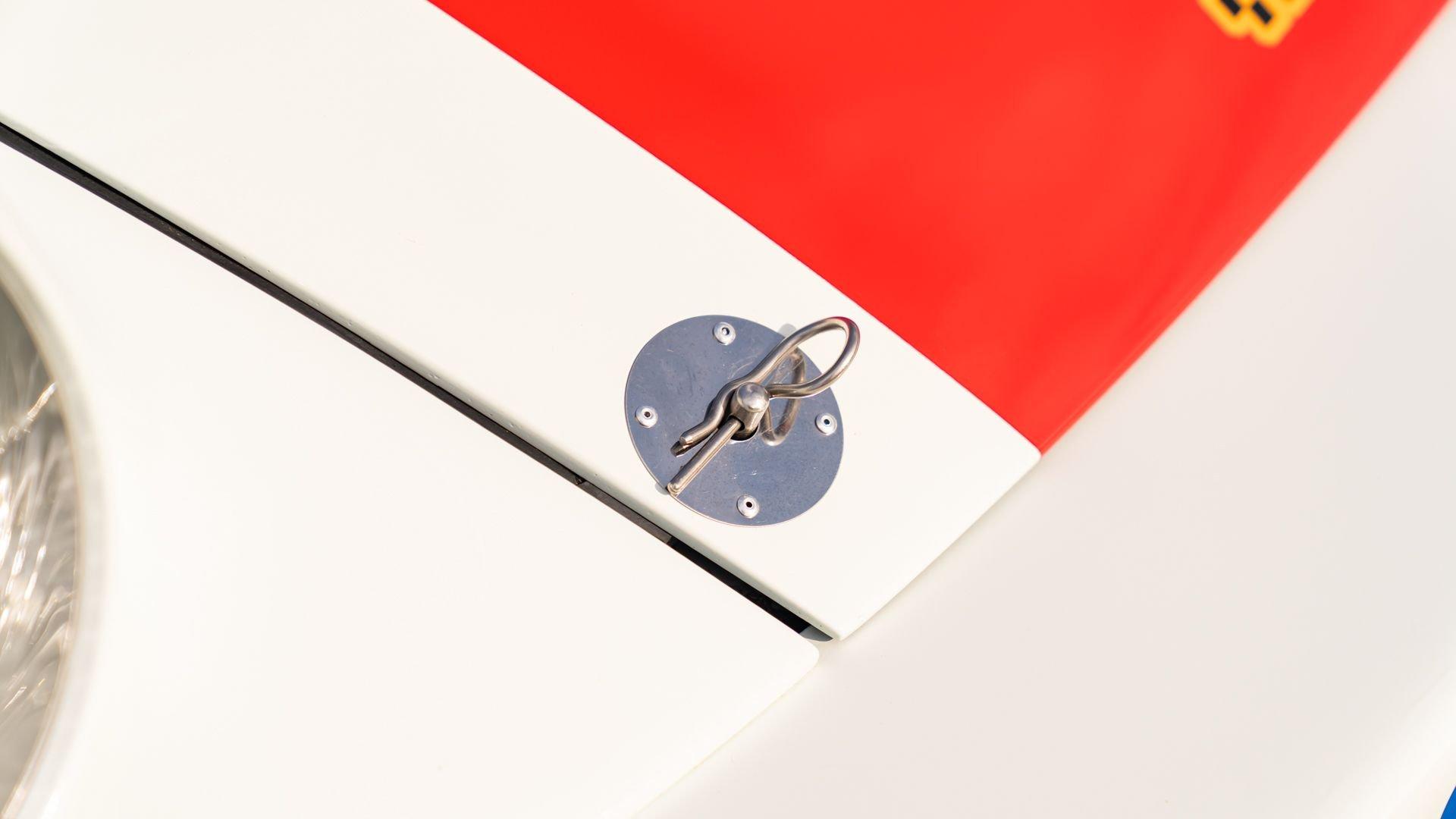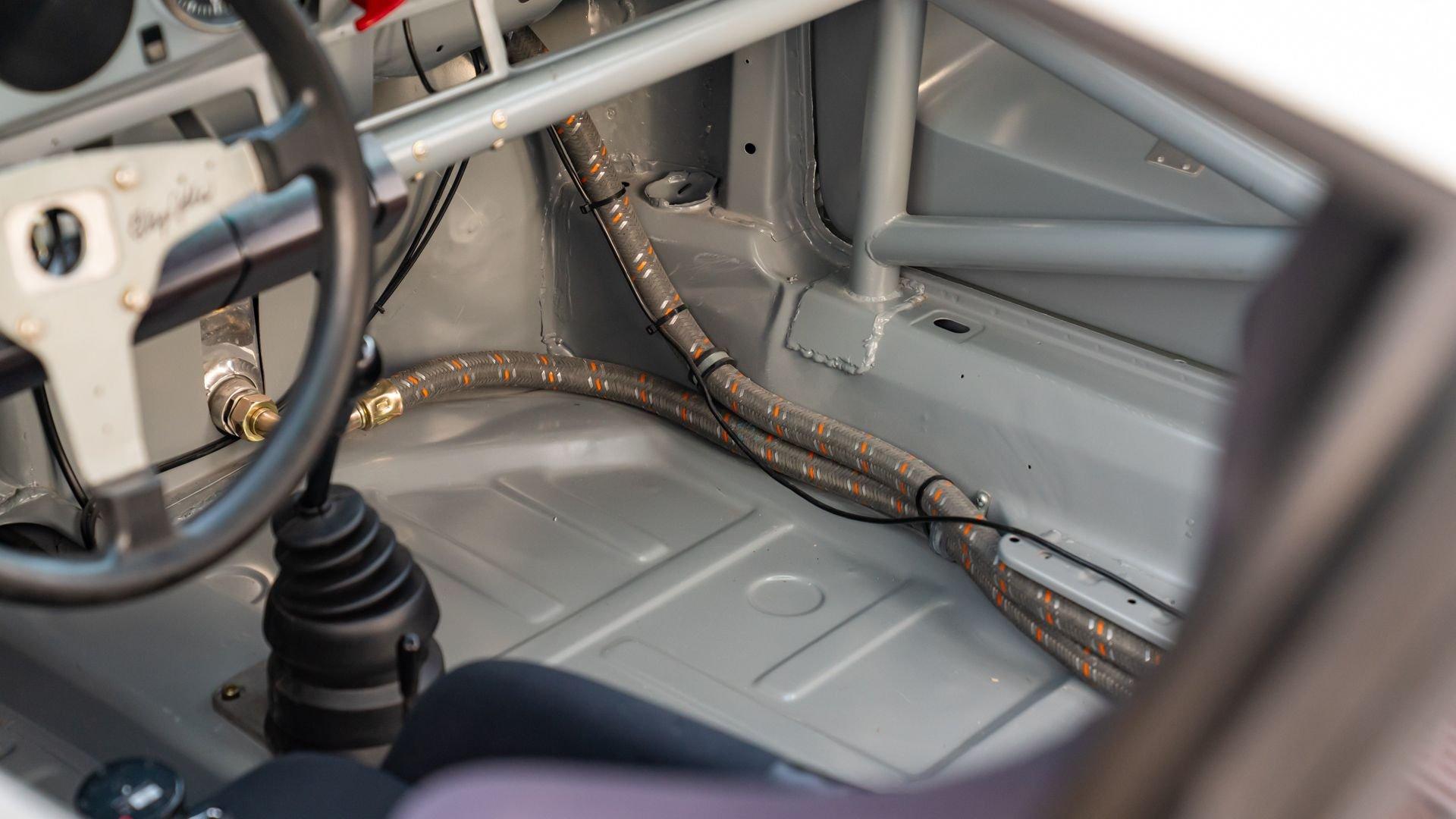 The car underwent a complete, ground-up restoration by the talented team at Gunnar between 2008 and 2016. The RSR body was fully stripped, blasted, and tidied before a fresh coat of white paint followed by Brumos' famous red and blue stripes. It features a fully overhauled Type 930/60 3.2-liter short-stroke twin-plug flat-six that breathes through a motorsport slide valve mechanically-injected induction system and exhales through a megaphone exhaust. The 915 gearbox was rebuilt, along with the RSR's coil-over suspension and large RSR-style brakes framed by lightweight five-spoke wheels with proper center-lock hubs. A new seat, harnesses, fuel cell with quick-fill, and fire suppression system completed the immediate build, which tipped the scales at 1,890 pounds.