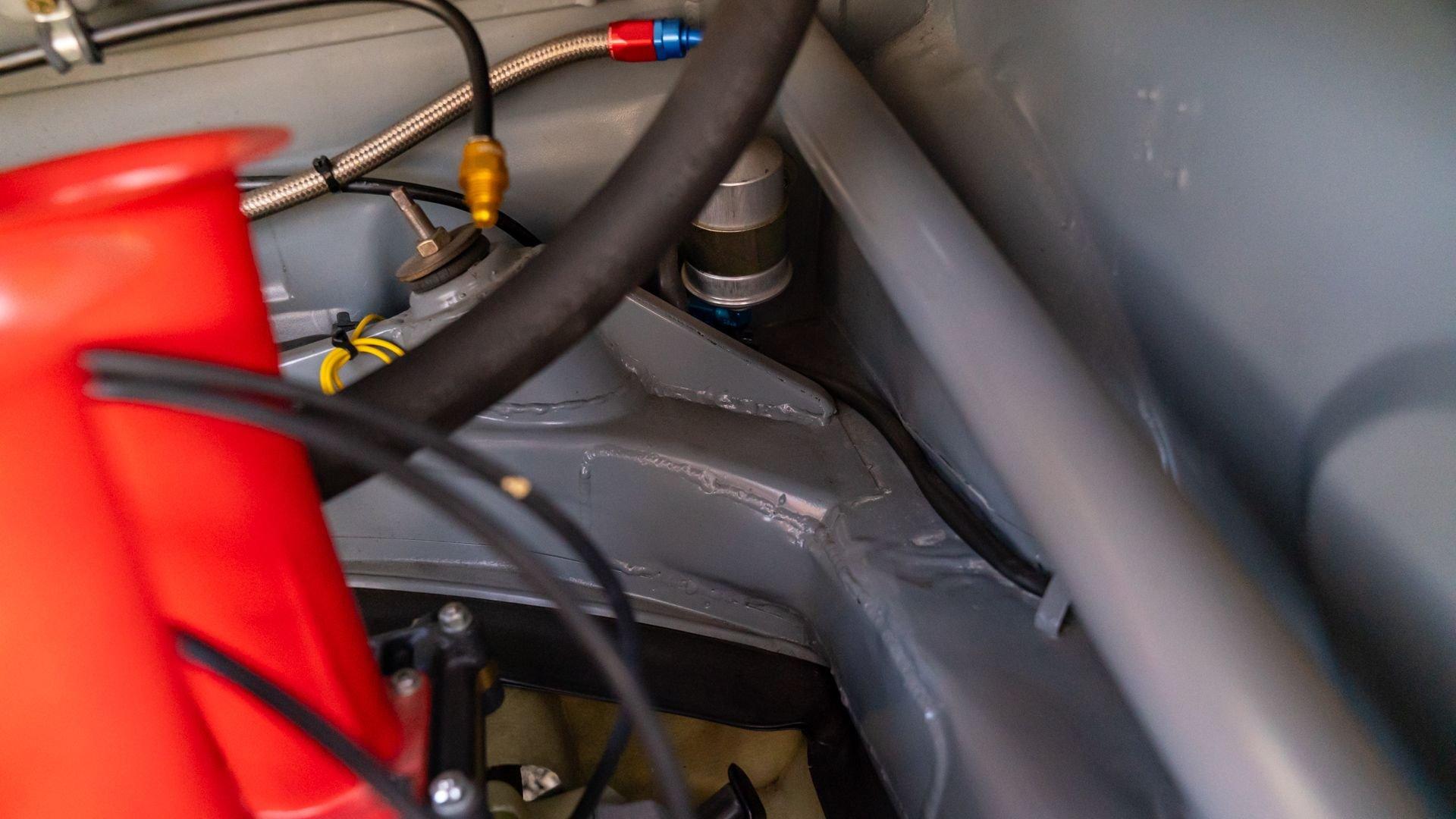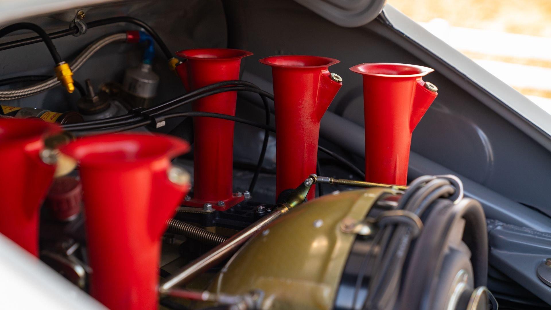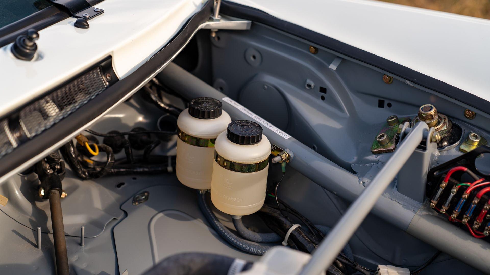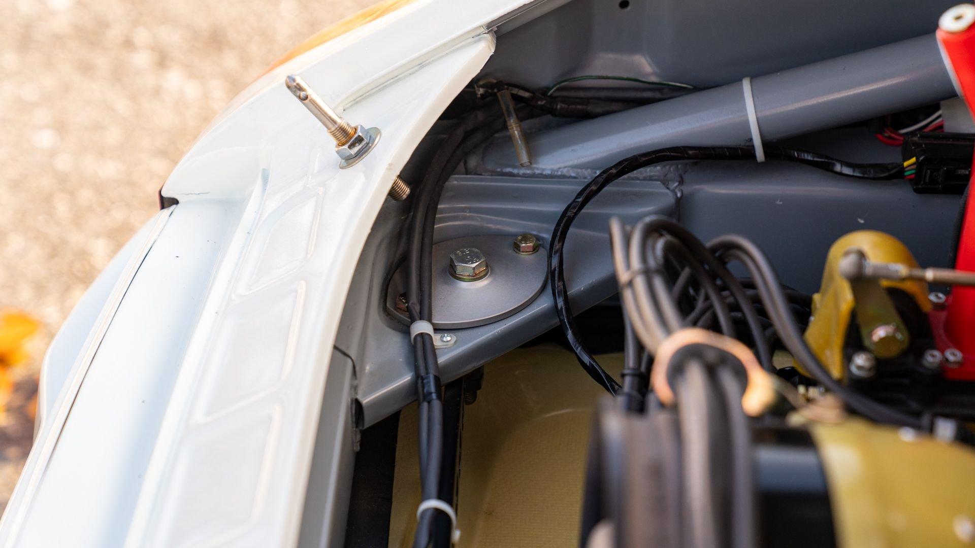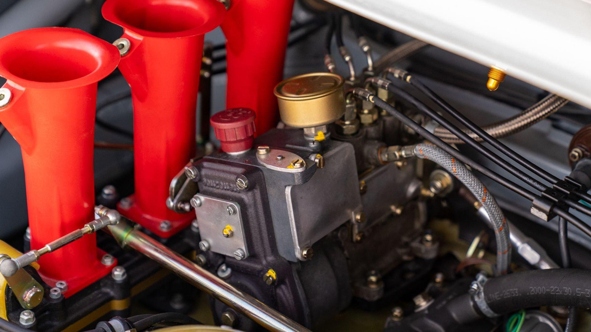 The car underwent a complete, ground-up restoration by the talented team at Gunnar between 2008 and 2016. The RSR body was fully stripped, blasted, and tidied before a fresh coat of white paint followed by Brumos' famous red and blue stripes. It features a fully overhauled Type 930/60 3.2-liter short-stroke twin-plug flat-six that breathes through a motorsport slide valve mechanically-injected induction system and exhales through a megaphone exhaust. The 915 gearbox was rebuilt, along with the RSR's coil-over suspension and large RSR-style brakes framed by lightweight five-spoke wheels with proper center-lock hubs. A new seat, harnesses, fuel cell with quick-fill, and fire suppression system completed the immediate build, which tipped the scales at 1,890 pounds.