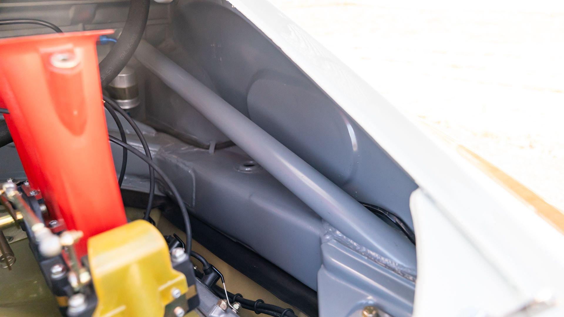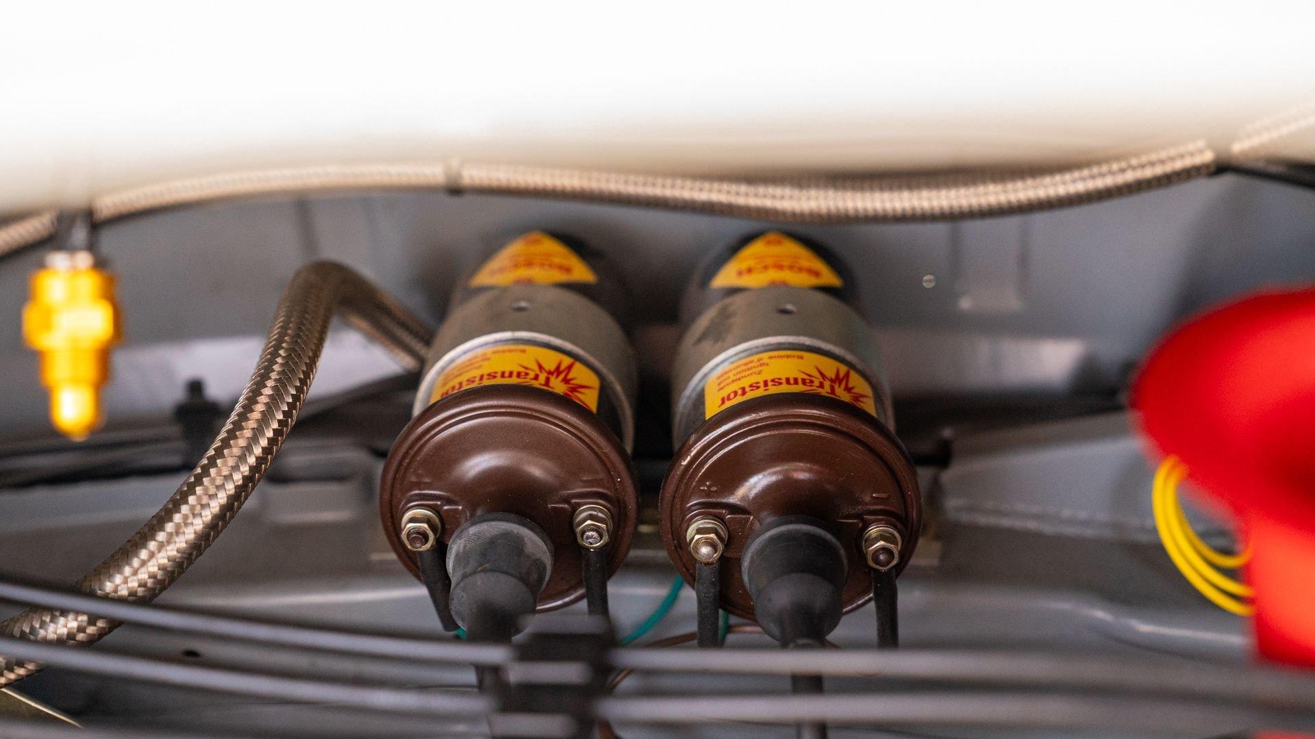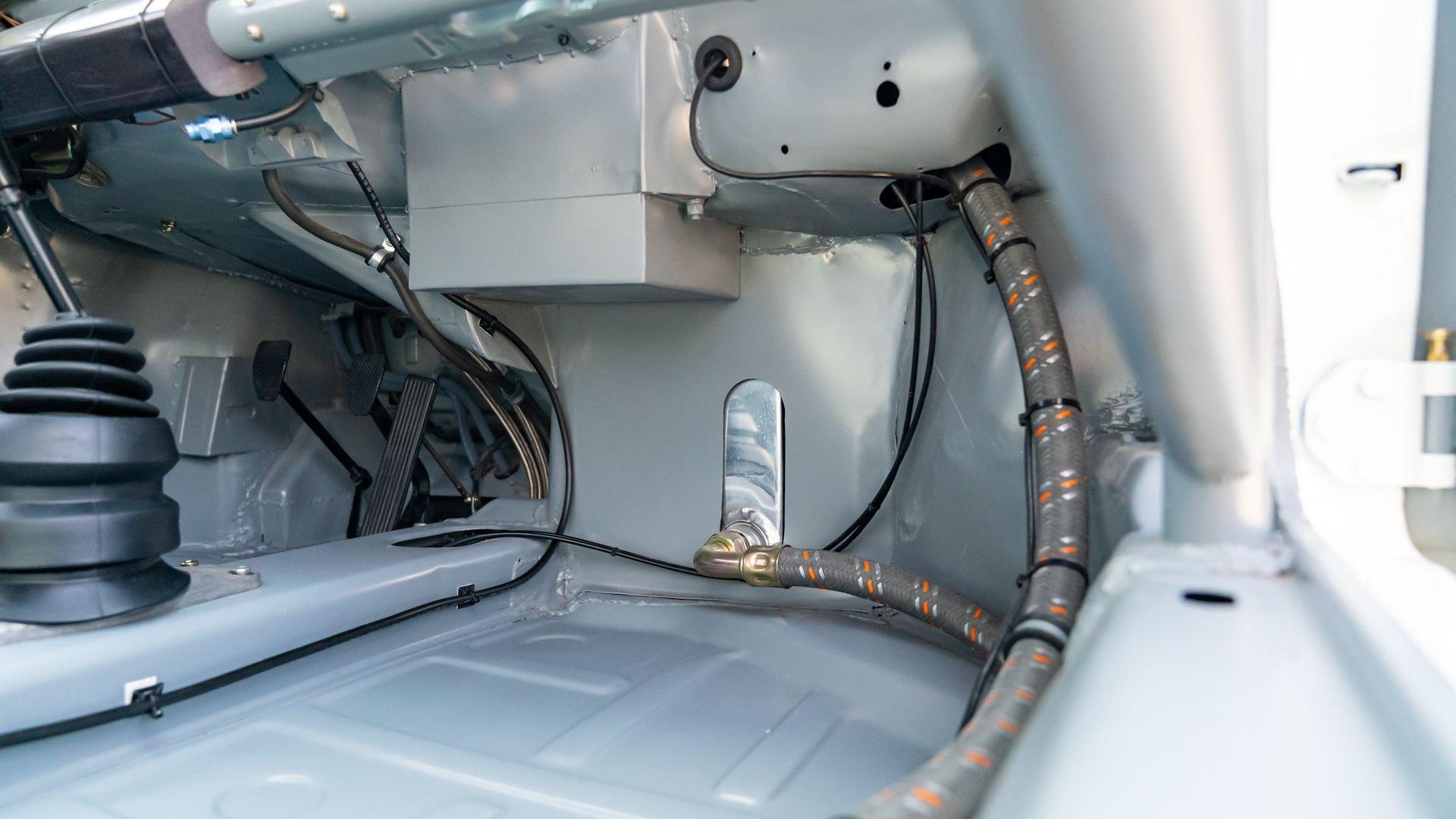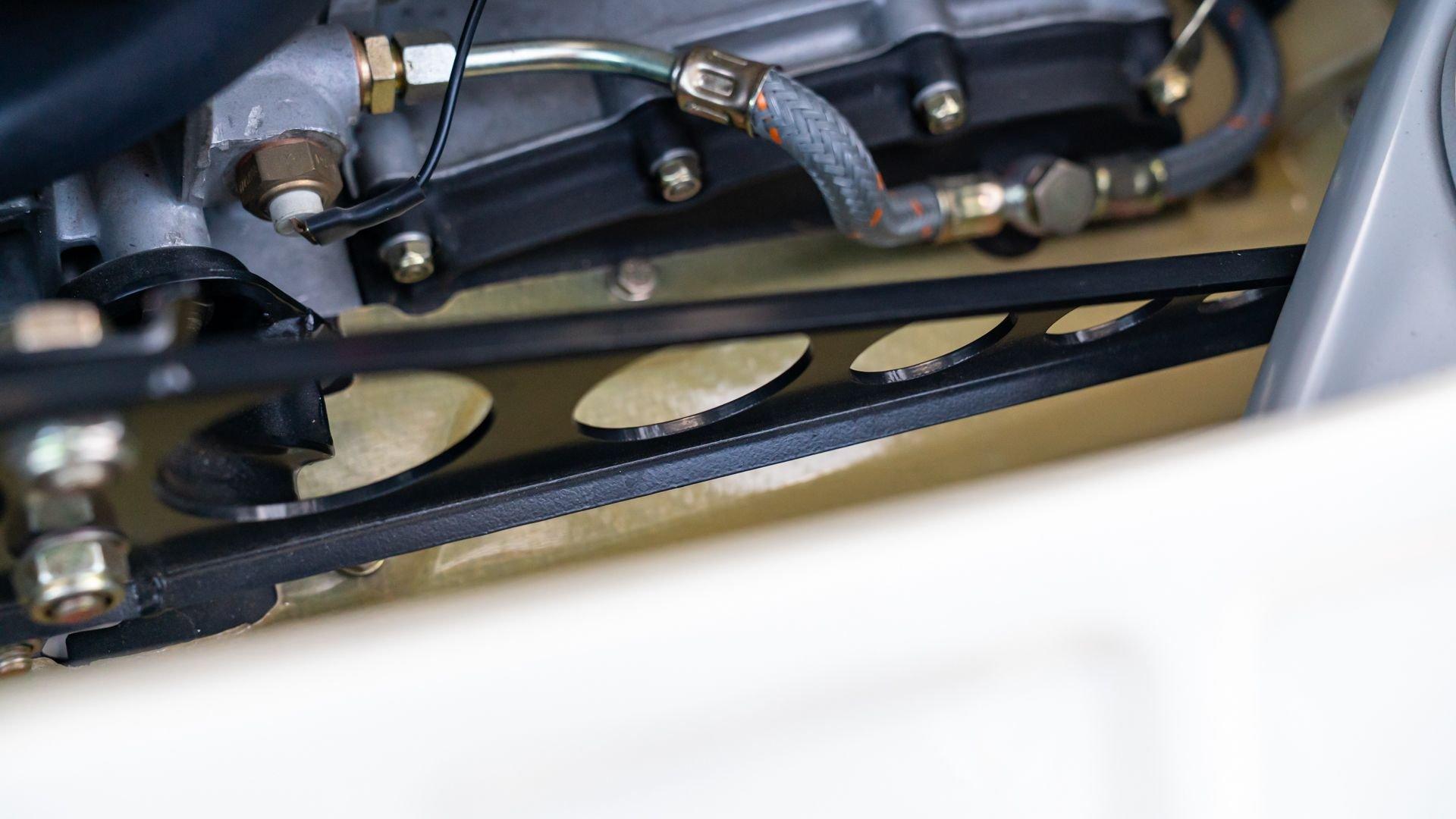The car underwent a complete, ground-up restoration by the talented team at Gunnar between 2008 and 2016. The RSR body was fully stripped, blasted, and tidied before a fresh coat of white paint followed by Brumos' famous red and blue stripes. It features a fully overhauled Type 930/60 3.2-liter short-stroke twin-plug flat-six that breathes through a motorsport slide valve mechanically-injected induction system and exhales through a megaphone exhaust. The 915 gearbox was rebuilt, along with the RSR's coil-over suspension and large RSR-style brakes framed by lightweight five-spoke wheels with proper center-lock hubs. A new seat, harnesses, fuel cell with quick-fill, and fire suppression system completed the immediate build, which tipped the scales at 1,890 pounds.