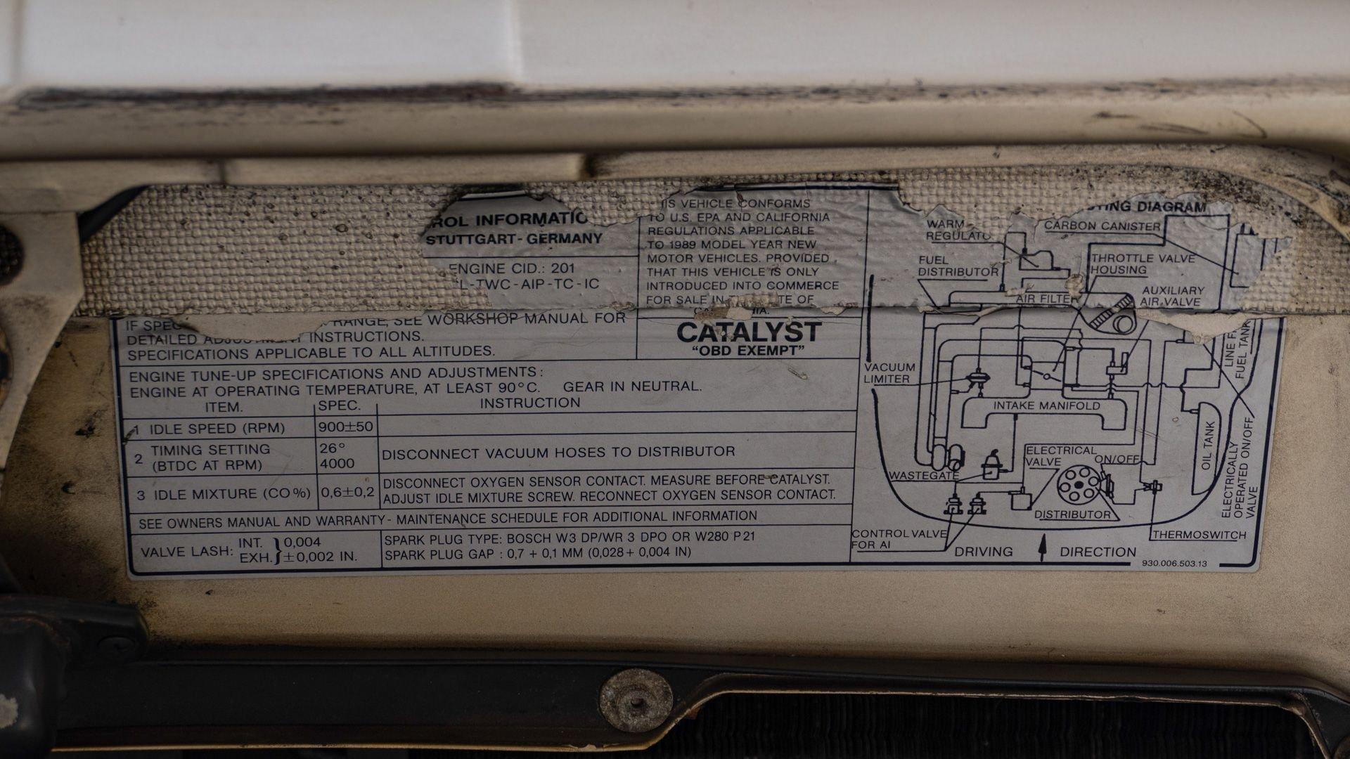 Under the care of a single Southern California owner for its entire life, this Turbo Cabriolet has been well preserved not only by its favorable climate but also by the owner's exceptional and diligent care. This includes the installation of a new fabric soft top in cira 2018 along with recently installed Bridgestone Potenza Sport tires. The car has been looked after by Dave Bouzaglou at TRE Motorsports since 1990 and, more recently, by Specialized Porsche of Riverside, California, who completed a major service of the fuel system in January 2023, totaling nearly $11,000. This work included replacing the CIS fuel distributor, warm-up regulator, oxygen sensor, all six fuel injectors, and several fuel hoses, flushing the brake and clutch fluids, and installing a new engine pad.