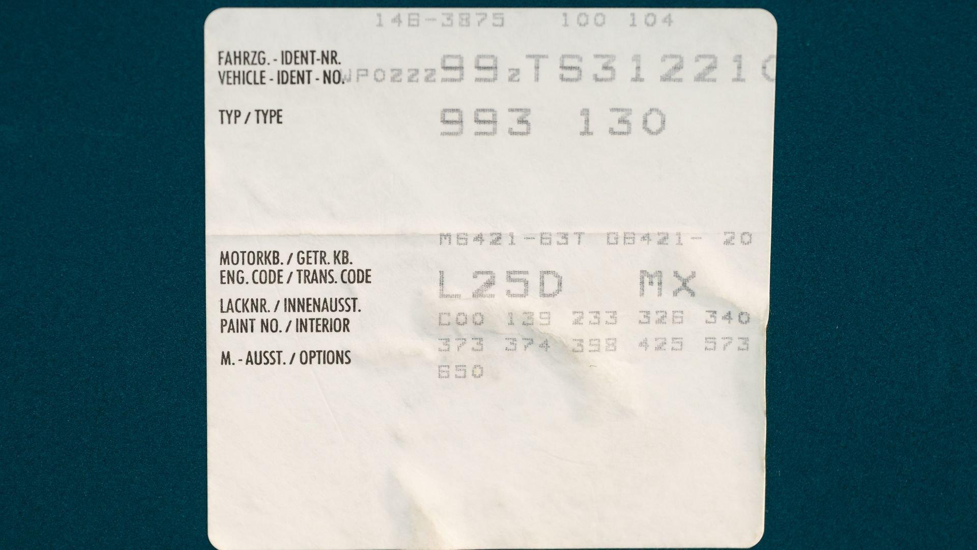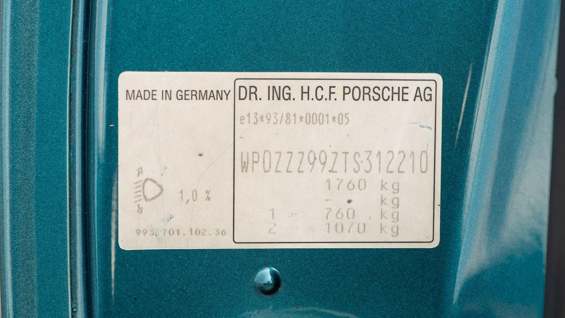 According to its service book, the original owner chose to accept delivery of their Turquoise Metallic Carrera 4 with pomp and circumstance at Porsche's Stuttgart-Zuffenhausen factory in January 1996. Its original Garantie & Wartung service book features numerous stamps, with service only conducted at the factory in Zuffenhausen, from its time in Germany from new until February 2001. A copy of its German Fahrzeugbrief records a move to France by 2002.