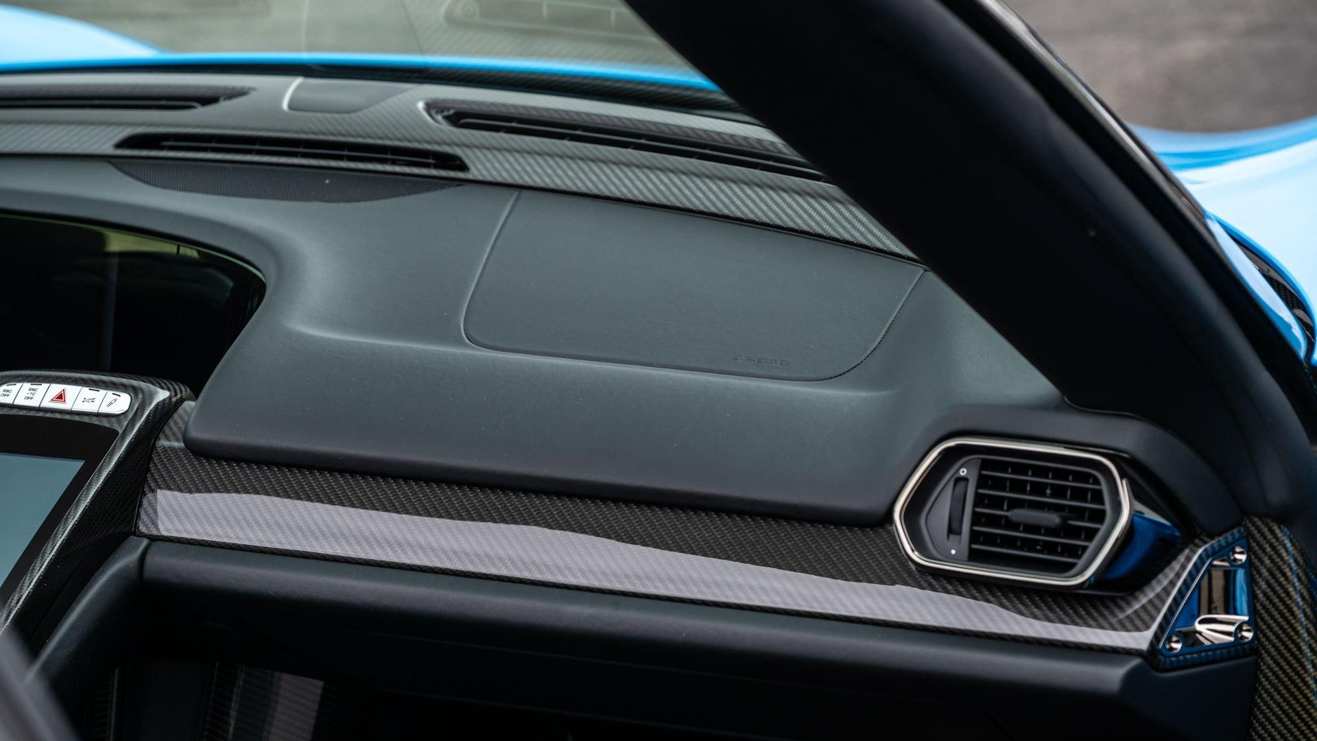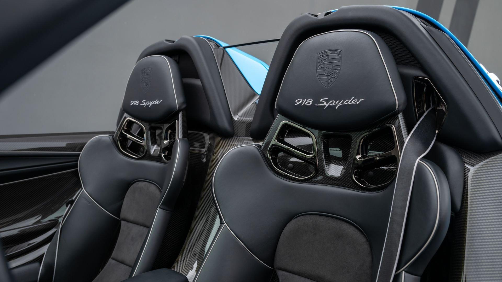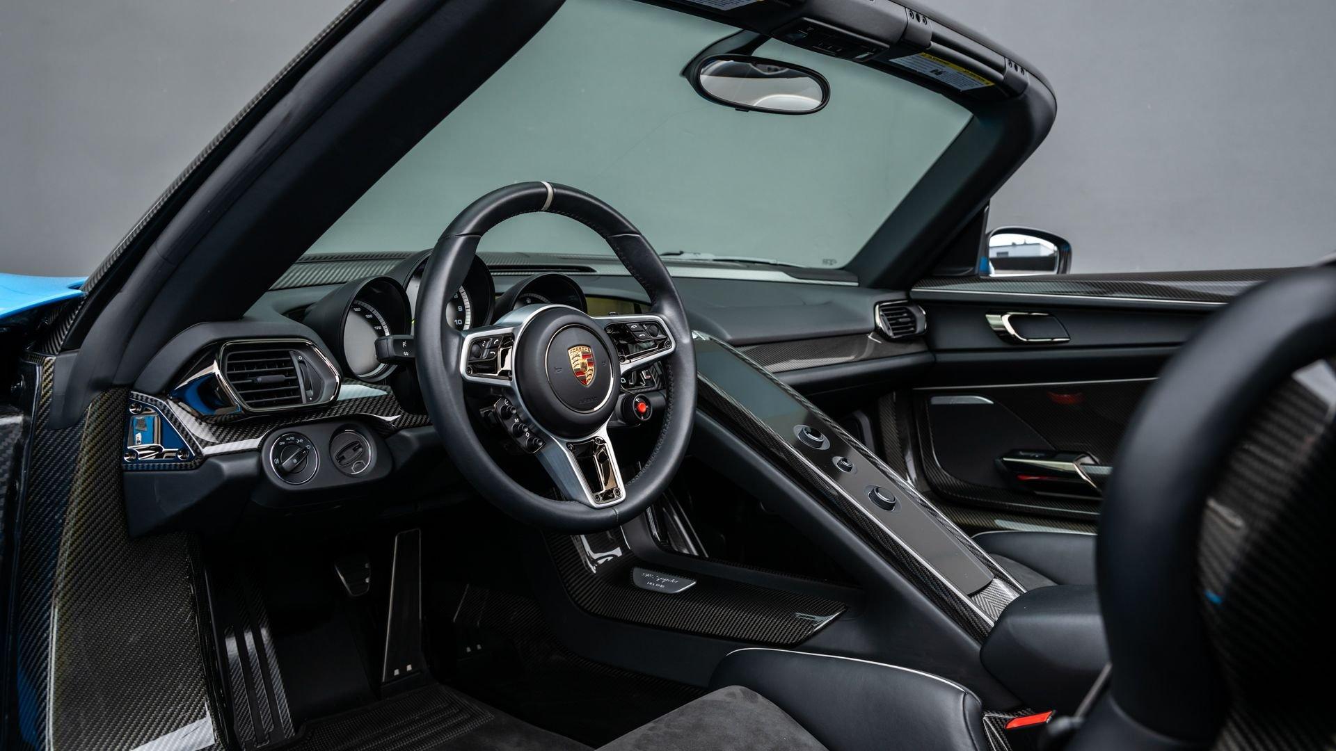 Finished in Paint to Sample (PTS) Riviera Blue, a non-metallic hue described by Porsche as “vibrant shade of light blue inspired by the brilliant blue waters of the Italian and French Riviera coasts” the refreshing color is a perfect match for the Spyder's removable carbon fiber roof panels that encourage al fresco driving. Interestingly, while in high demand today few chose the $21,000 option in the 918 era. Deeper research into the model reveals that only four North American 918 Spyders feature the rare 1990s Riviera hue. Even fewer-just three-were equipped as this example is with the optional weight-saving $84,000 Weissach Package that helped shed 90 pounds through the use of titanium bolts, lighter brakes, and carbon fiber aerodynamic enhancements, reducing the total weight to 3,616 pounds. Furthermore, this is the only example in PTS Riviera Blue selected with a Black interior with Silver piping.