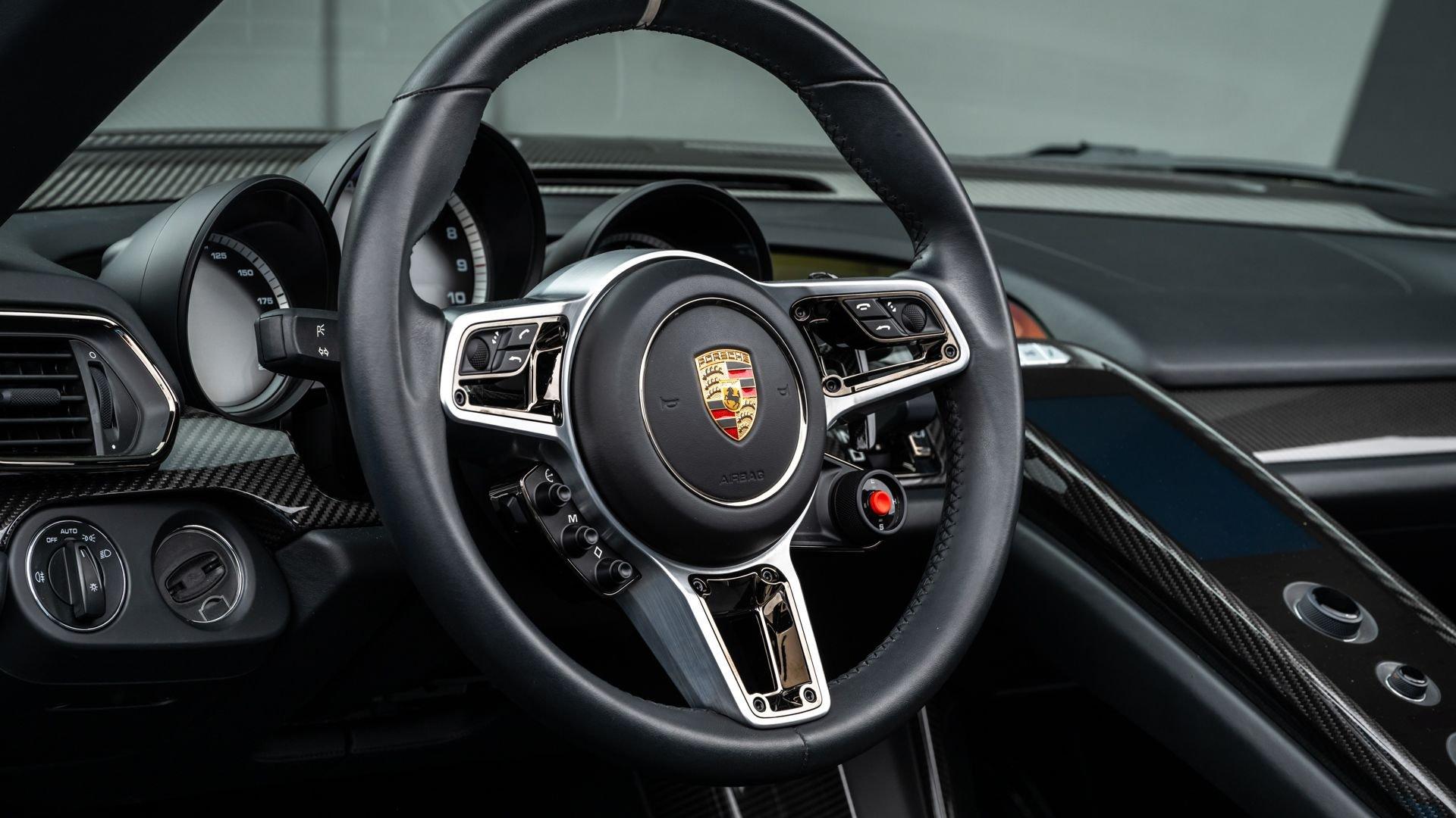 Even if the performance facts and figures produced by the 918 Spyder are well known by now, they continue to astonish. A mid-engine 4.6-liter, dry sump V8 combined with two electric motors, one each driving front and rear wheels produces a total output of 887 horsepower at 8,500 rpm and 944 lb-ft of torque in seventh gear. That power is transmitted through a lightning-fast dual-clutch, seven-speed PDK transmission.