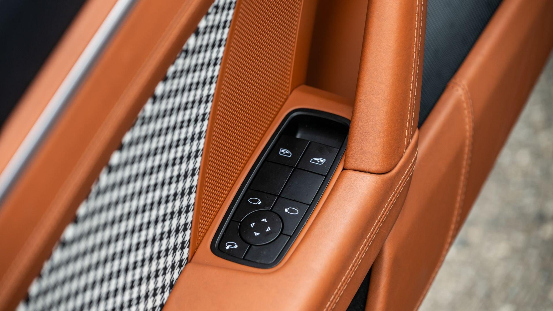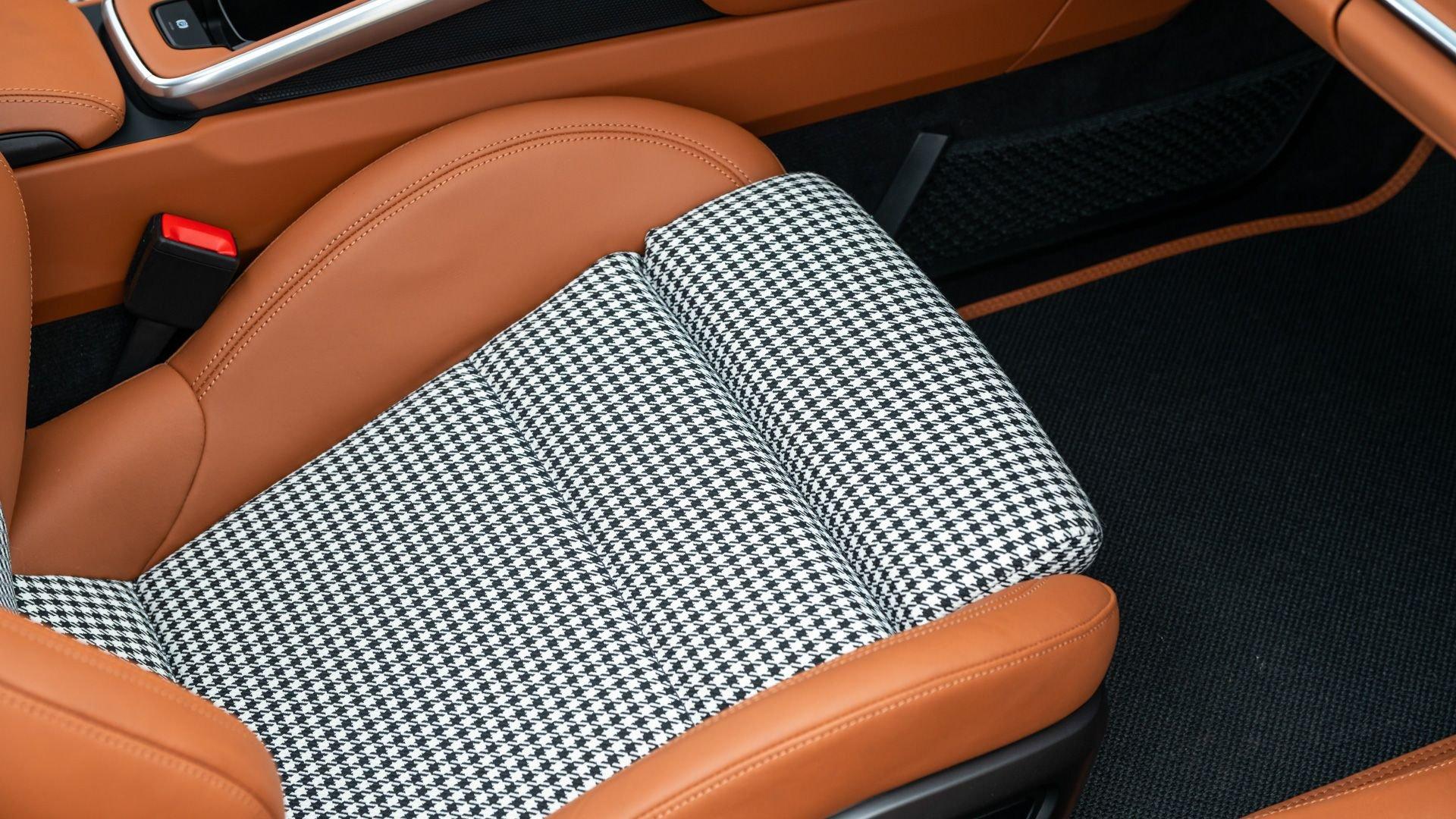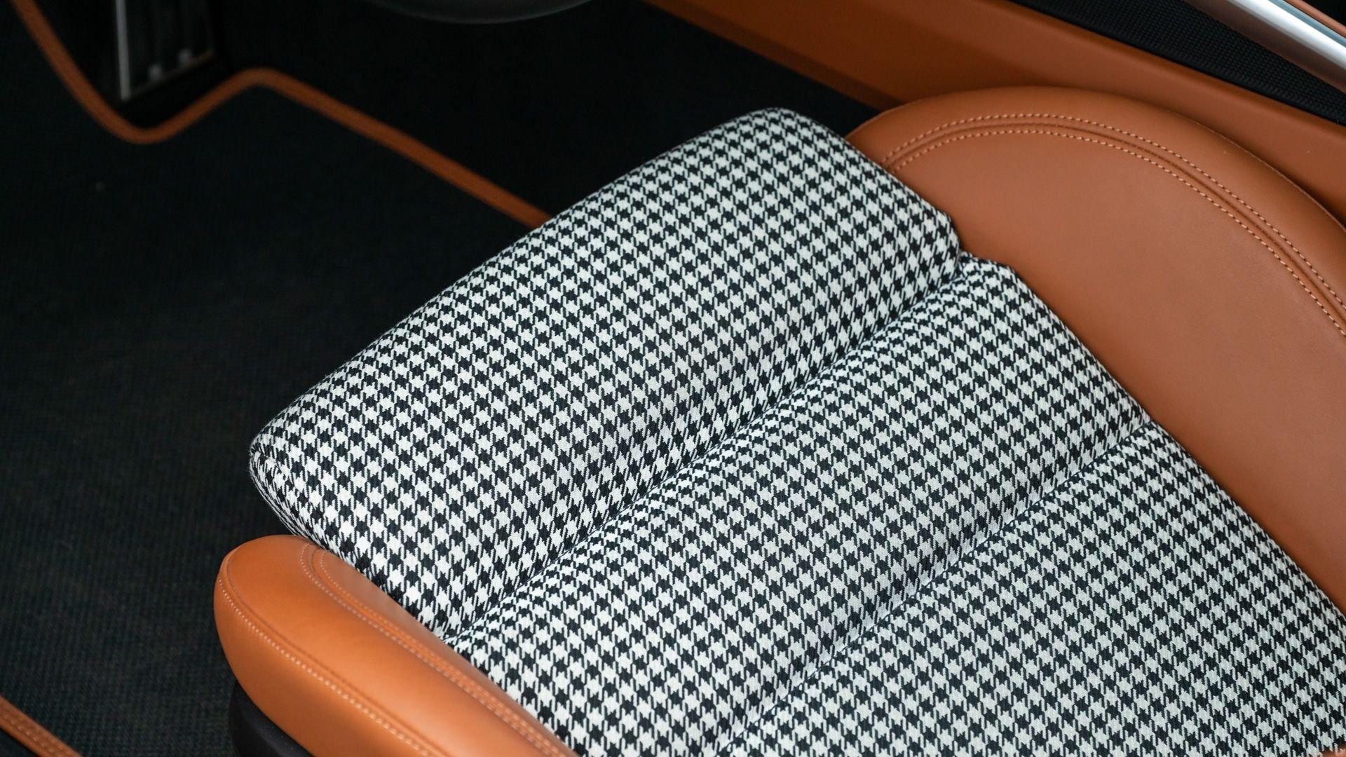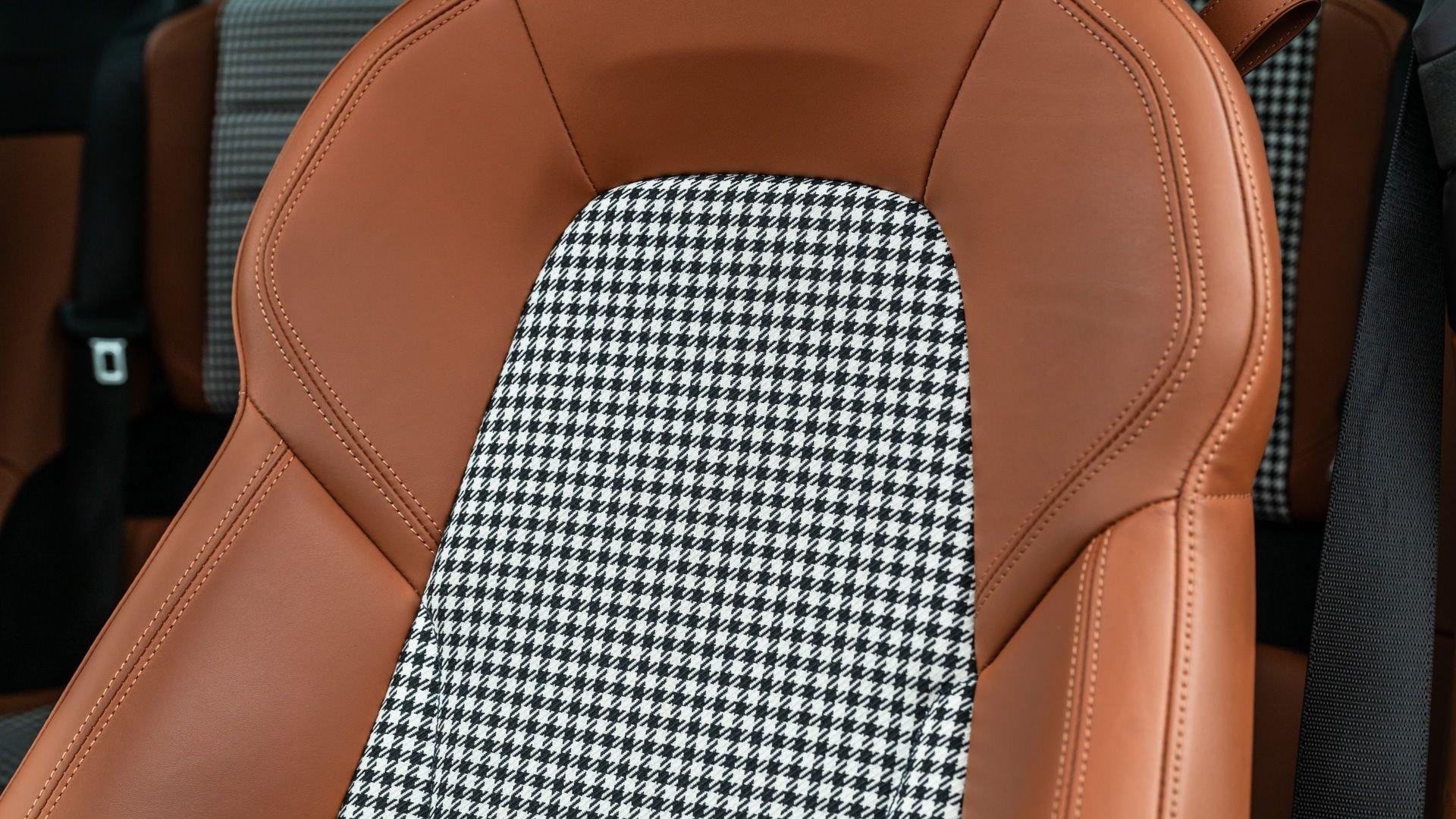 The interior features a number of desirable, extra cost selections as well, not least of which is the Classic Heritage Design Interior Package in Black and Semi-Aniline Classic Cognac leather and fabric Pepita houndstooth door panels and seat inserts. Extended Heritage Design Leather Package, Extended Door Panels in Leather, Burmester High-End Surround Sound System, Remote ParkAssist including Lane Change Assist and 3D Surround View are highlight options in the well specified interior that deftly balances modern and retro with aplomb.