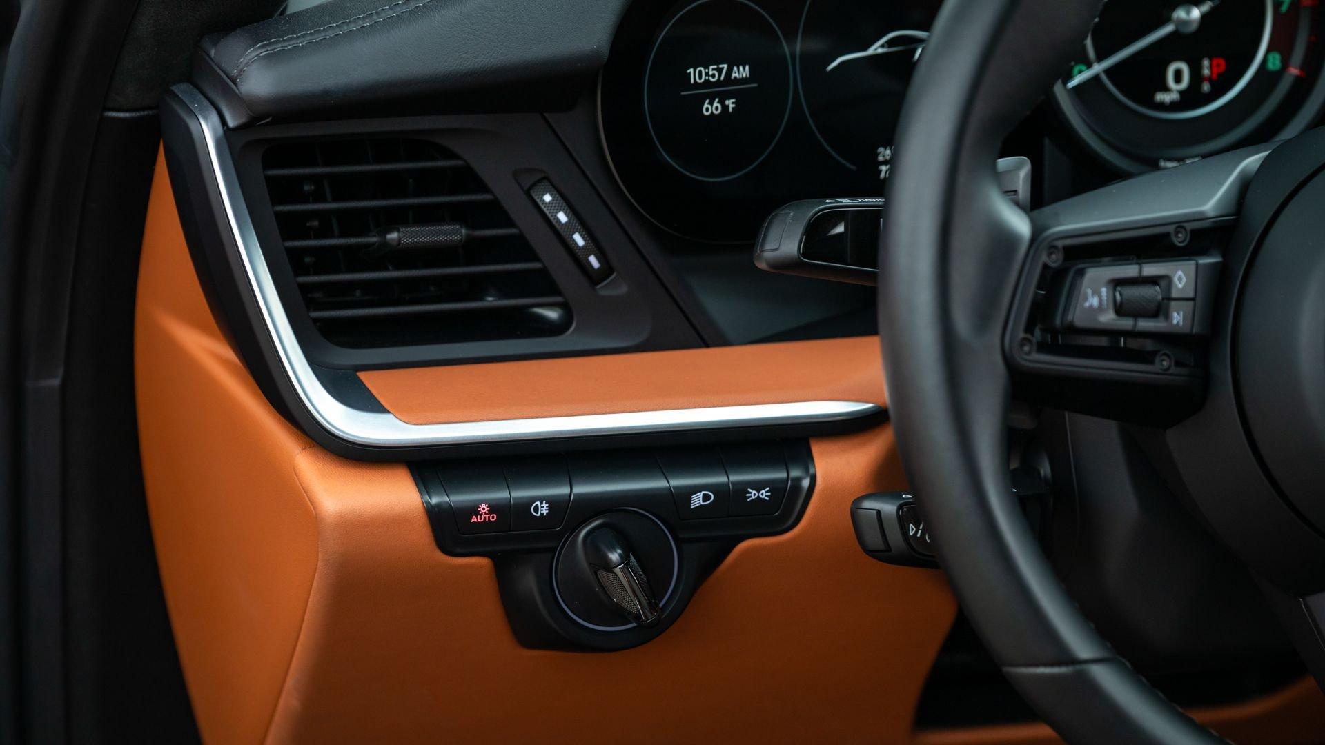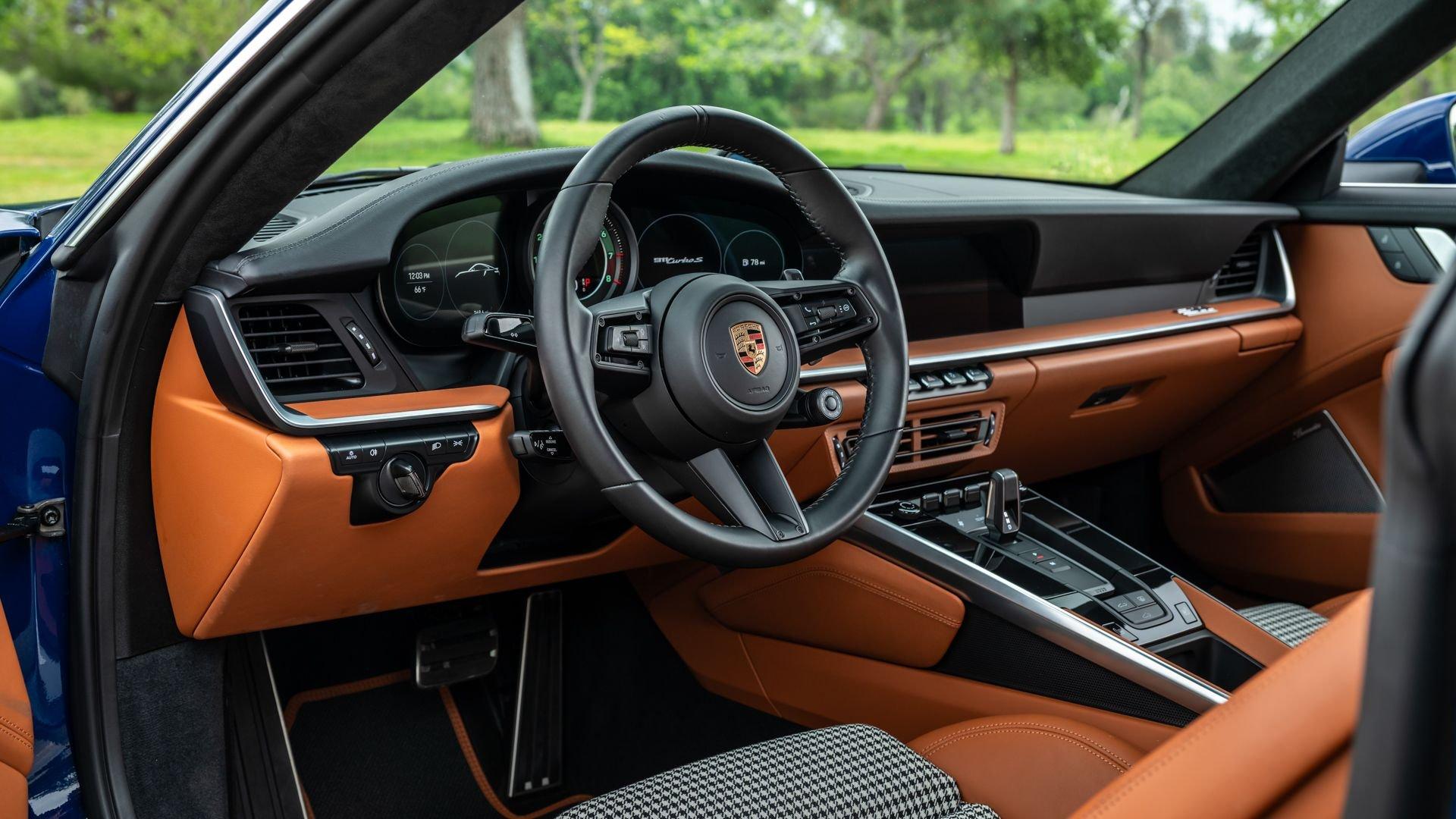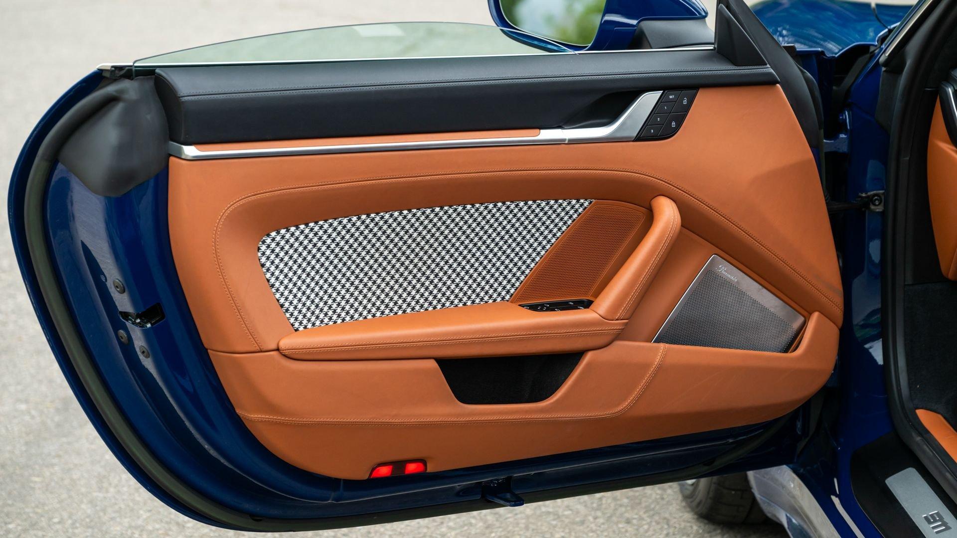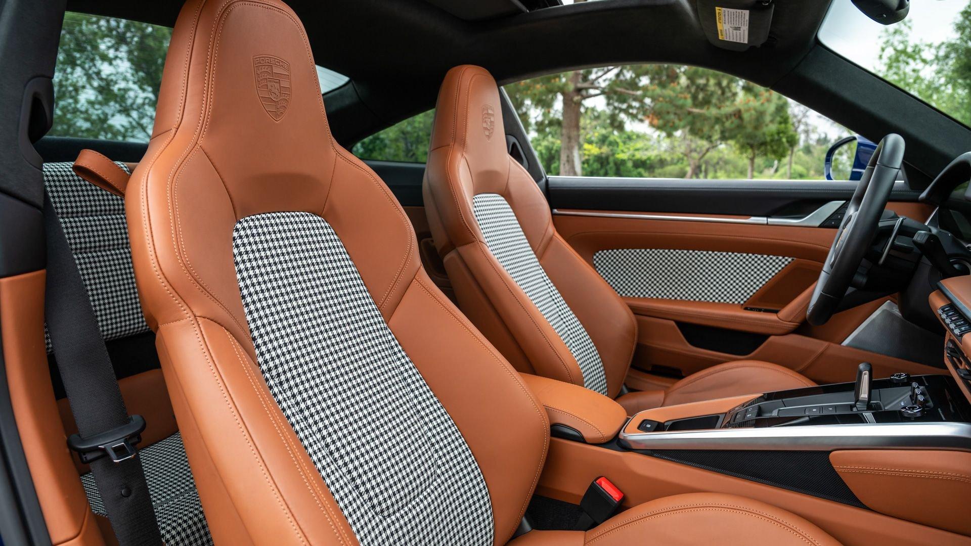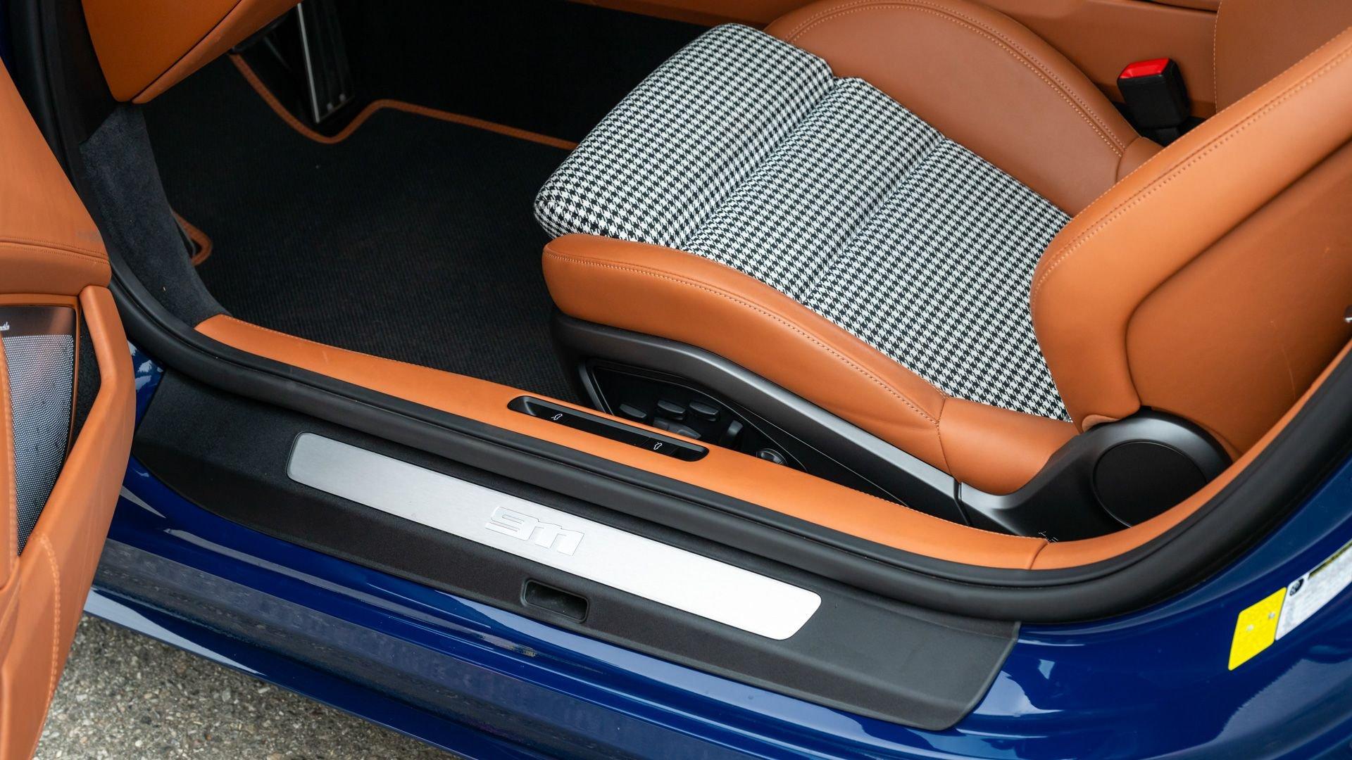 The interior features a number of desirable, extra cost selections as well, not least of which is the Classic Heritage Design Interior Package in Black and Semi-Aniline Classic Cognac leather and fabric Pepita houndstooth door panels and seat inserts. Extended Heritage Design Leather Package, Extended Door Panels in Leather, Burmester High-End Surround Sound System, Remote ParkAssist including Lane Change Assist and 3D Surround View are highlight options in the well specified interior that deftly balances modern and retro with aplomb.
