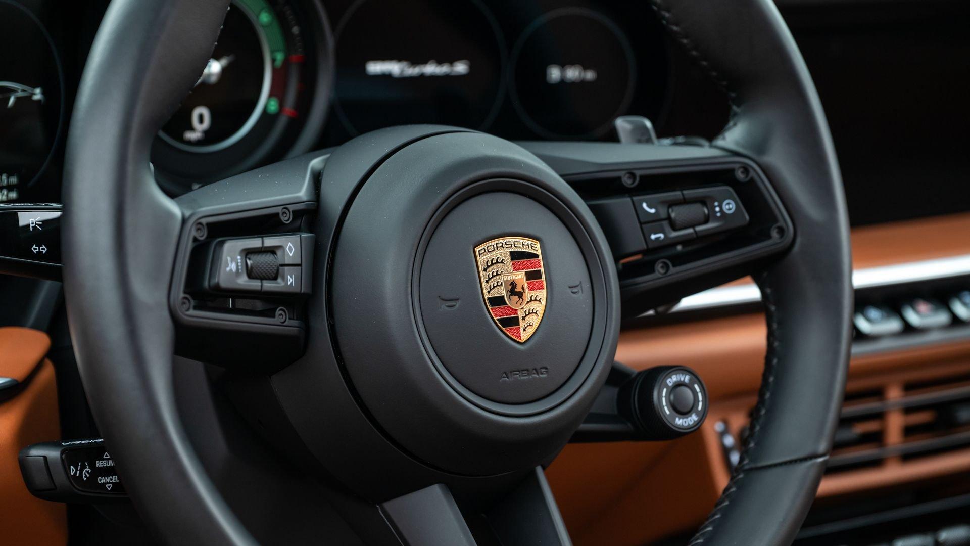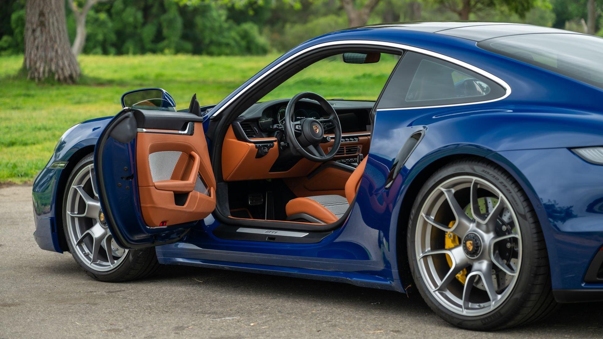 It is clear that the individual who placed order for this special 911 Turbo S did not stop at the $12,000 PTS option. Already highly exclusive, the exterior of this example features PASM Sport Suspension, Electric Slide/Tilt Sunroof in Glass, 911 Turbo S Exclusive Design Wheels, LED-Matrix Design Headlights in Black (PLDS+), Exclusive Design Taillights, Window Trim in Silver, Rear Side Air Intakes in High Gloss Black, and the highly desirable 911 Turbo SportDesign Package. These exterior selections pair exceptionally well with the coupled with the vintage non-metallic blue.