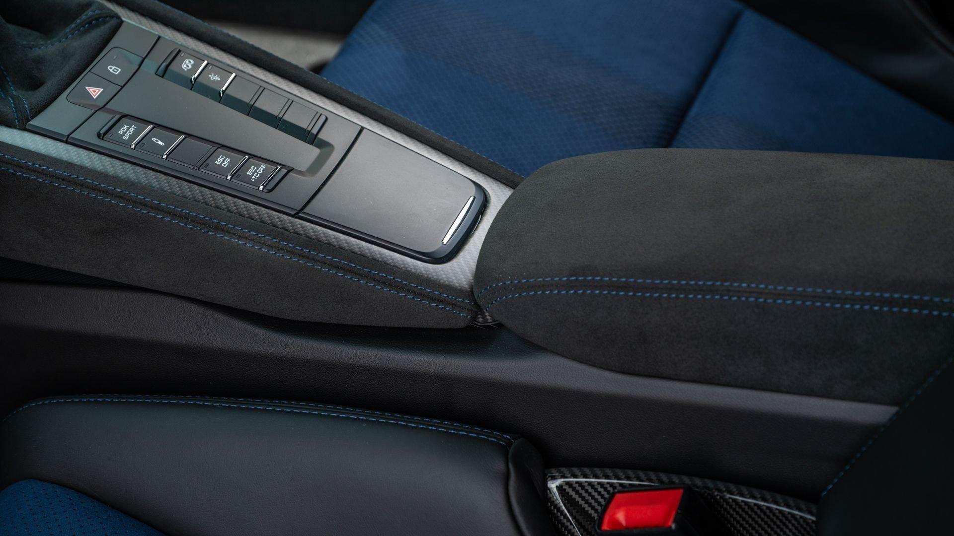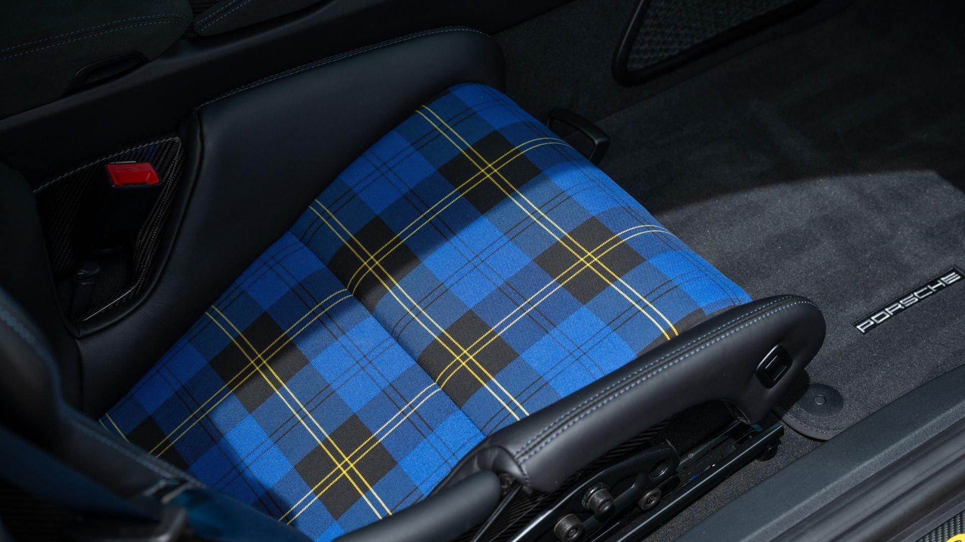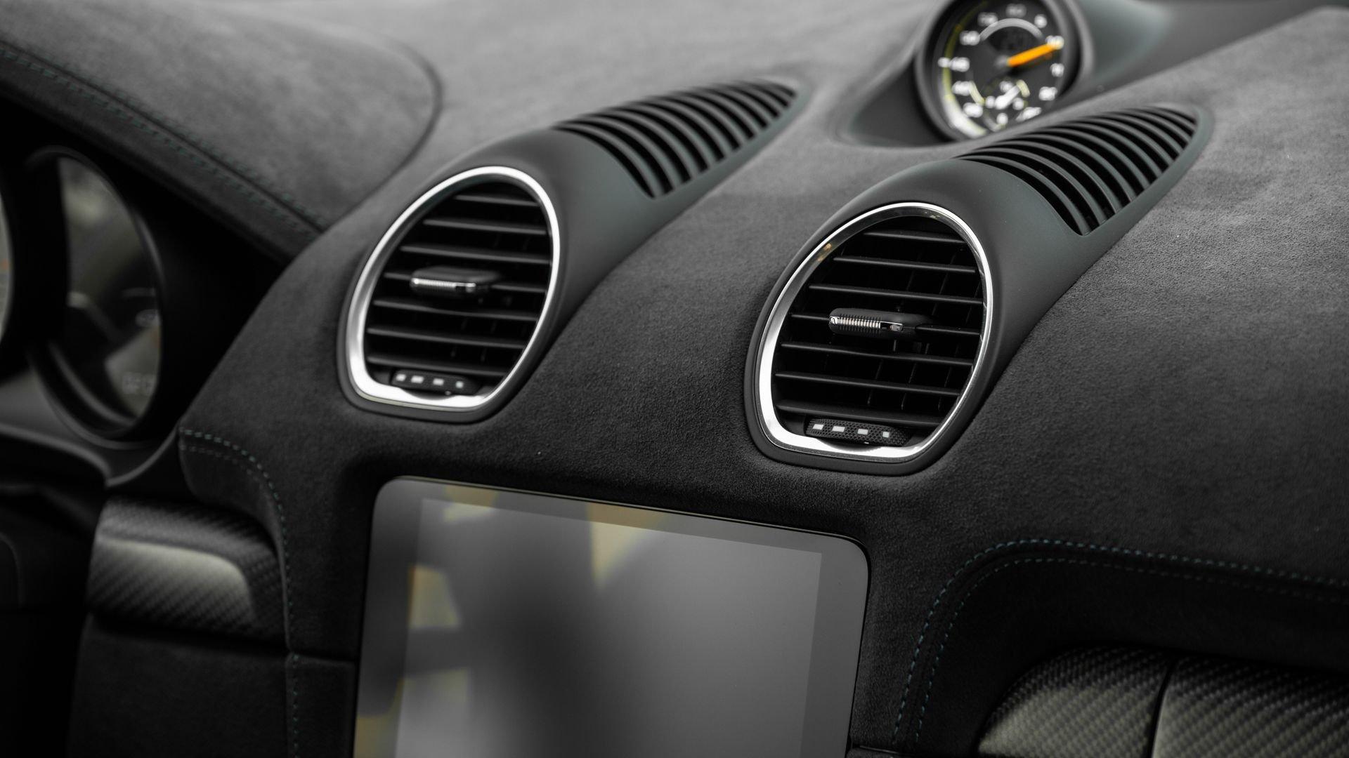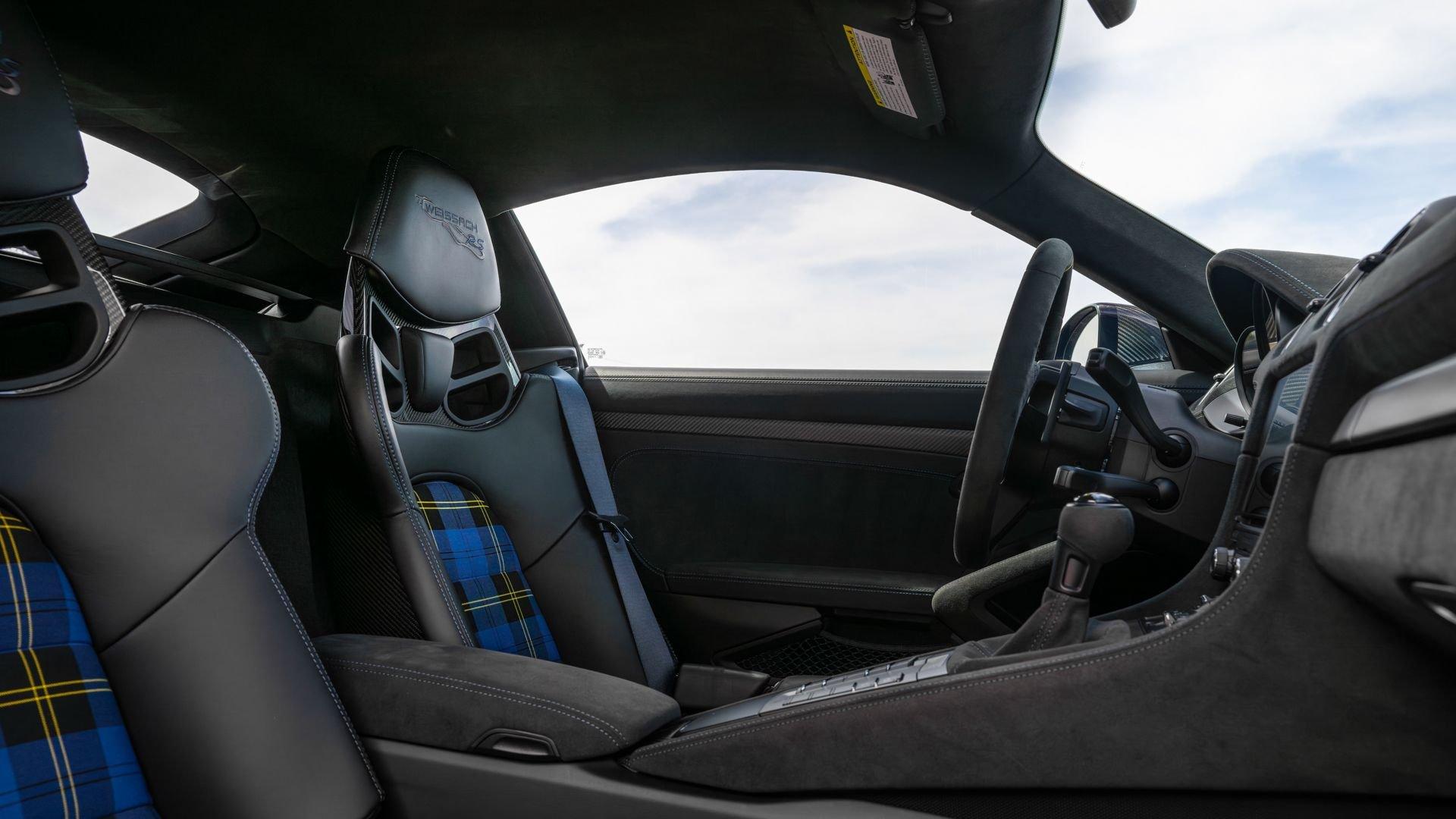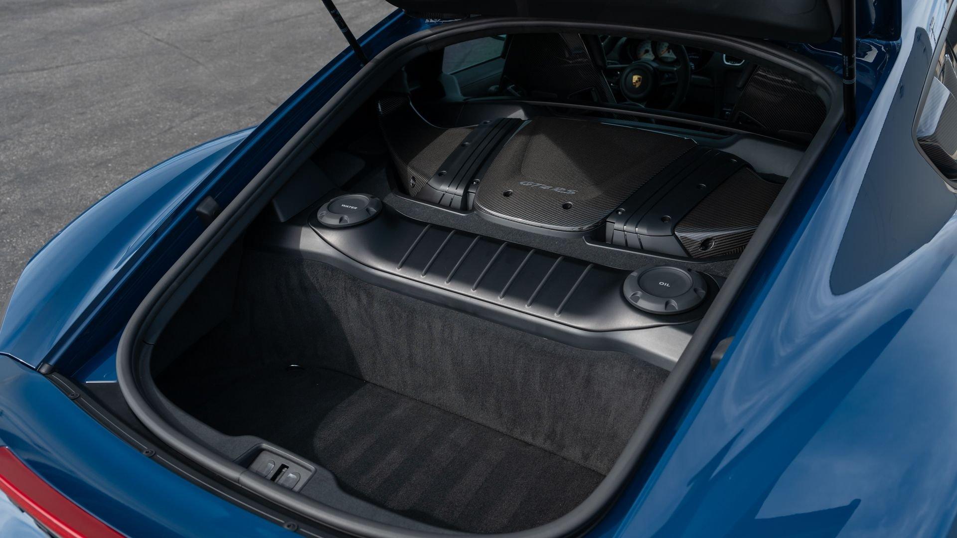Delivered new to Porsche Fresno, this Cayman GT4 RS is optioned with an incredible $64,000 in factory fitted extras. Most important is the $13,250 Weissach Package with exposed carbon fiber front trunk lid, side air intakes, exterior mirrors, and rear wing. Further factory enhancements include 20-inch forged Magnesium wheels for an additional $15,640 painted in Satin White Gold Metallic, Front Axle Lift, Porsche Ceramic Composite Brakes (PCCB), and more. The striking option sheet is matched by the equally striking Paint to Sample ($14,750) exterior color of azureblue356. The rarely seen PTS hue from Porsche's earliest days is described by Exclusive Manufaktur as a “rich medium blue with subtle greenish undertones” which is smartly matches to a Black leather and Race-Tex interior with Deep Sea Blue Deviated Stitching. This example is further enhanced by a Soul Performance exhaust system (with the factory exhaust system included) providing an intoxicating exhaust note and an additional set of color coordinated Madras-style seat inserts, this Cayman GT4 RS includes delivery items, its original window sticker, a VIN Analytics Report, and a clean CARFAX Vehicle History Report.