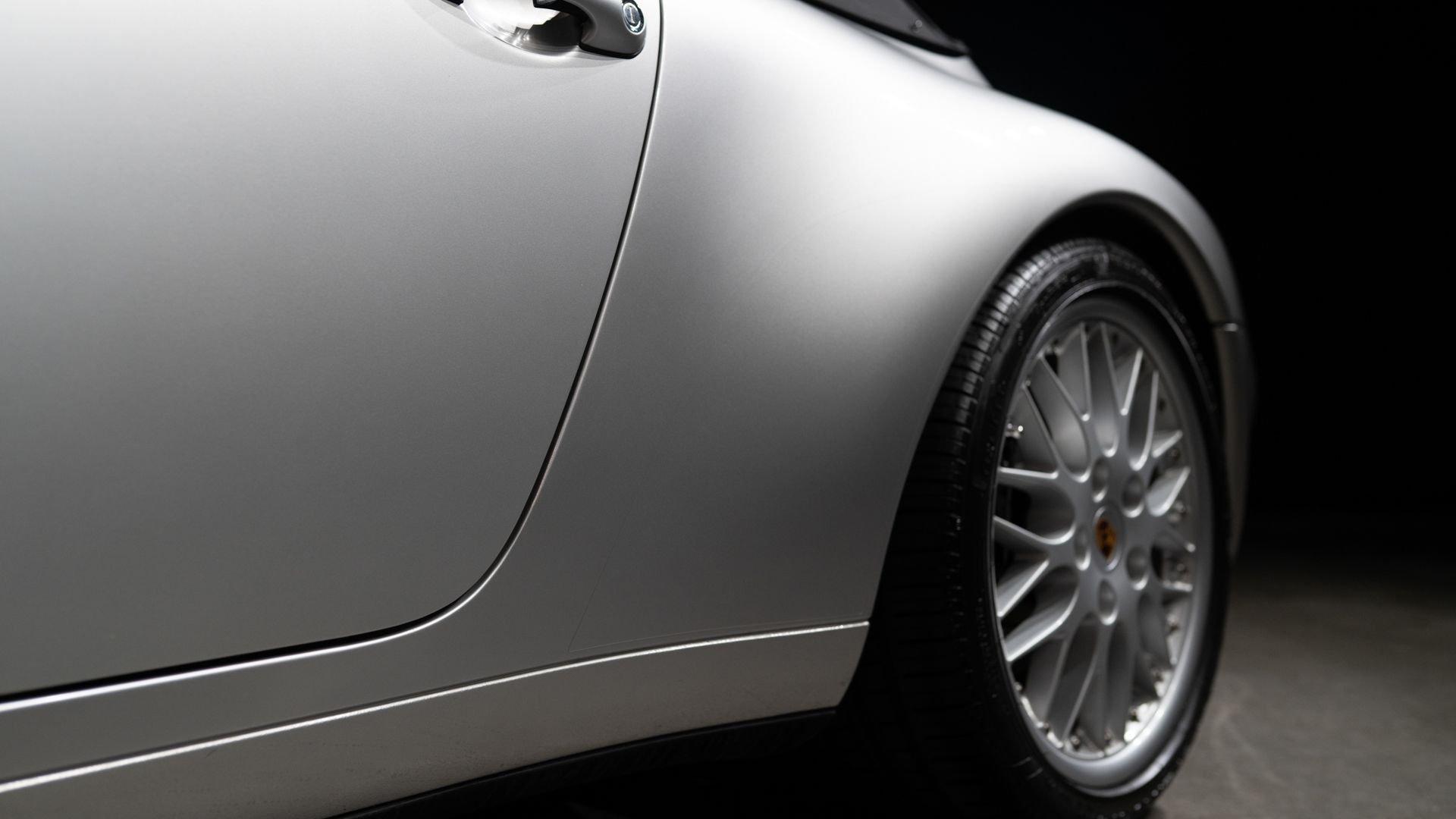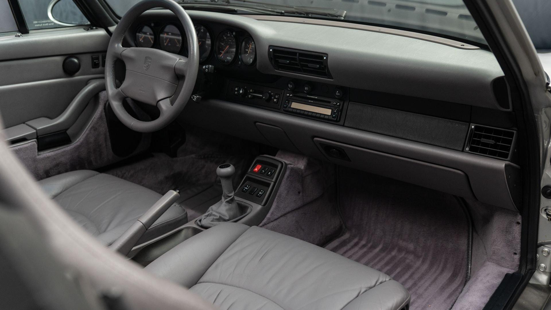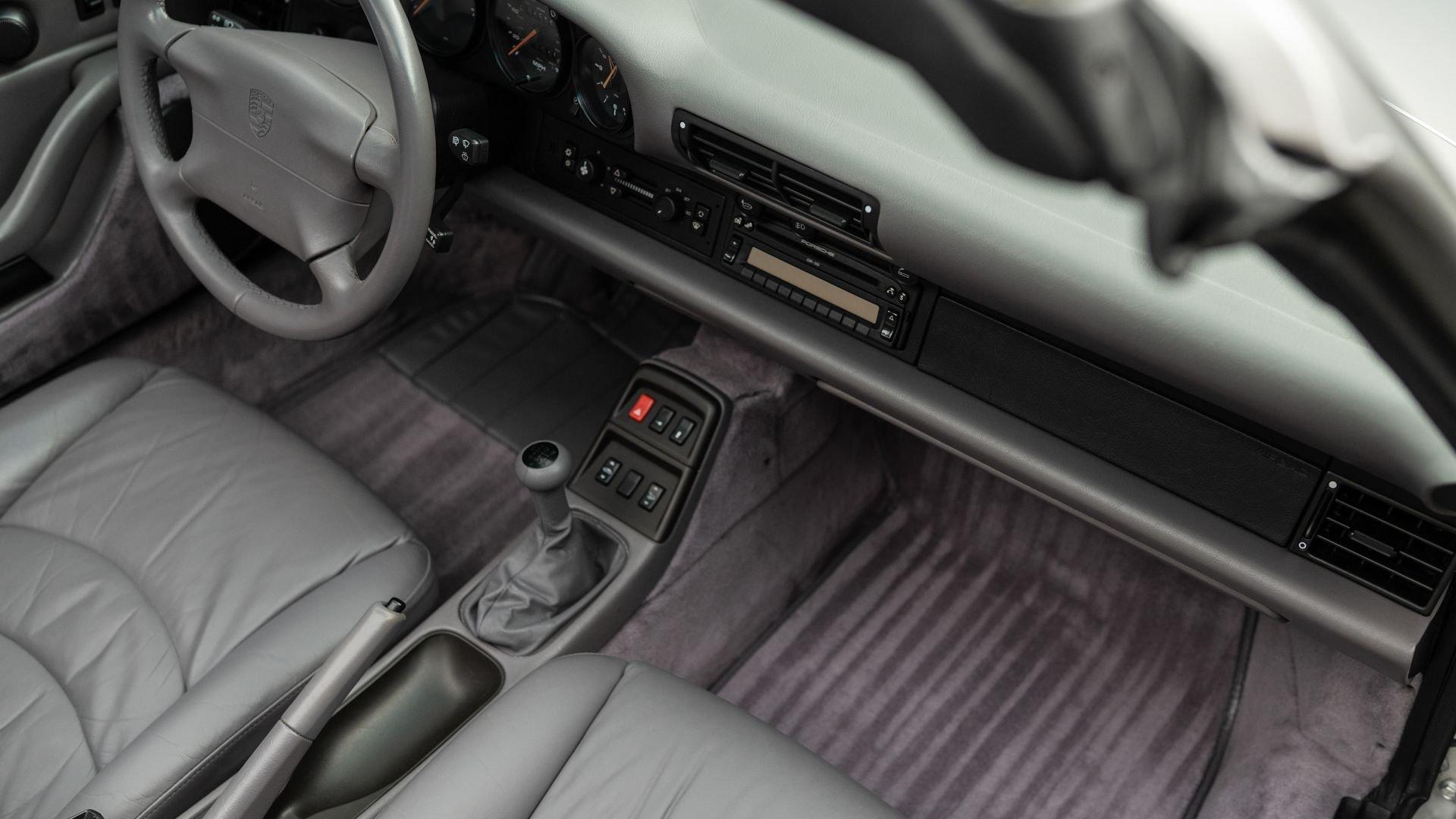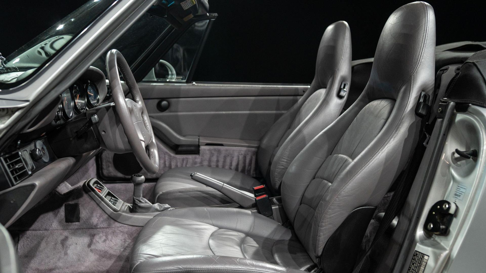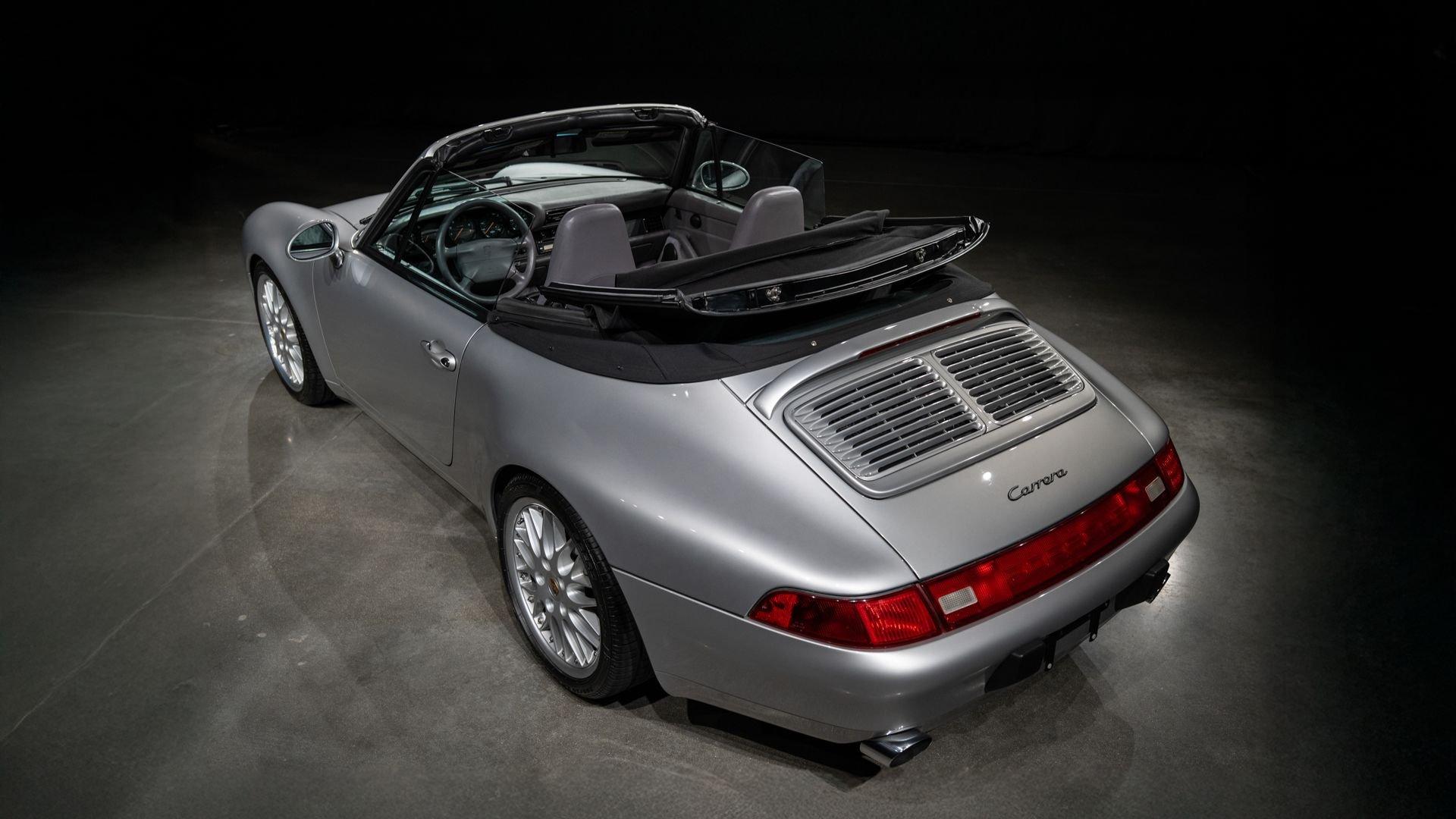 Finished in Stuttgart Zuffenhausen in October 1997, this Carrera 2 Cabriolet was selected in Arctic Silver Metallic over an optional Classic Grey Supple leather interior. Factory-fitted options include a limited slip differential, Power Seat Package, Motor Sound Package, and HI-FI Sound Package with Speakers. The original window sticker additionally lists two selections from the Exclusive Department that include Classic Grey Floor Mats and Stainless Steel Door Sills with Carrera script. The “row-your-own'' six-speed manual remains the enthusiast's choice, offering a heightened level of engagement and a more rewarding driving experience-one that lingers even after the characteristic cooling pings, so cherished by air-cooled aficionados, gently subside.