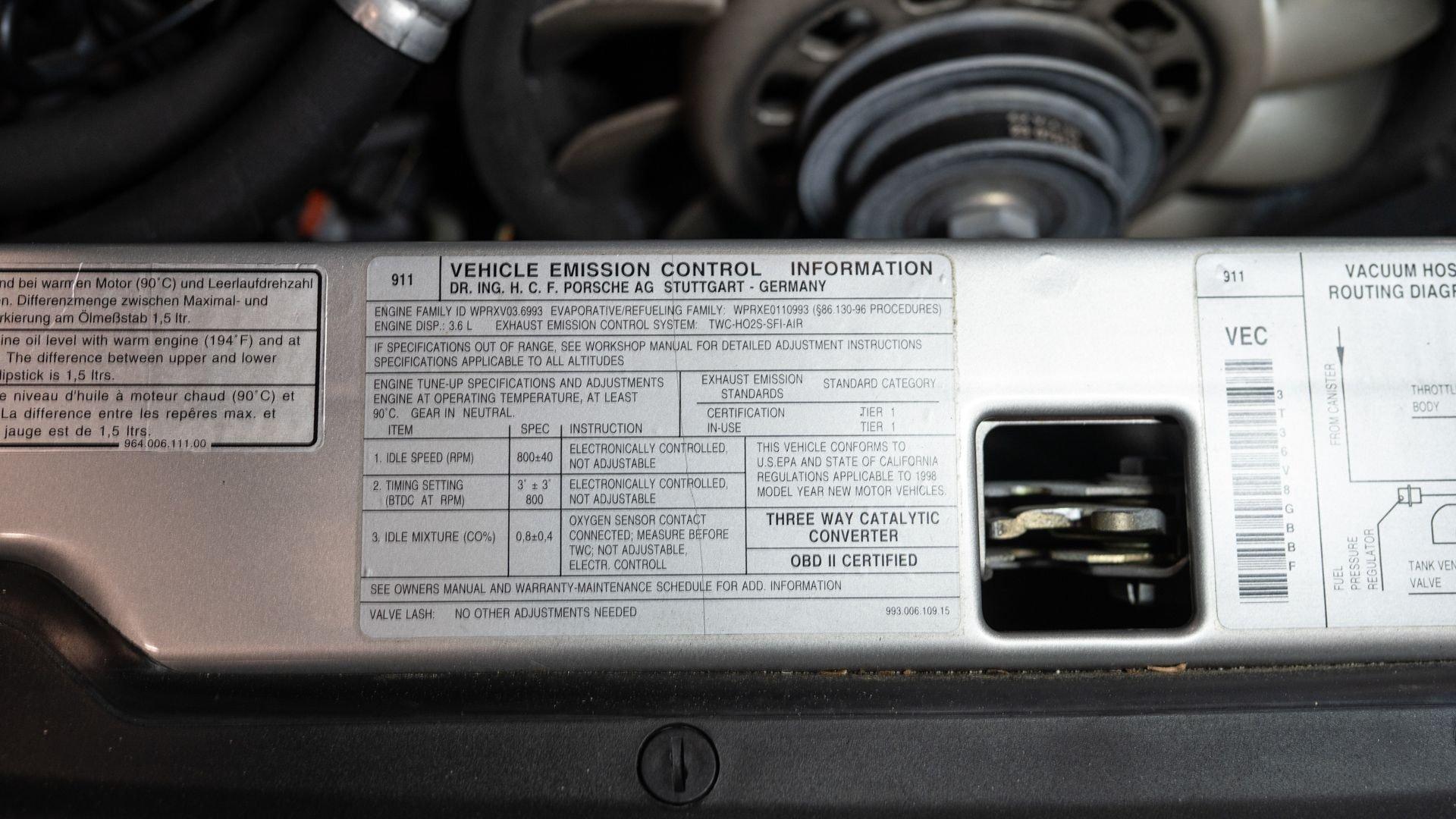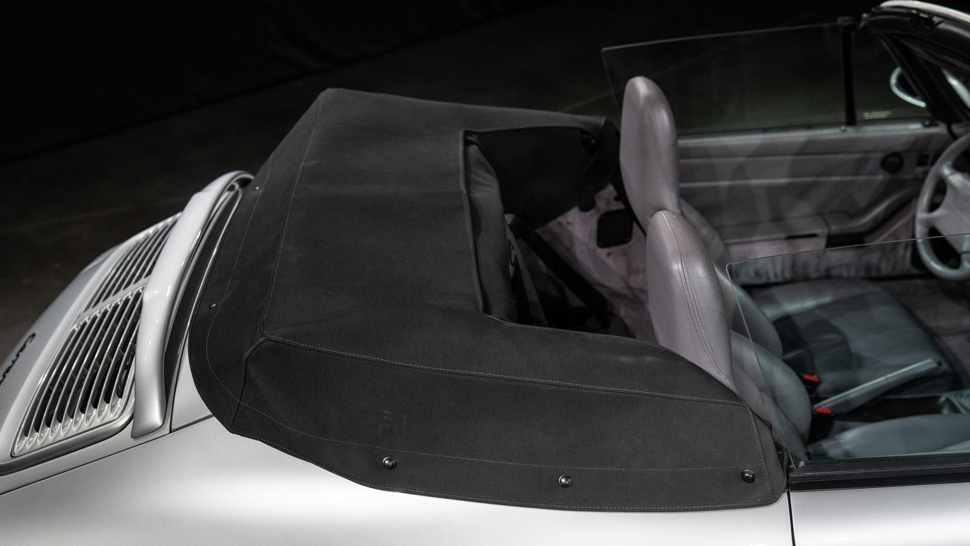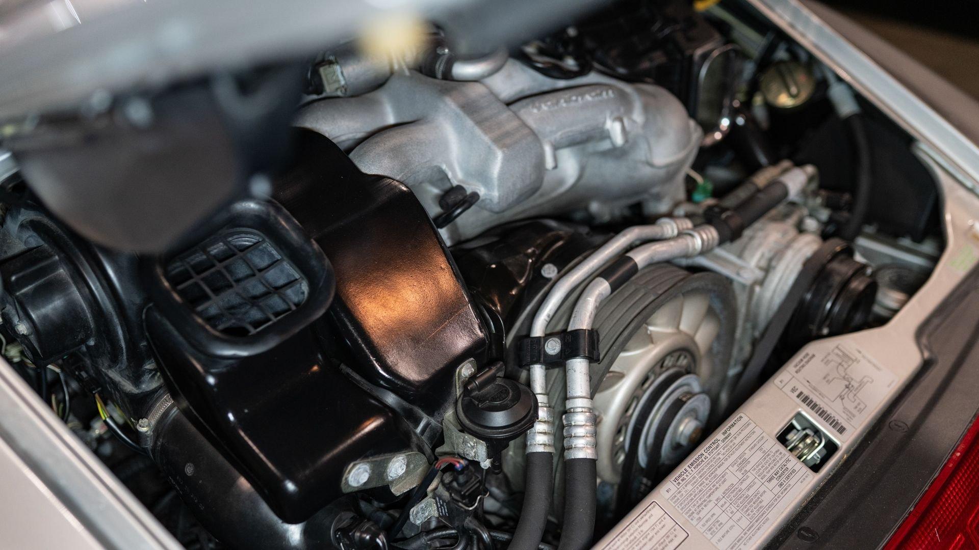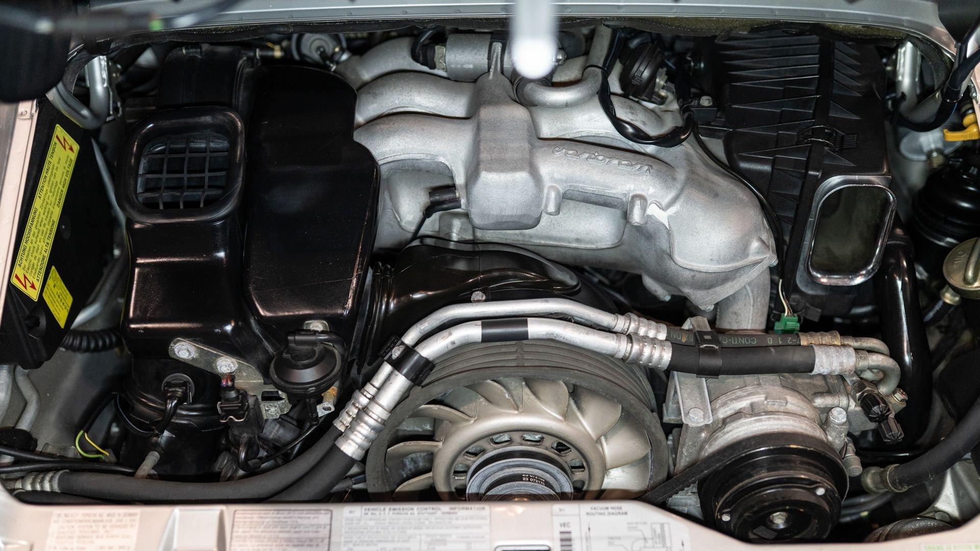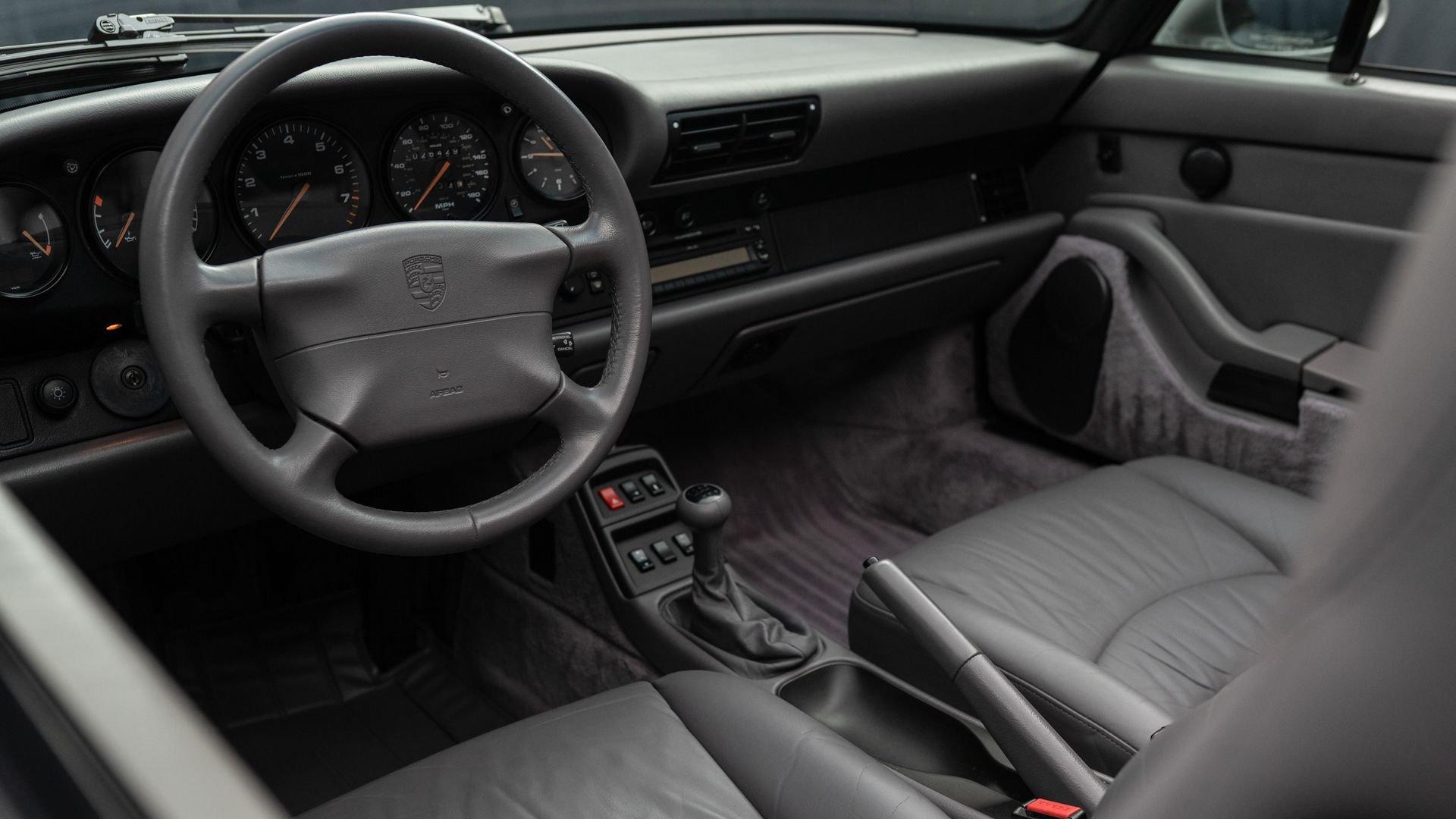 Finished in Stuttgart Zuffenhausen in October 1997, this Carrera 2 Cabriolet was selected in Arctic Silver Metallic over an optional Classic Grey Supple leather interior. Factory-fitted options include a limited slip differential, Power Seat Package, Motor Sound Package, and HI-FI Sound Package with Speakers. The original window sticker additionally lists two selections from the Exclusive Department that include Classic Grey Floor Mats and Stainless Steel Door Sills with Carrera script. The “row-your-own'' six-speed manual remains the enthusiast's choice, offering a heightened level of engagement and a more rewarding driving experience-one that lingers even after the characteristic cooling pings, so cherished by air-cooled aficionados, gently subside.