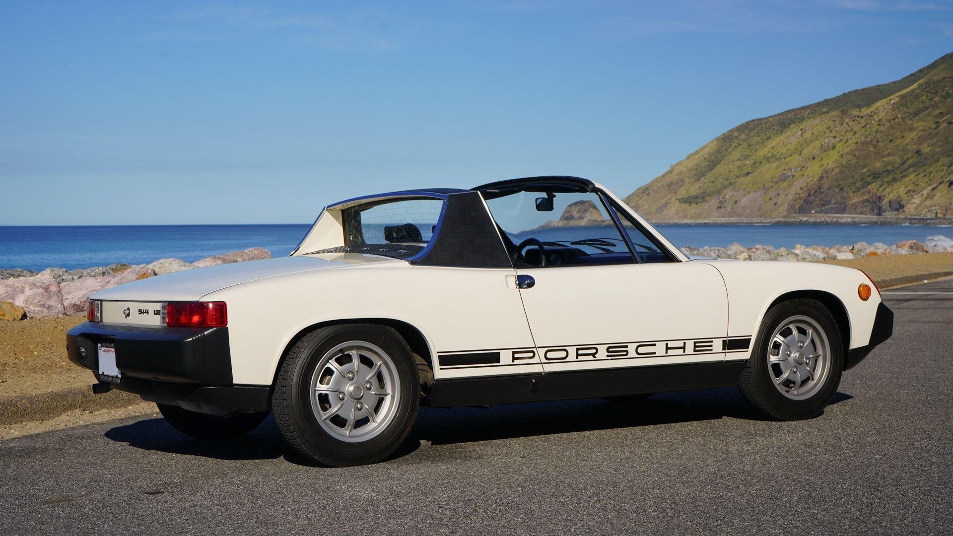 One doesn't have to be a purist to appreciate originality, but it certainly doesn't hurt! Broad Arrow Auctions is proud to present this 1975 Porsche 914, hailing from the penultimate year of production. Selected in Light Ivory over Black leatherette, its original window sticker reveals it was ordered with a heated rear window and, for $300, the optional Appearance Group. This bundle of desirable options included a leatherette covered steering wheel and shifter boot, front fog lights, a dual-tone horn, a center storage box, and a center console with a VDO clock, oil temperature gauge, and voltage meter.