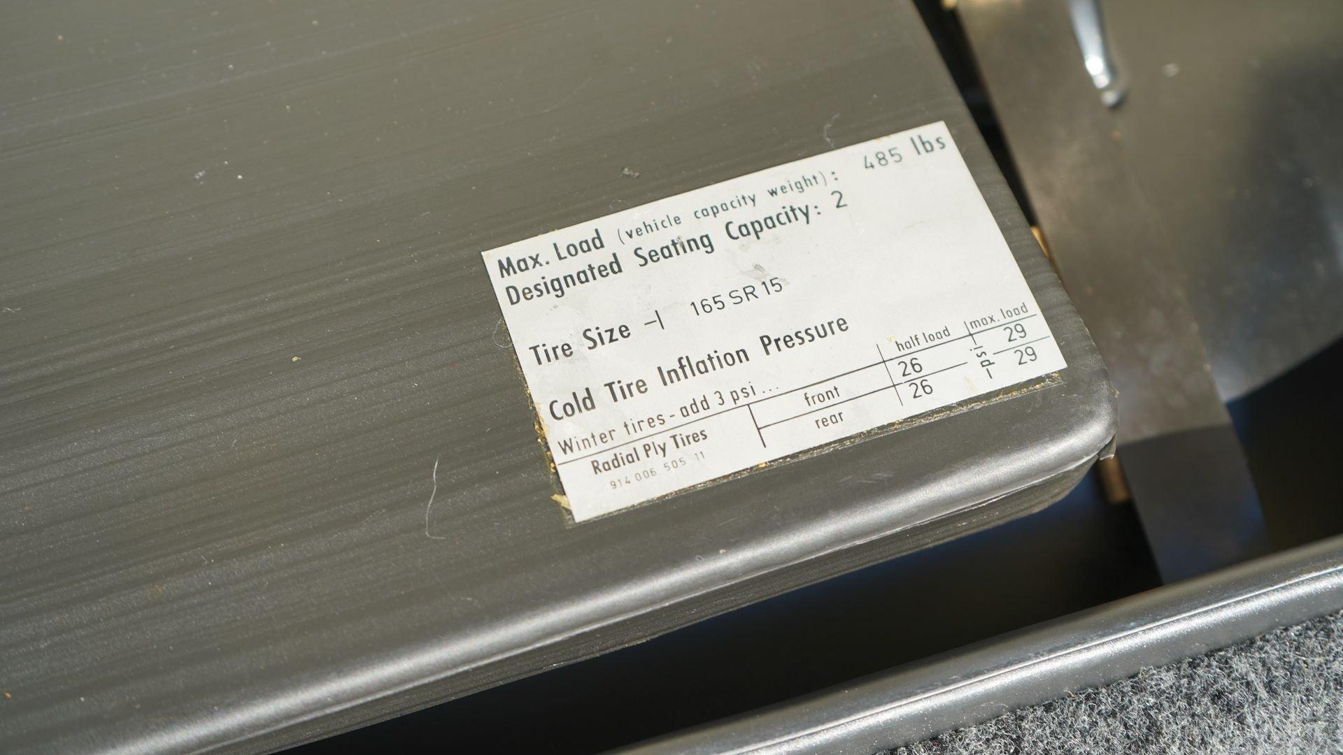 Over the next 35 years, until his passing in 2025, the Antons kept the 914 in exceptionally original condition, enjoying it at Porsche Club of America events-winning a 1st Place PCA Preservation Award in 2021-on weekends when they weren't competing in or judging Golden Retriever Club of America shows. Original build information sourced from Dave Pateman confirms the 914 retains its original numbers-matching engine and that the transmission number was not recorded in the factory's files. Furthermore, paint meter readings conducted at the time of consignment reveal original Light Ivory paint across the car, a clear sign of the 914's uncommon originality.