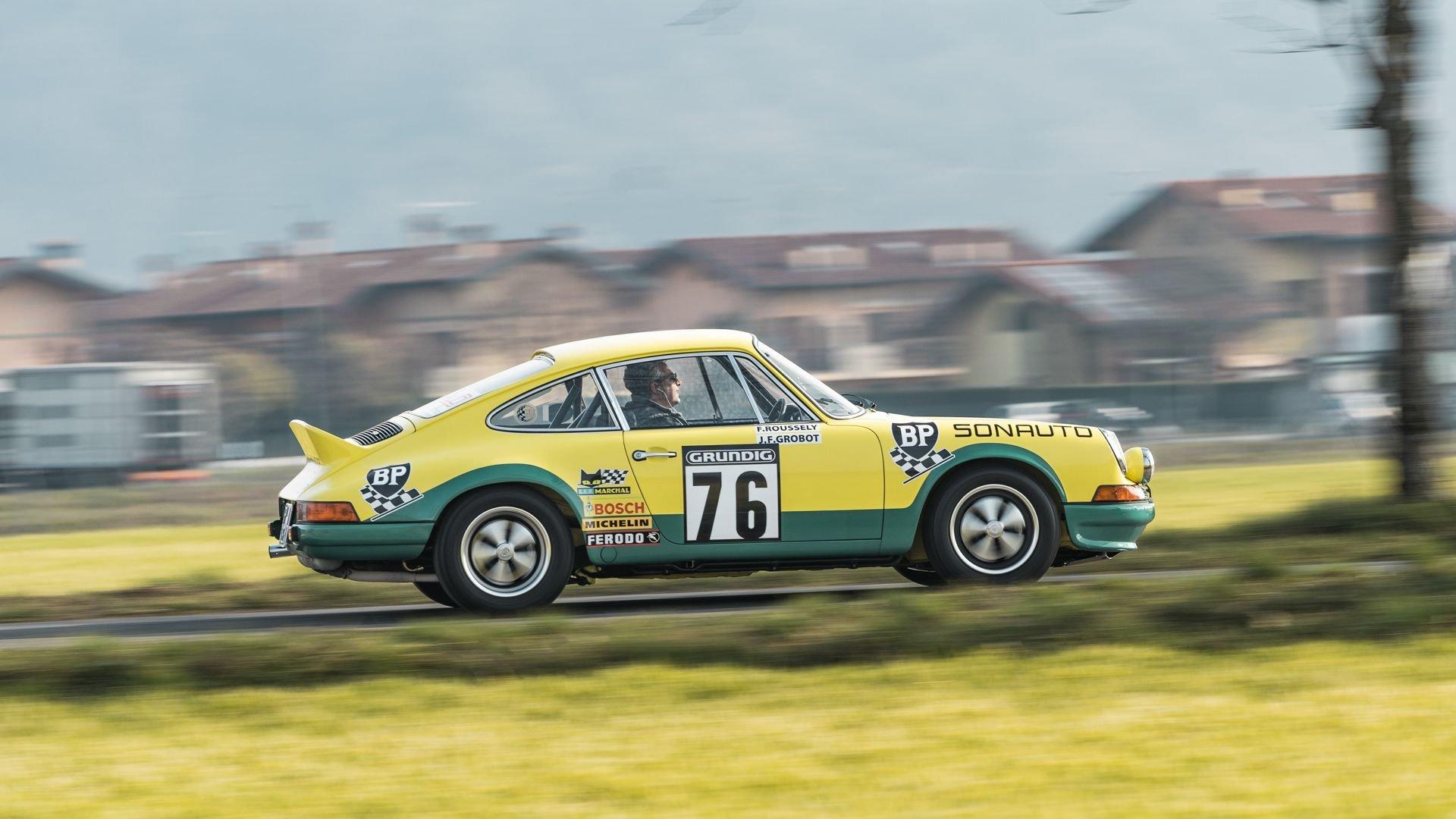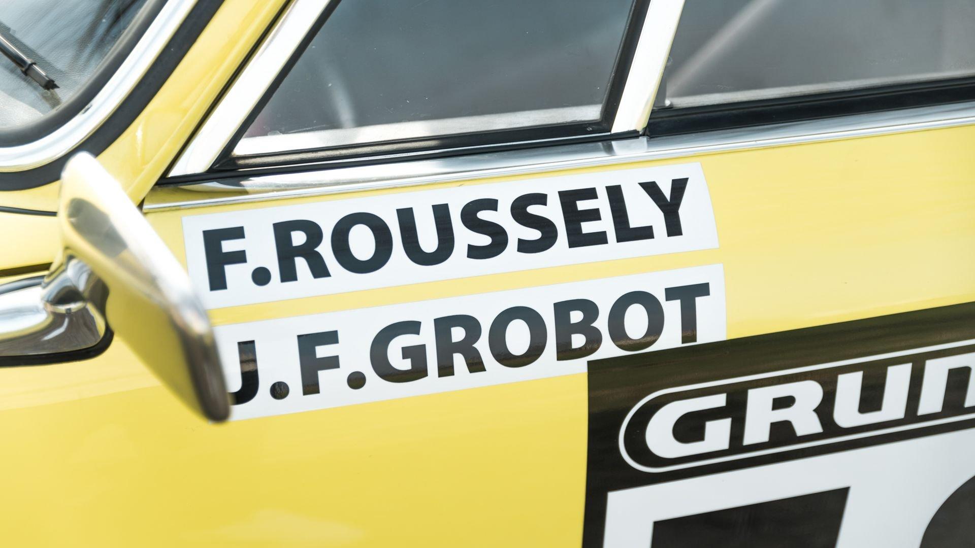 Numerous inspection reports accompanying the car document the Carrera 2.7's history. It is believed that the RS remained with Sonauto until September 1973 with Jürgen Barth recording that it was piloted by Jean-François Grobot at the Hill-climb Belleau and later raced to victory by Francis Roussely at the Rallye du Touquet in June 1973. Roussely was the newly crowned Gr.3 French Rally Champion and, perhaps smitten with the Porsche's performance, acquired the car and registered it on “6200 RA 54” number plates that September. He quickly entered it in the 18th Tour de France Automobile that month resplendent in Sonauto and BP's yellow and green, and given start number 76. Images contained within the history file show Roussely and his now co-driver J-F Grobot on the limit with one wheel off the ground, yet no matter the pace shown by the RS and the French duo within, they would ultimately be disqualified on the fourth day for missing a checkpoint. Roussely piloted the car at additional rallies to start the 1974 season with success, winning the Ronde Fédérale de l'Aisne overall and taking a class win at the Ronde de Touraine.