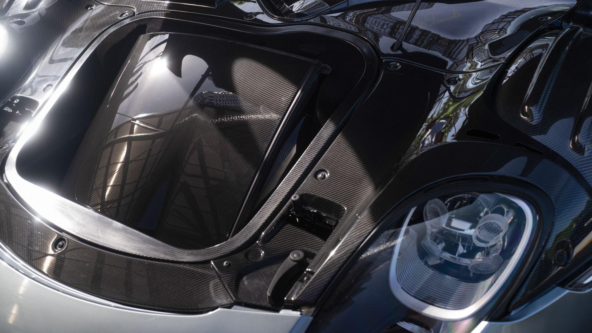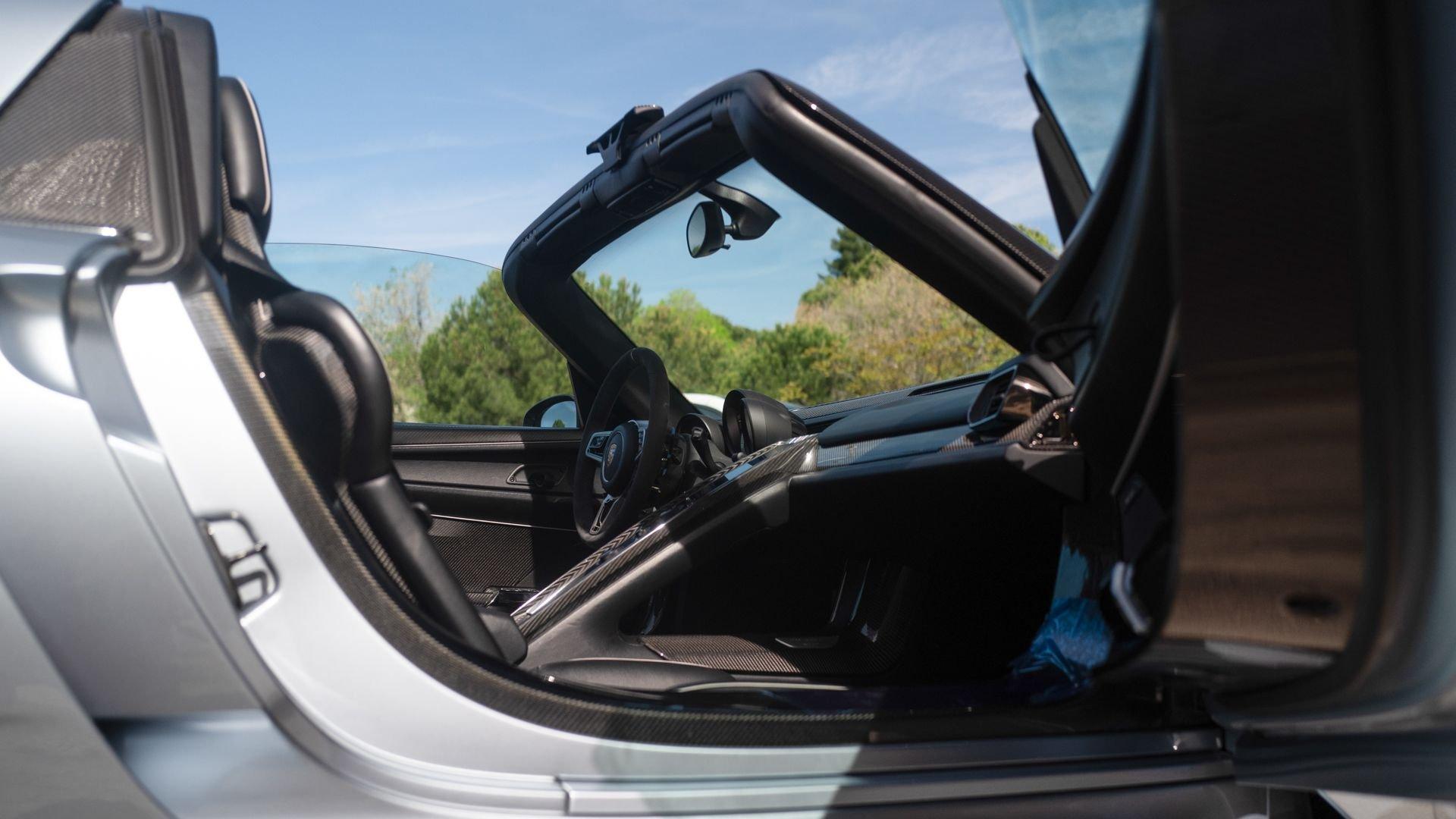 Equally significant is this Weissach Package 918 Spyder's finish in the rare shade of Liquid Metal Chrome Blue, one of only two paint finishes more costly than those found in Porsche's Paint to Sample program, applied in an intensive nine-layer process directly onto the carbon-fiber reinforced bodywork. This highly specialized €40.000 Sonderfarbe involves multiple precision stages and clear coats, producing remarkable depth, clarity, and a liquid-like reflective quality that accentuates every contour of the car. Complementing this, the €20.000 optional ''Authentic'' leather interior in Onyx Black with Silver Piping is crafted to preserve the hide's natural grain and character, utilizing thick, sustainably treated leather that enhances both tactility and durability, which in Porsche's words, “will develop a patina, which will make every 918 Spyder unique.”