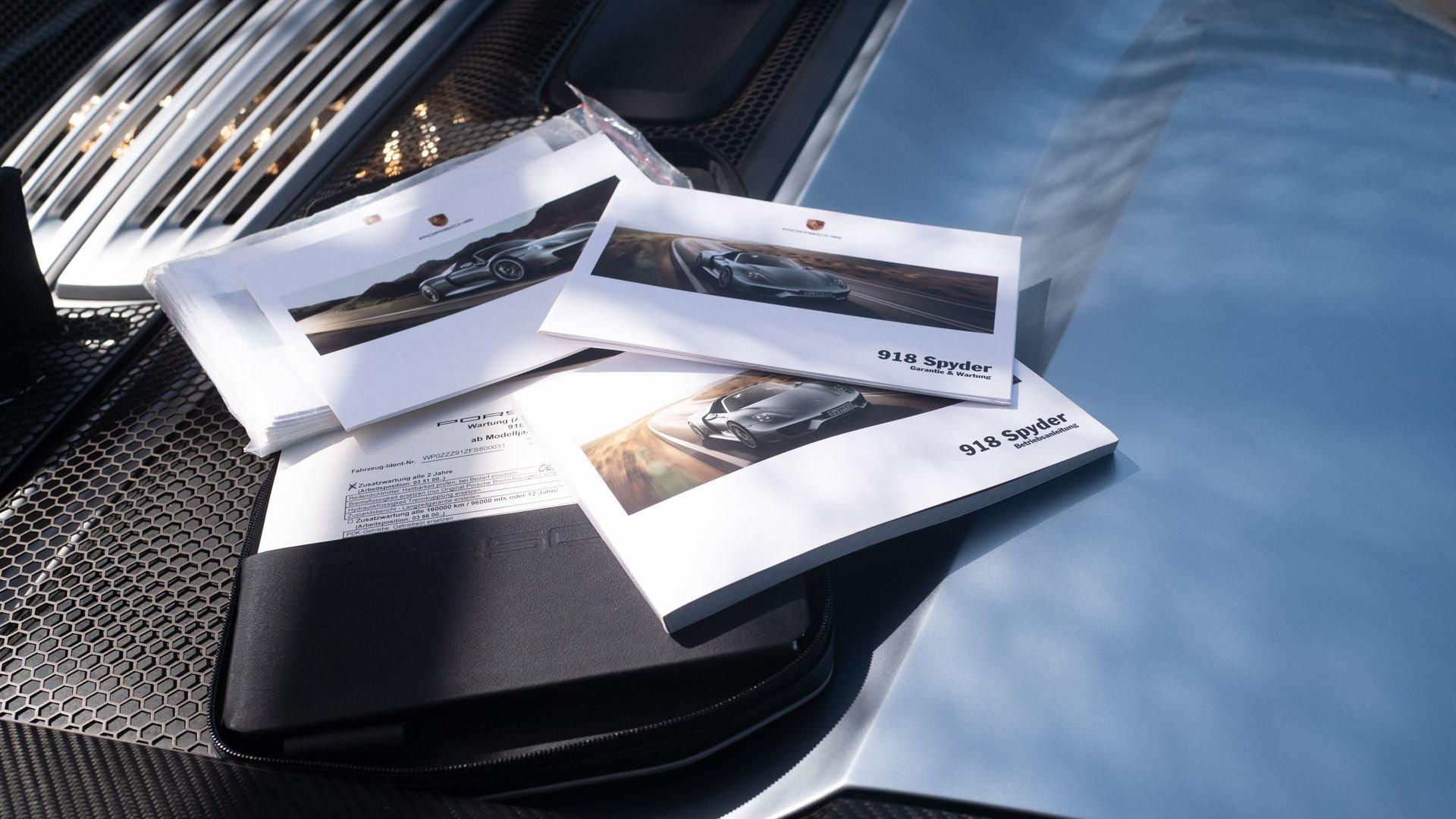 Today this impeccably ordered 918 Spyder features just 8,826 kilometers at the time of cataloging, a figure reflective of the light and considered use afforded to it since delivery at Porsche Zentrum Stuttgart-just across the street from the factory- just over a decade ago. As a single owner example, 918 limitation number 031, retains many of its original delivery items which include its original books and charging equipment along with the associated service book stamps from its devoted original owner. Additionally, the car has seen recent recommended servicing in May 2025 at Centro Porsche Madrid Norte with invoices on file and available for review.